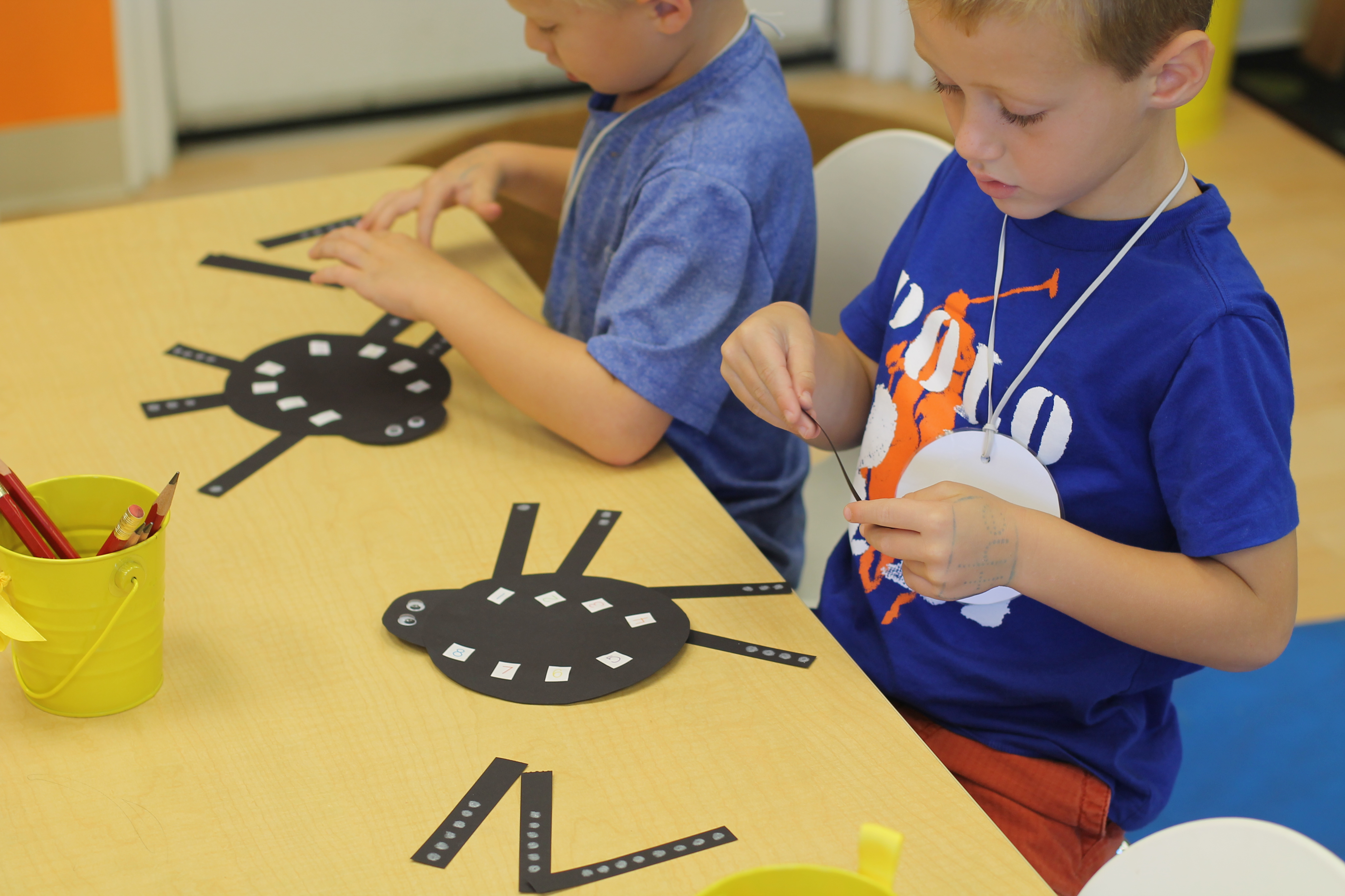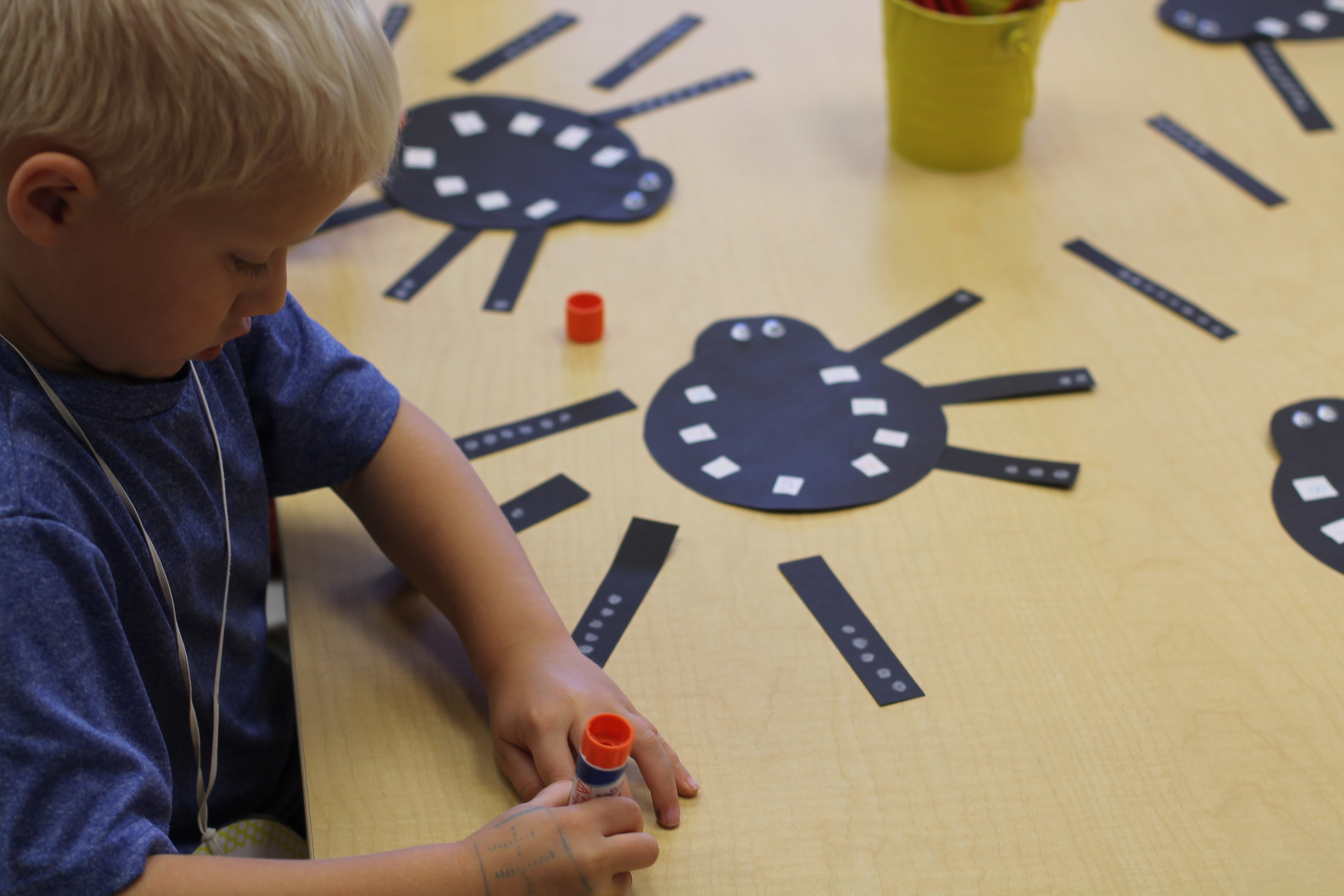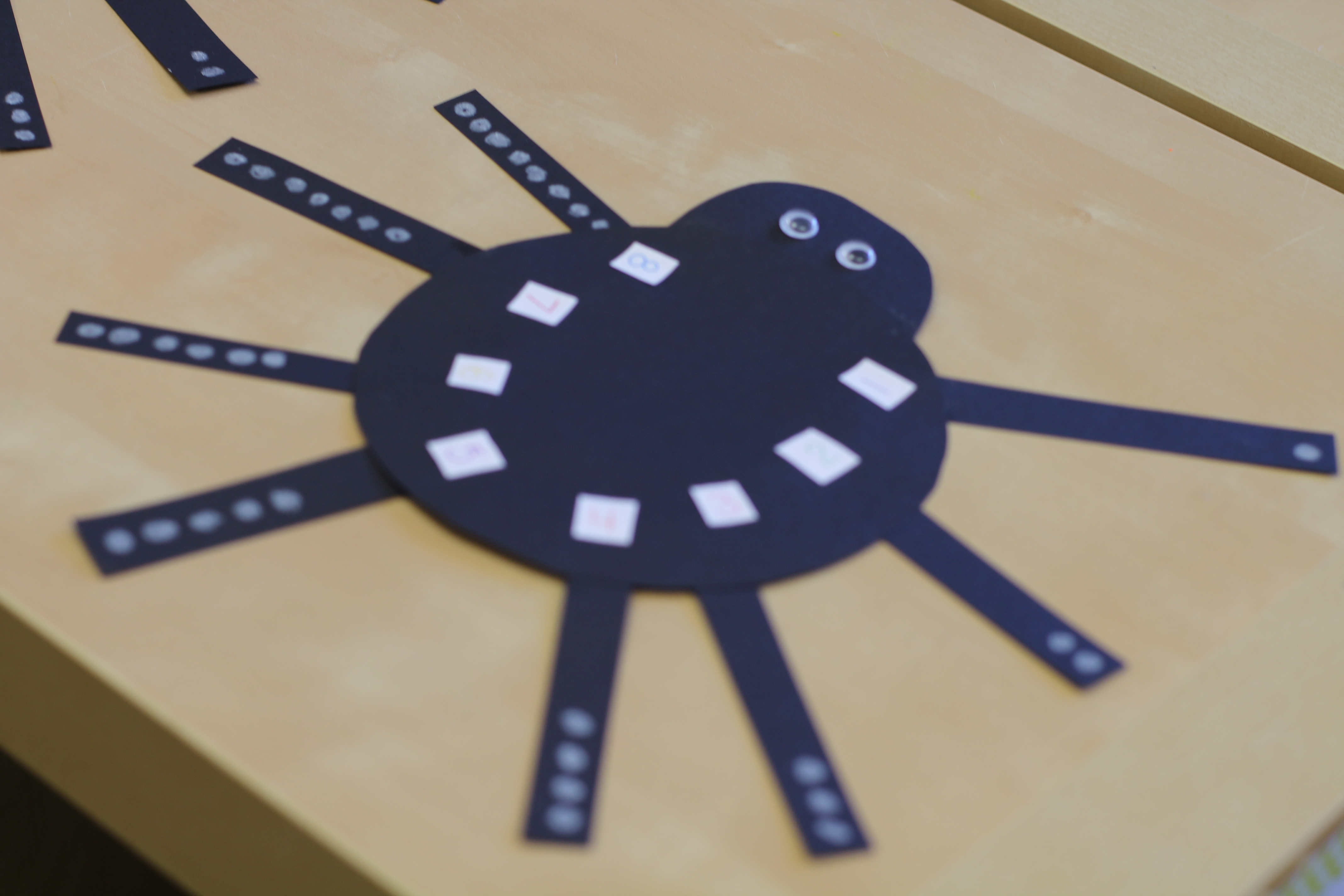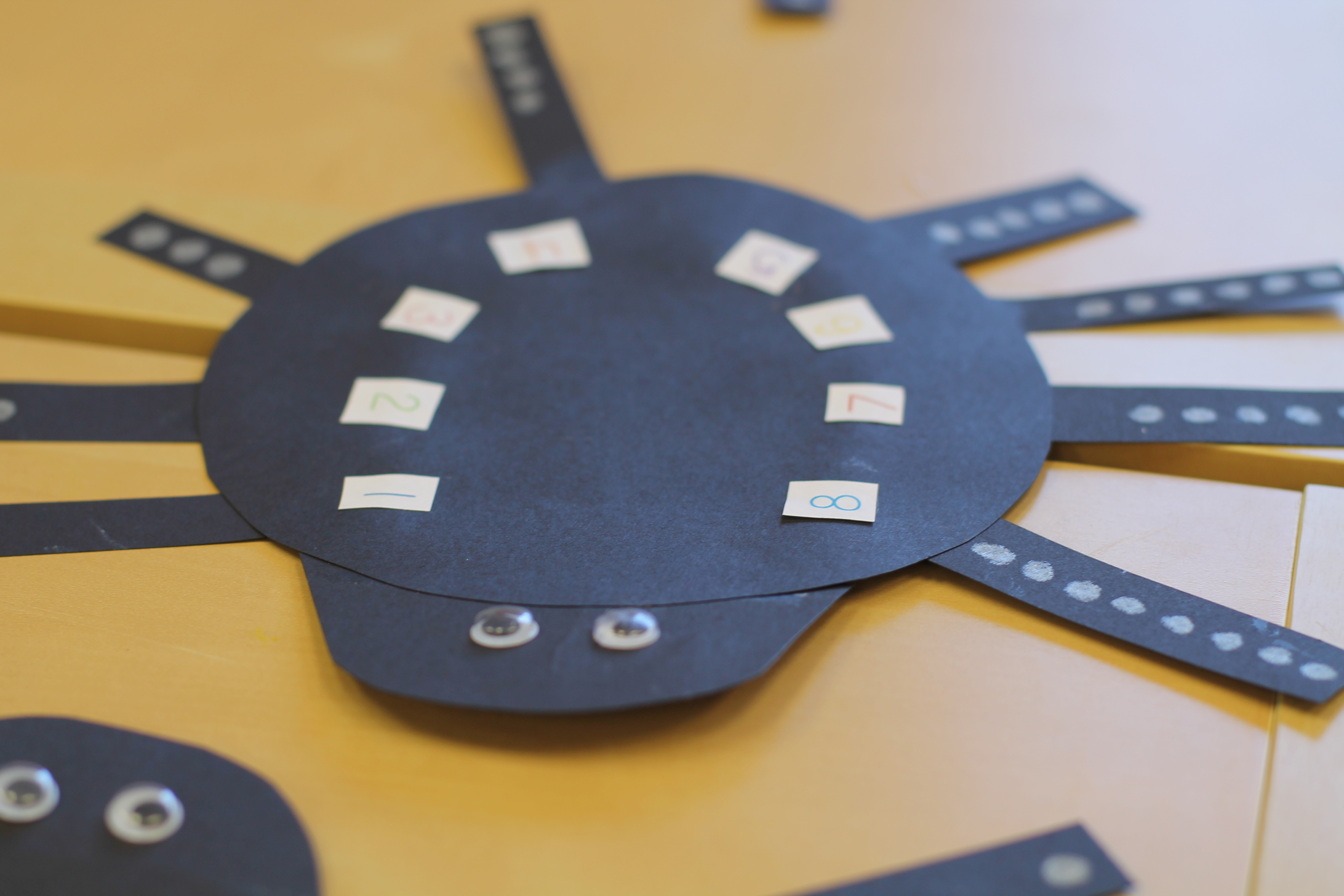 Since it is almost October, we made spiders using our math skills! We matched up the number of dots on its legs to the numbers on its body.