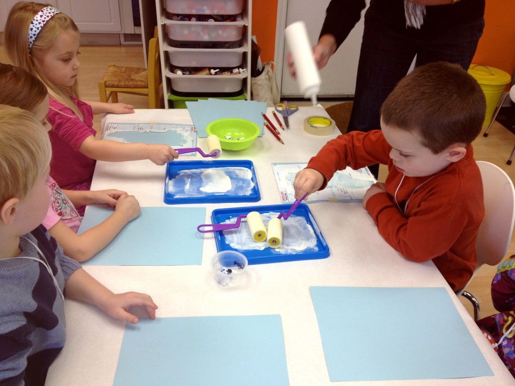 We have been learning all about the animals and habitat of the Arctic Tundra in Greenland this month. The preschoolers have done a great job listening and retaining all kinds of fun facts. They had some time to explore the icy waters where these animals live today. The preschoolers had a blast pretending to walk along the ice and dipping into the water! This type of imaginative play is a perfect way for little ones to remember facts and information they have learned. Ask your preschooler which animals they explored with on the ice today!