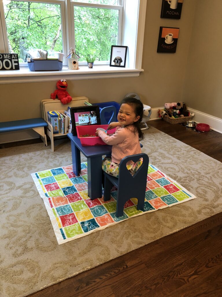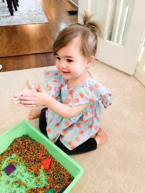 Sensory play supports language and cognitive growth, fine motor skills, and problem solving skills.  It aids in enhancing memory functioning and  is great for calming.  The sensory tub and discovery bins are popular in our room.  This is truly hands-on learning!