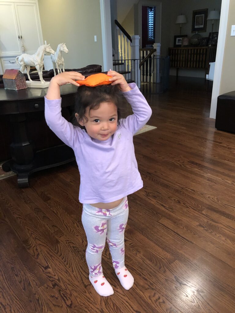 Our live zoom also included some gross motor bean bag fun!