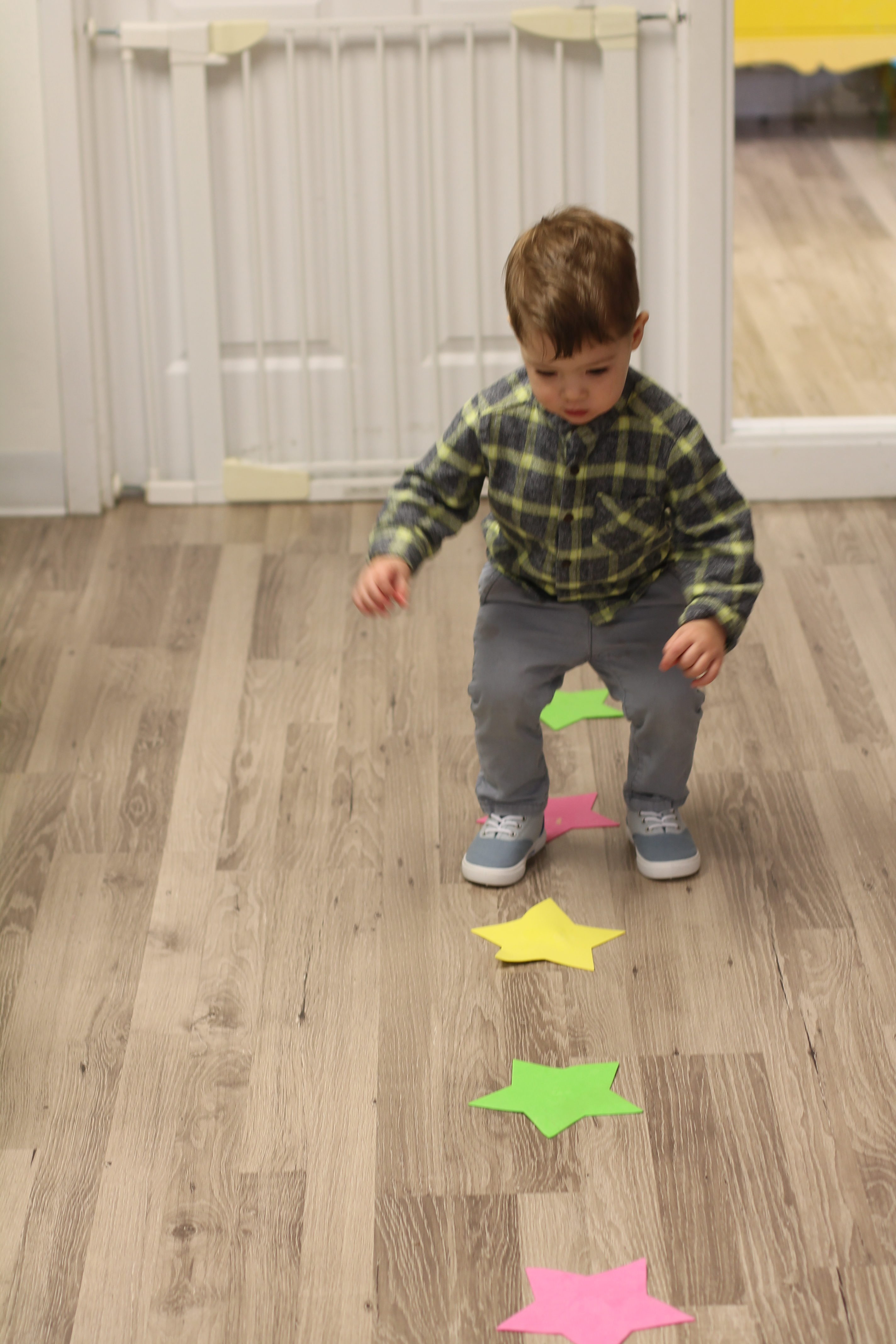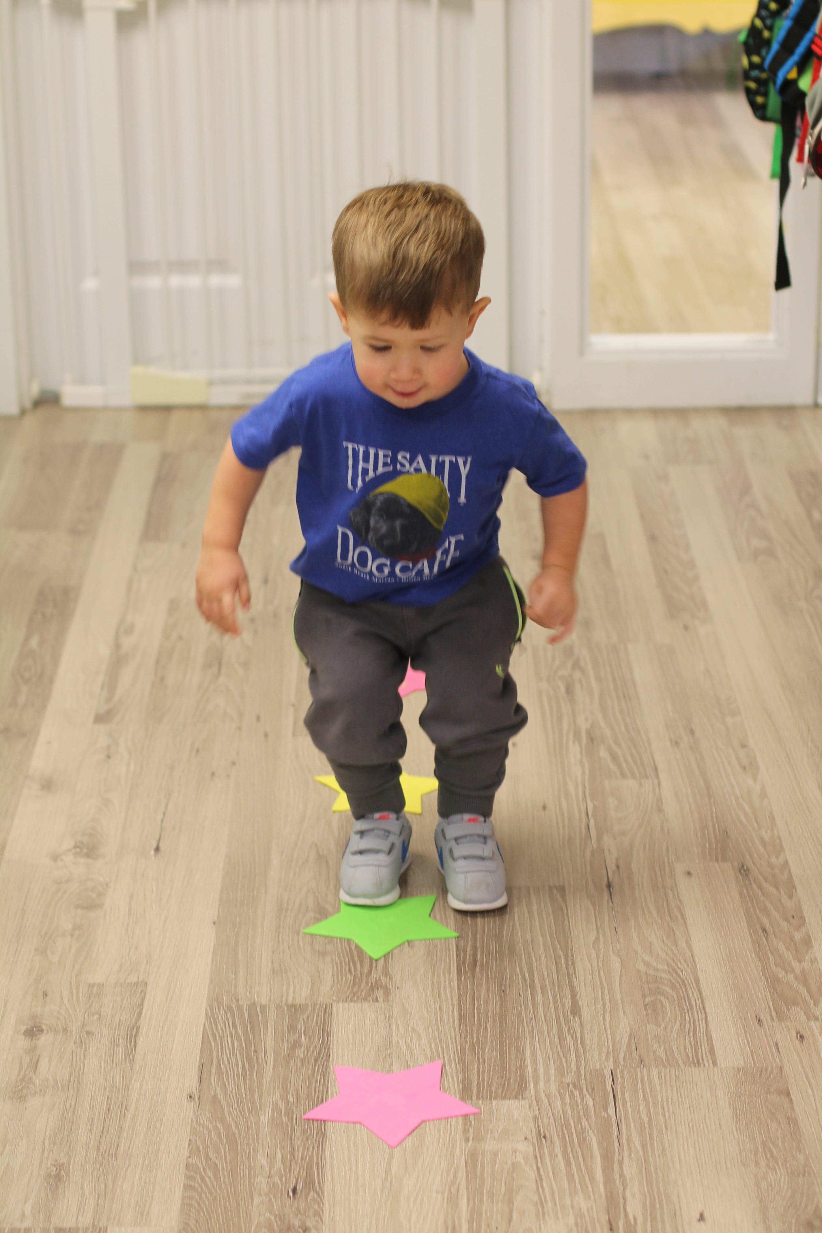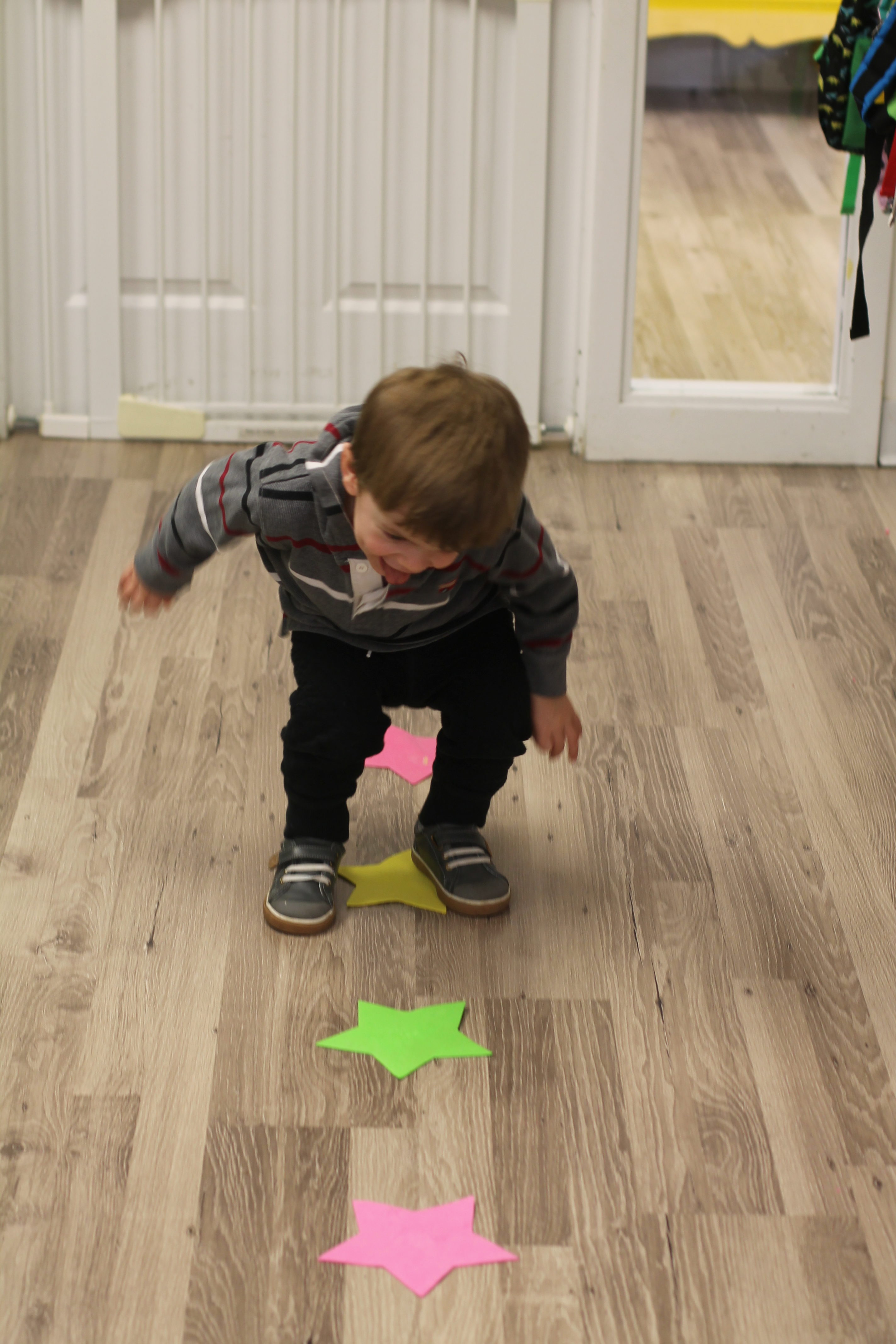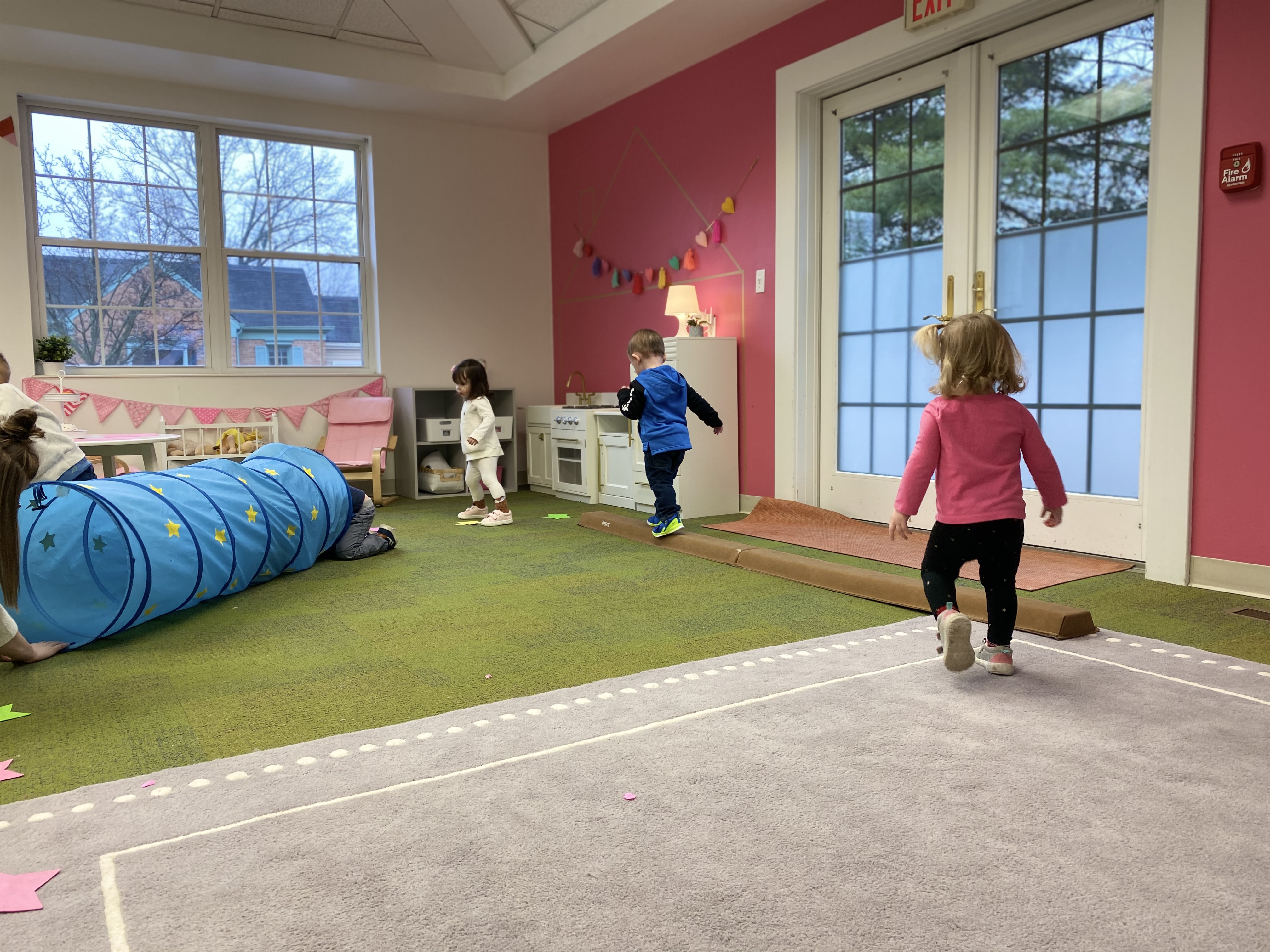 Gross Motor Fun inside!  An indoor snowball fight and balancing on a rectangular beam.