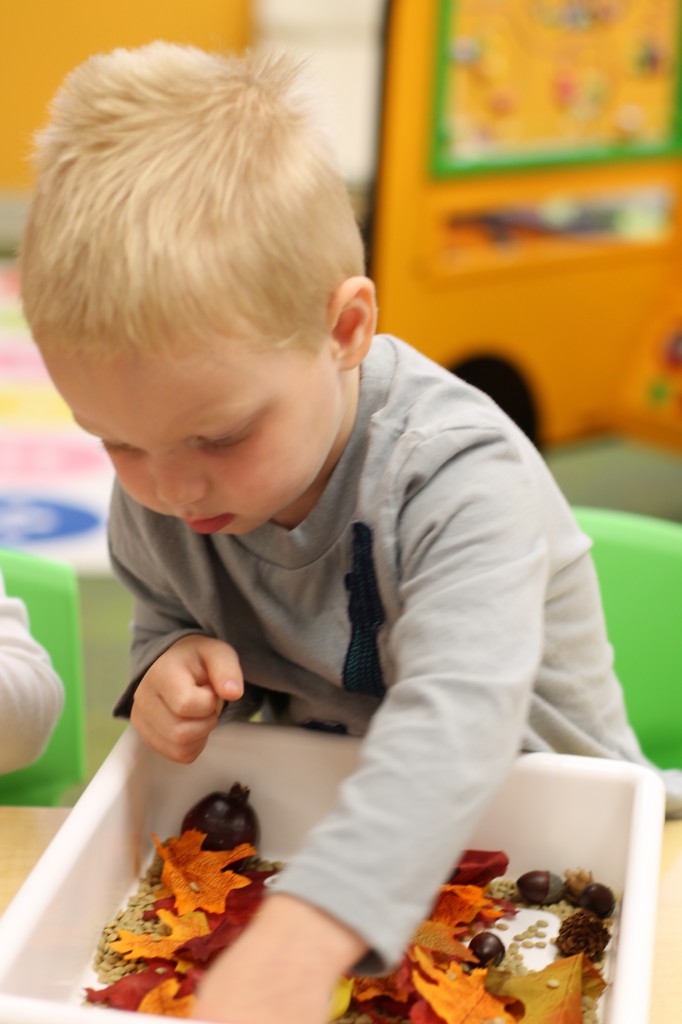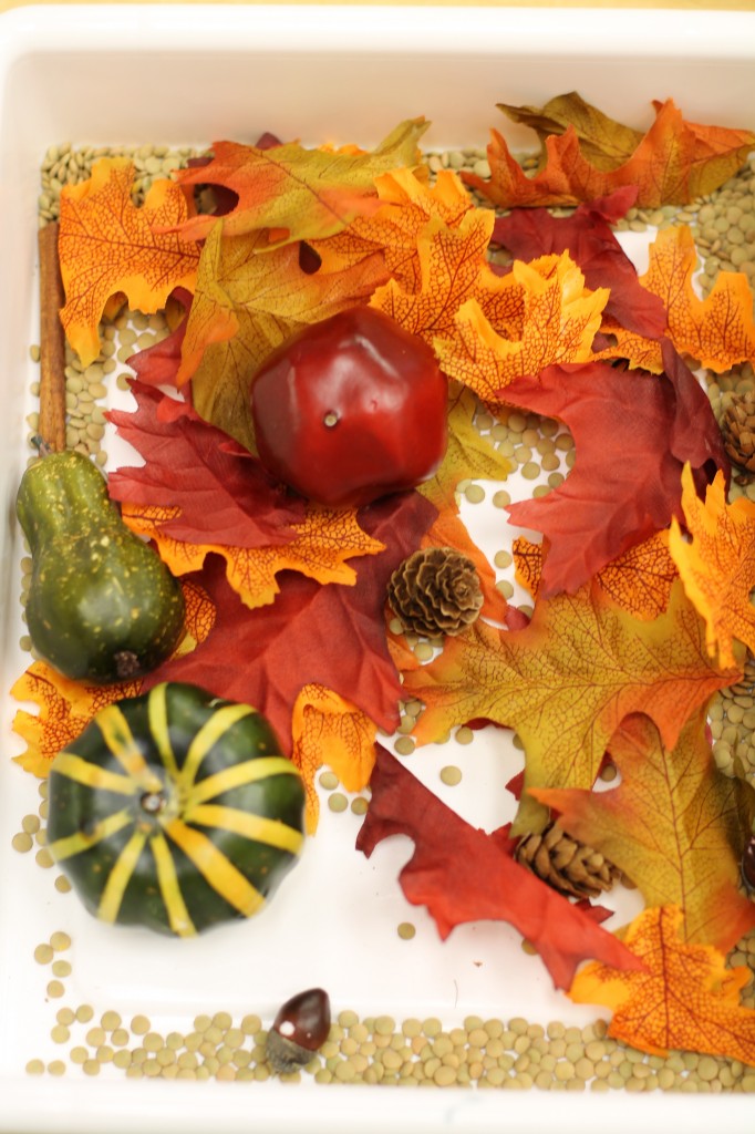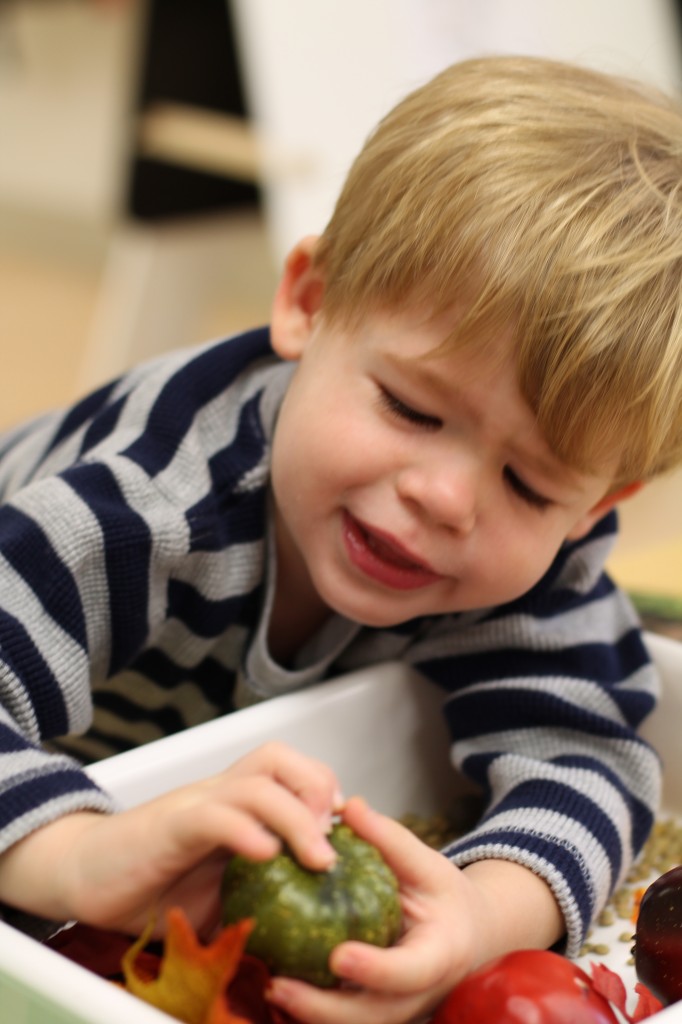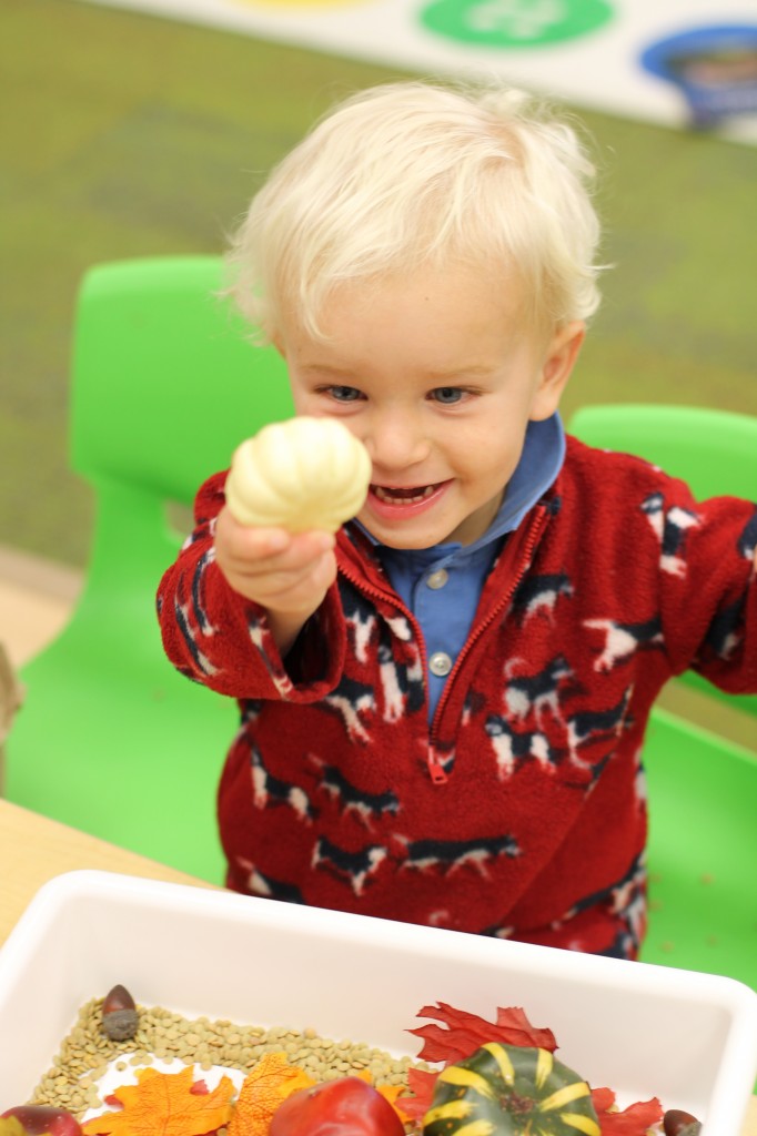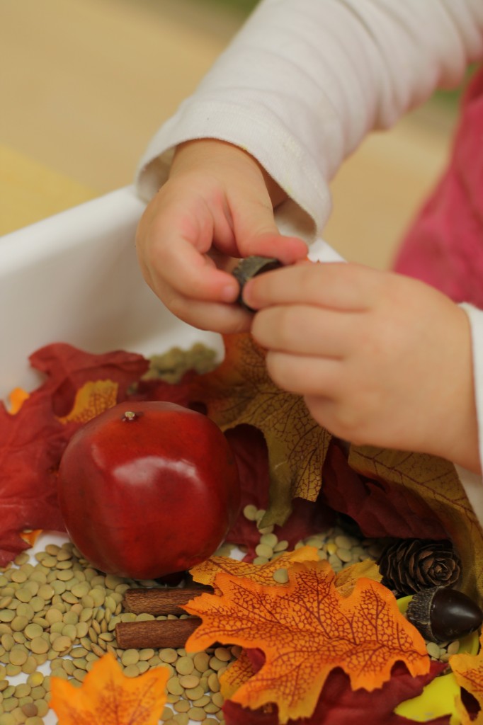 For the month of October, we’re talking about the season change (leaves changing colors, pumpkin patches, temperature changes and much more). In this weeks discovery tub, the toddlers found leaves, pinecones, acorns, apples, cinnamon sticks, pumpkins and gourds. Take a look to see how much fun we had finding these items together.