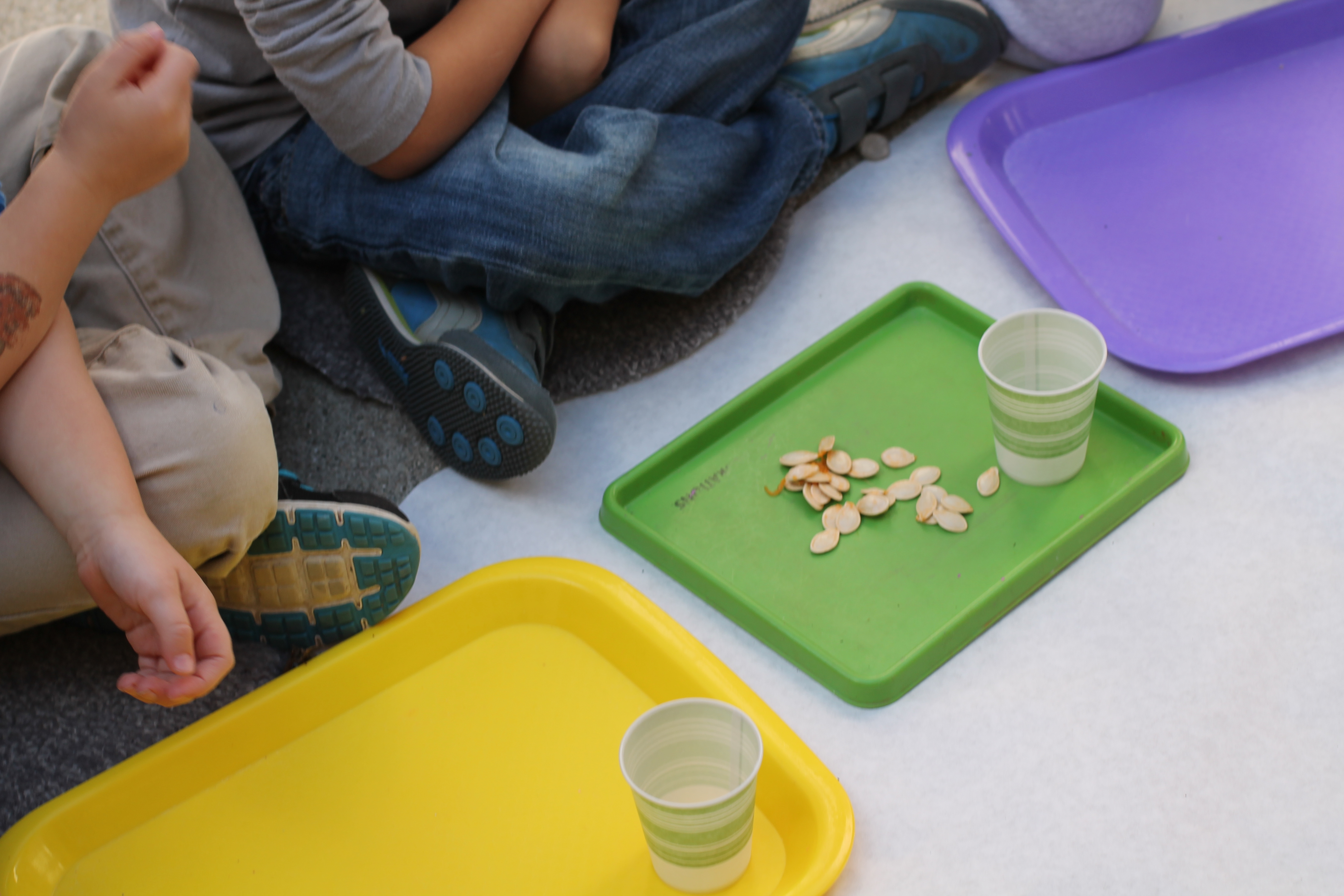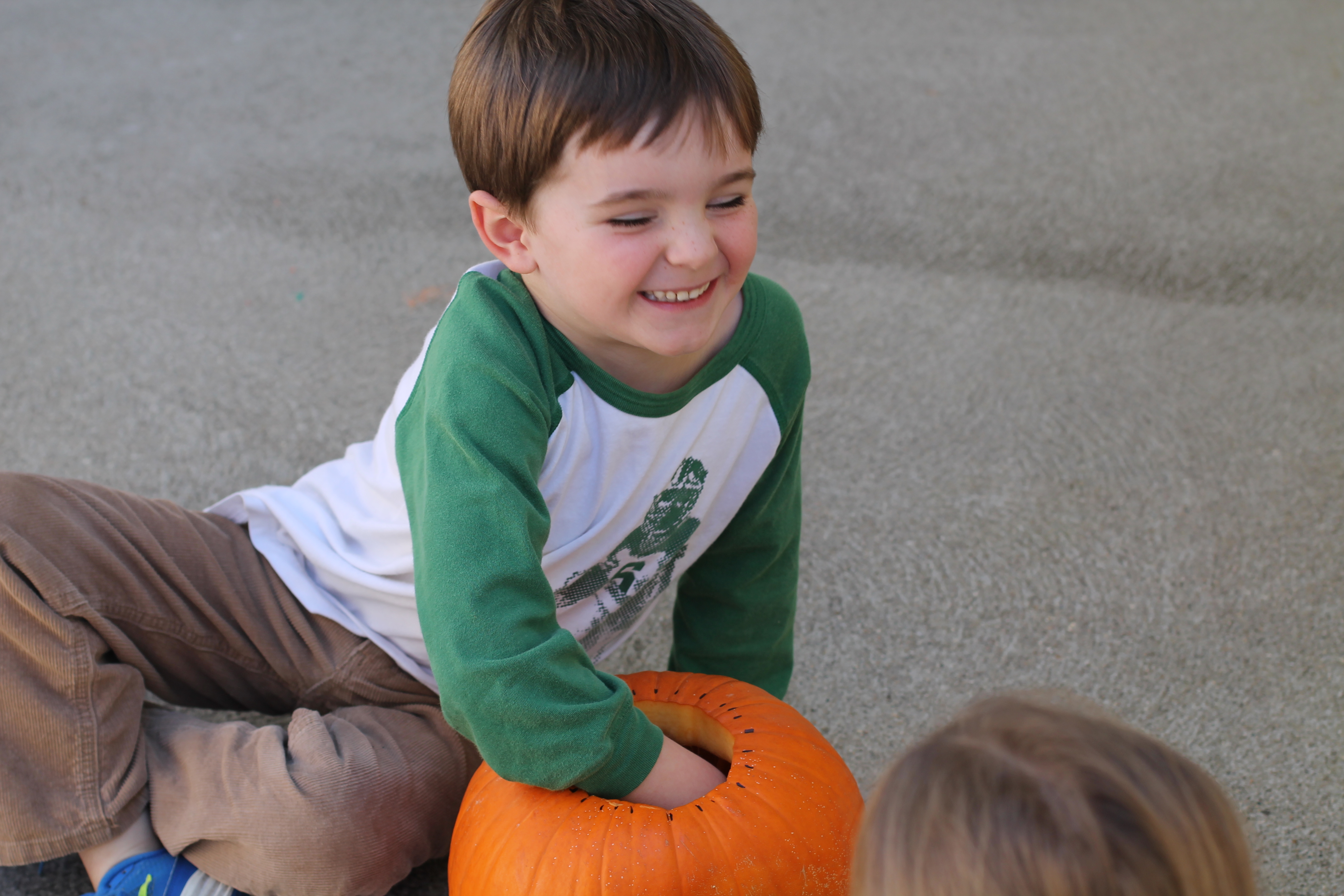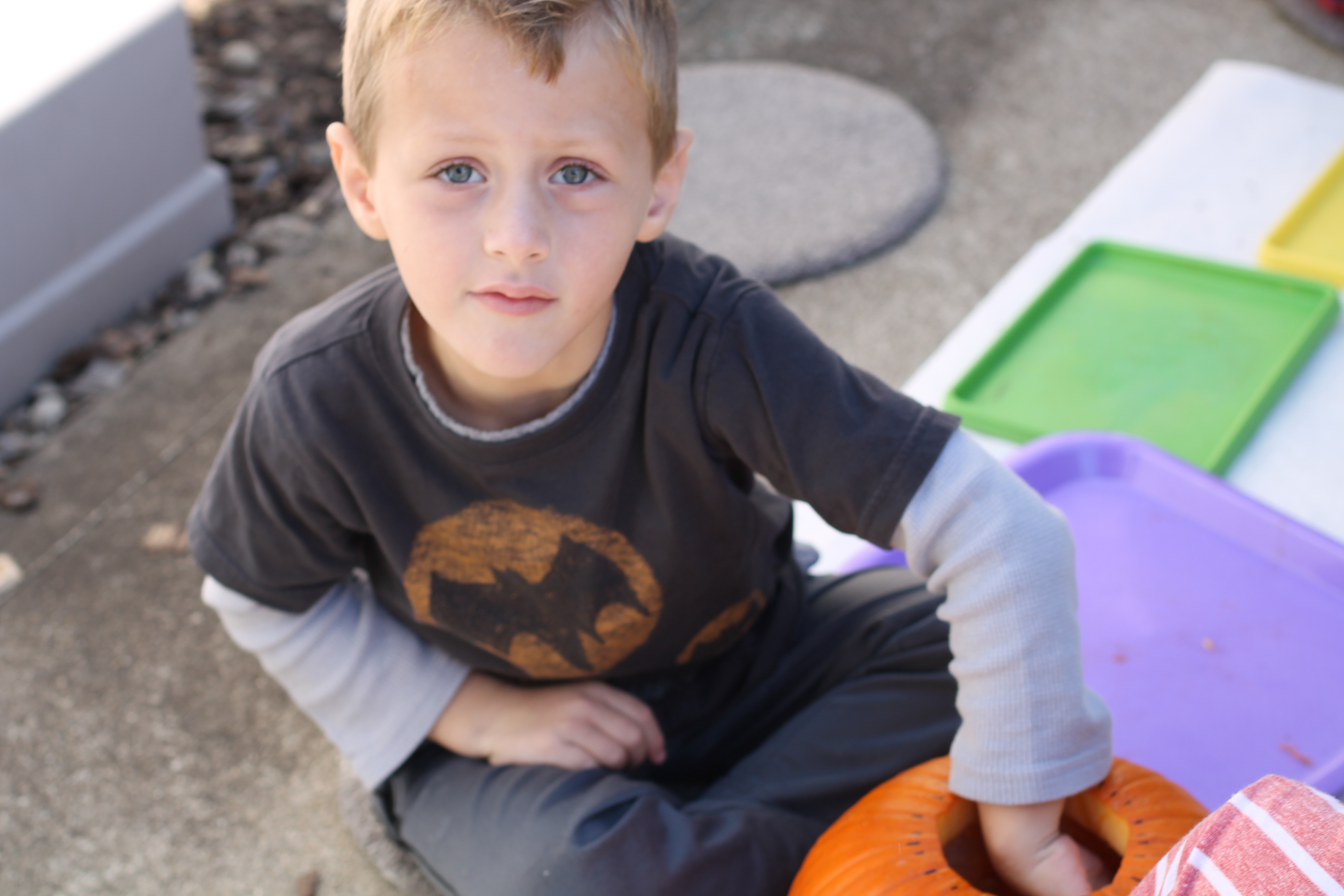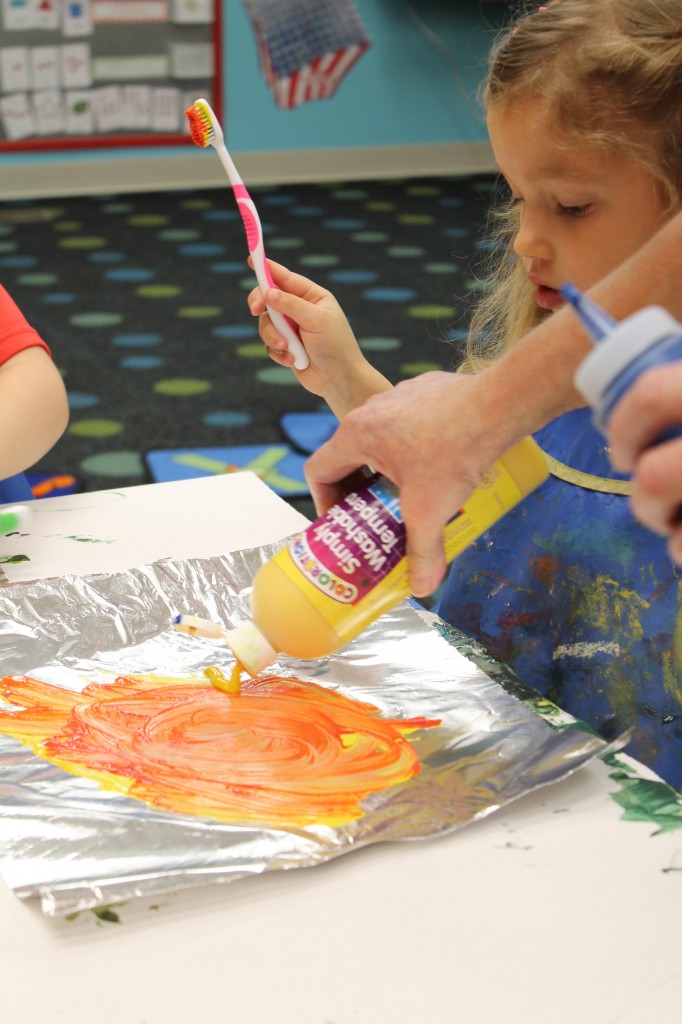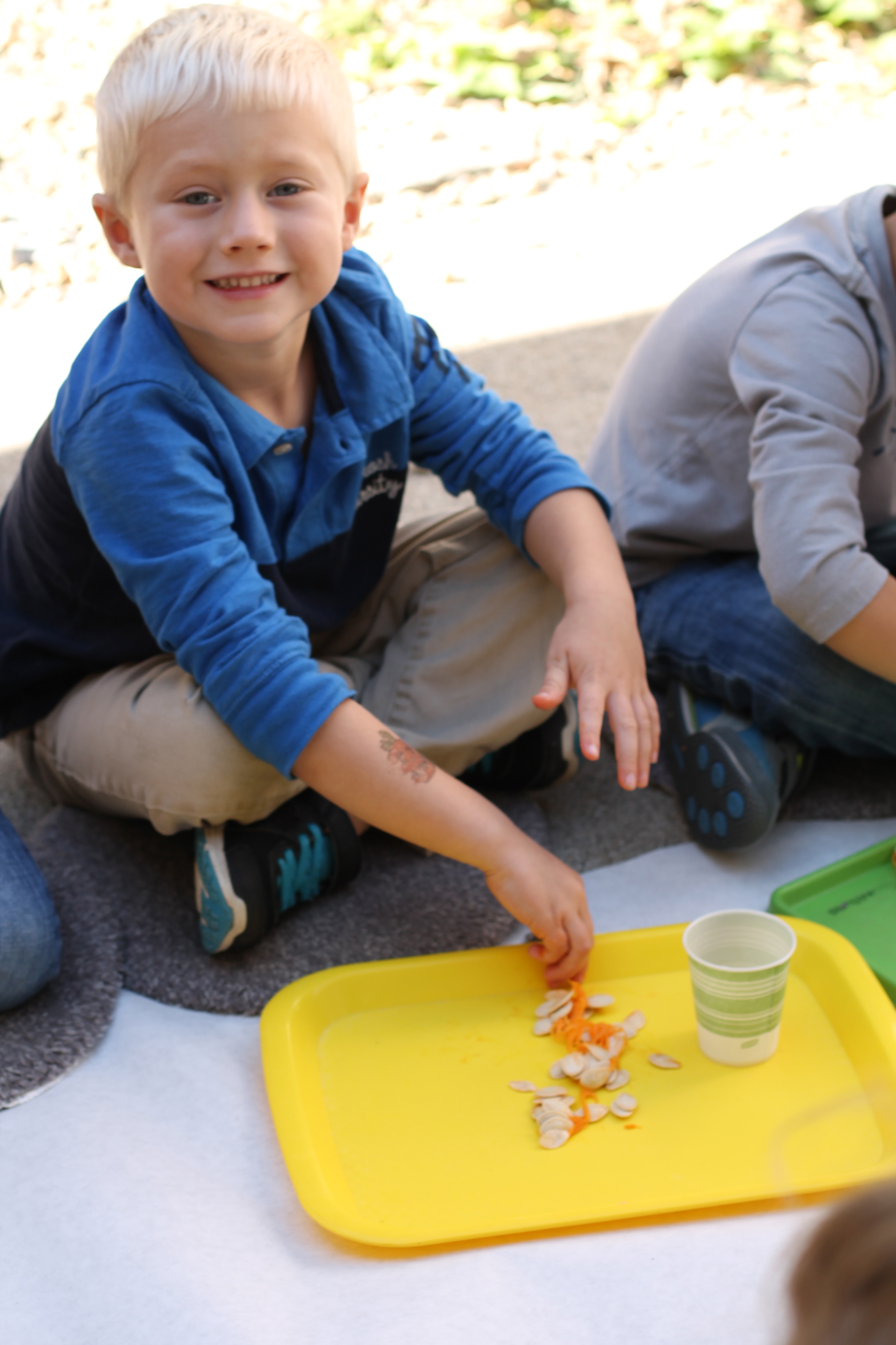 The afternoon preschool class explored a pumpkin this week! We measured it and talked about its characteristics (inside and out) using our 5 senses! The students took turns getting their hands dirty and pulling out some of the pumpkin seeds. We ended up roasting those seeds and eating them for snack!