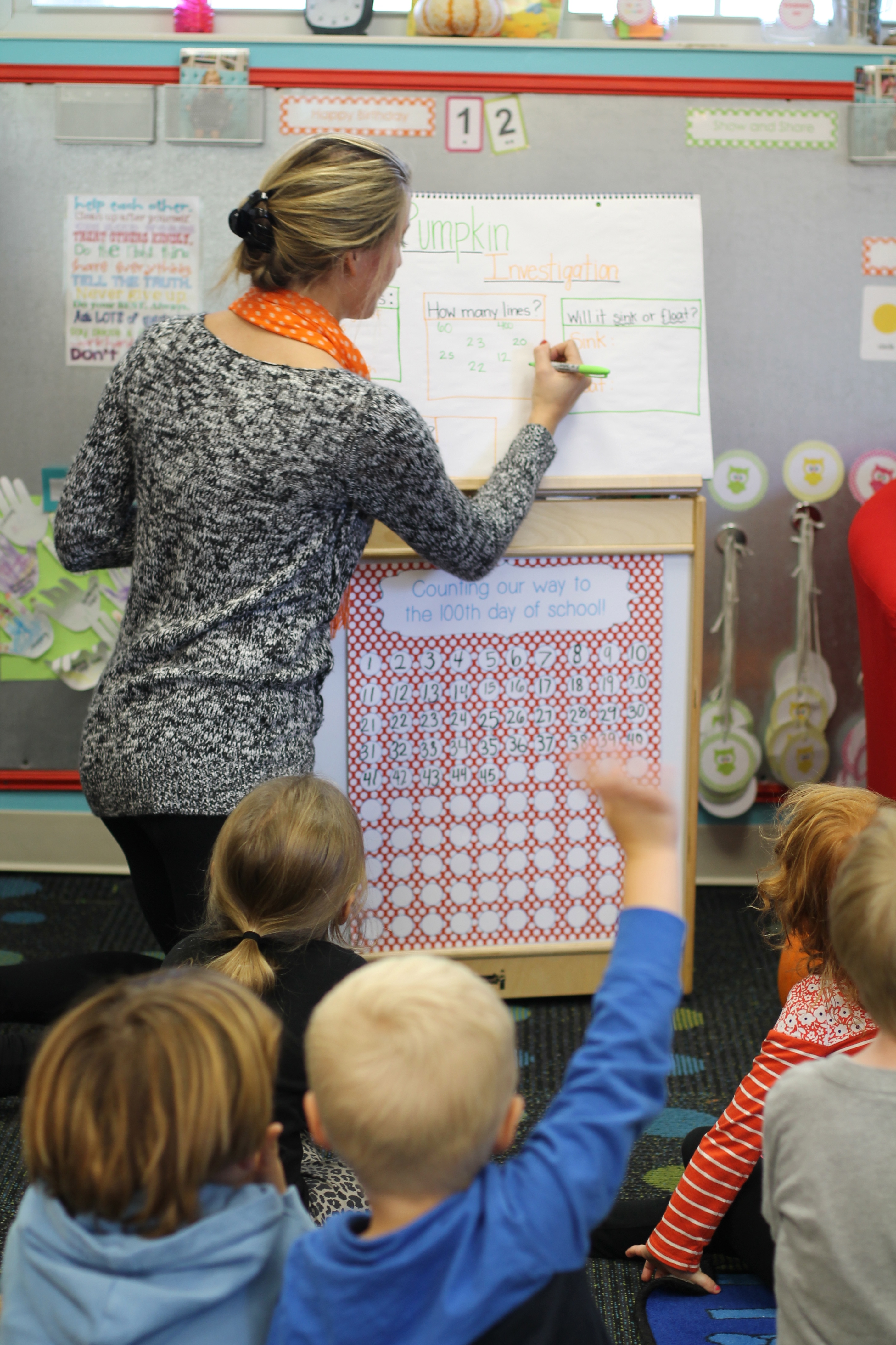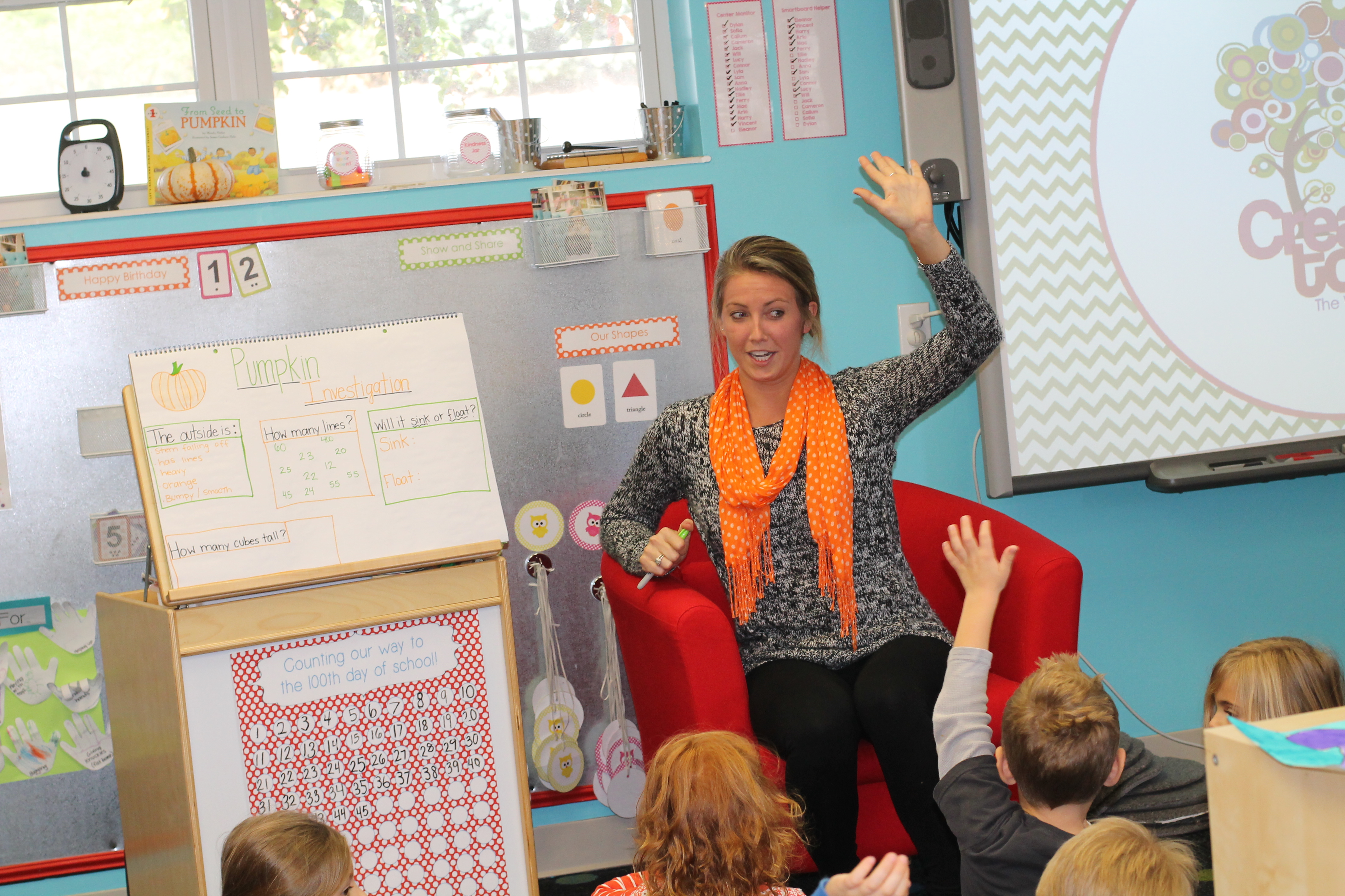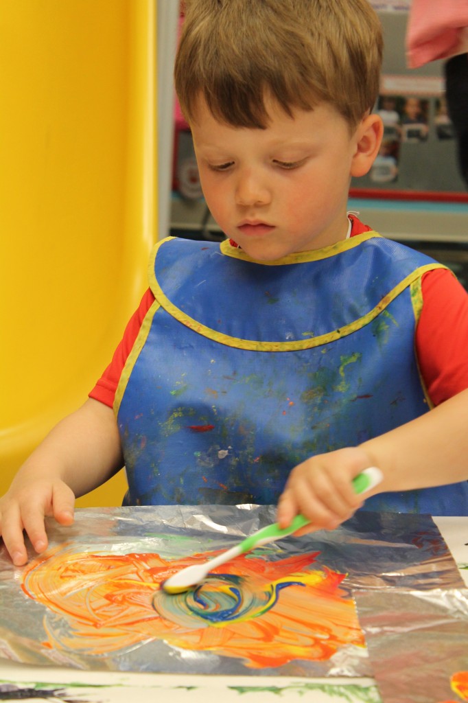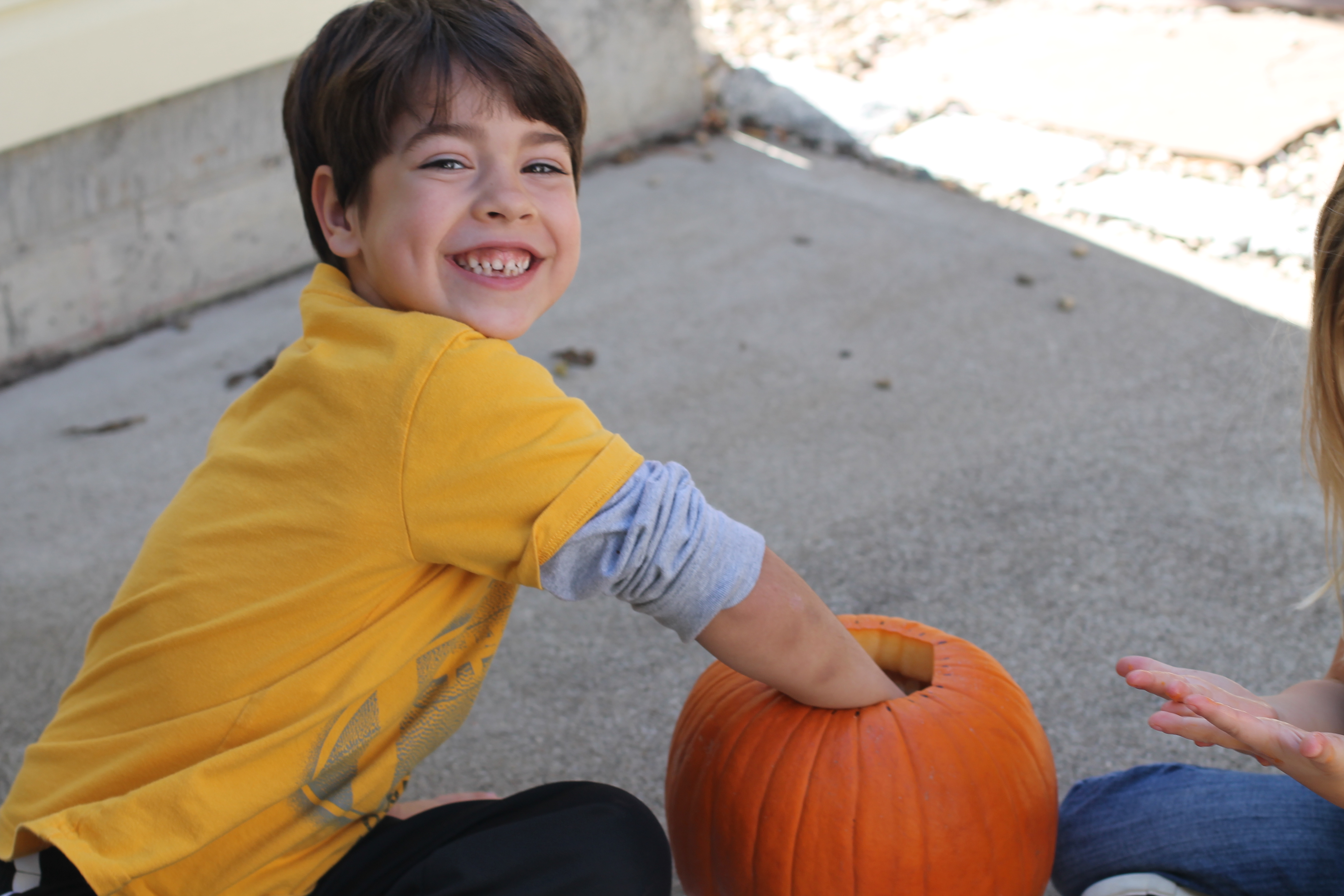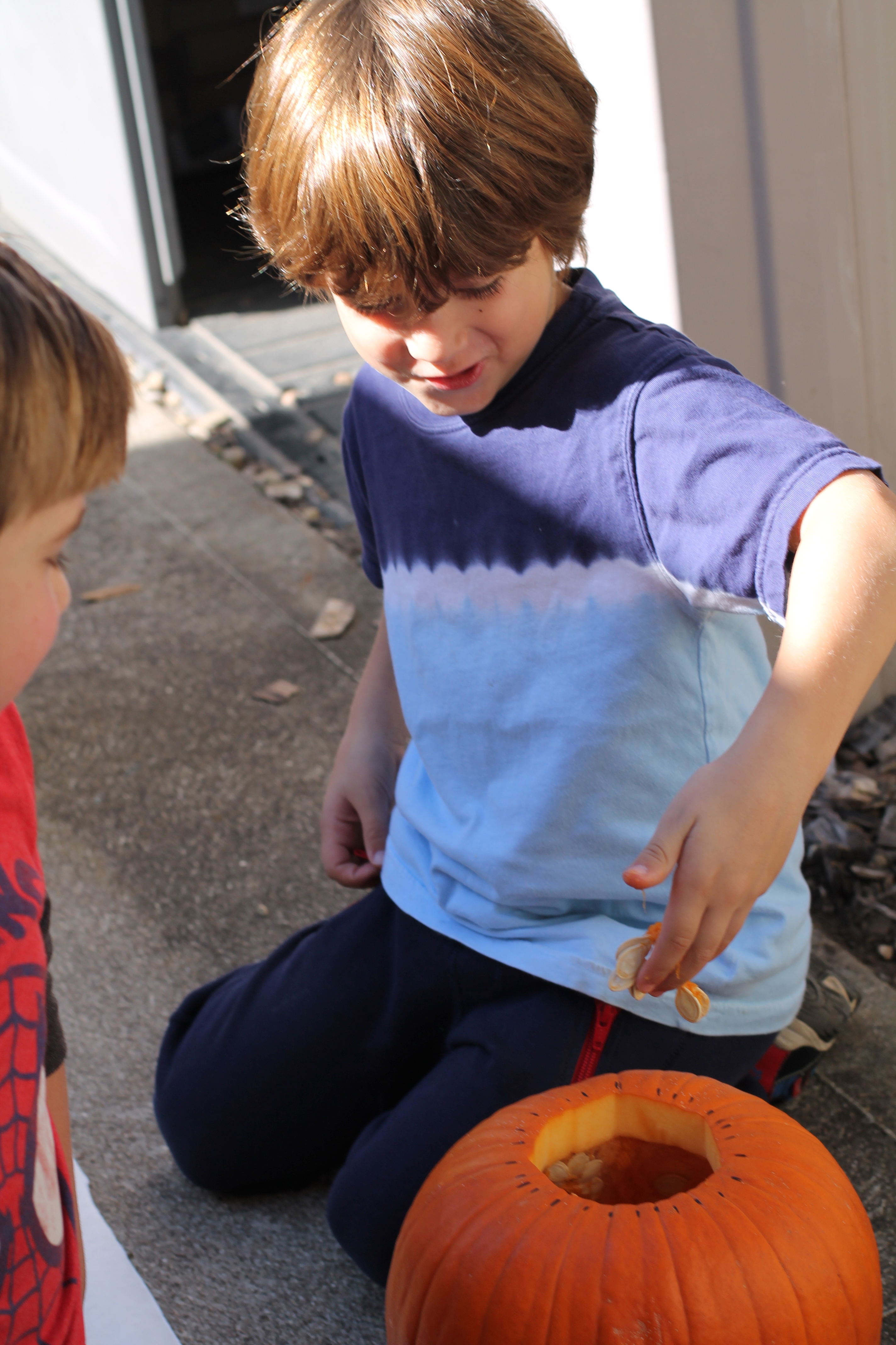 The afternoon preschool class explored a pumpkin this week! We measured it and talked about its characteristics (inside and out) using our 5 senses! The students took turns getting their hands dirty and pulling out some of the pumpkin seeds. We ended up roasting those seeds and eating them for snack!