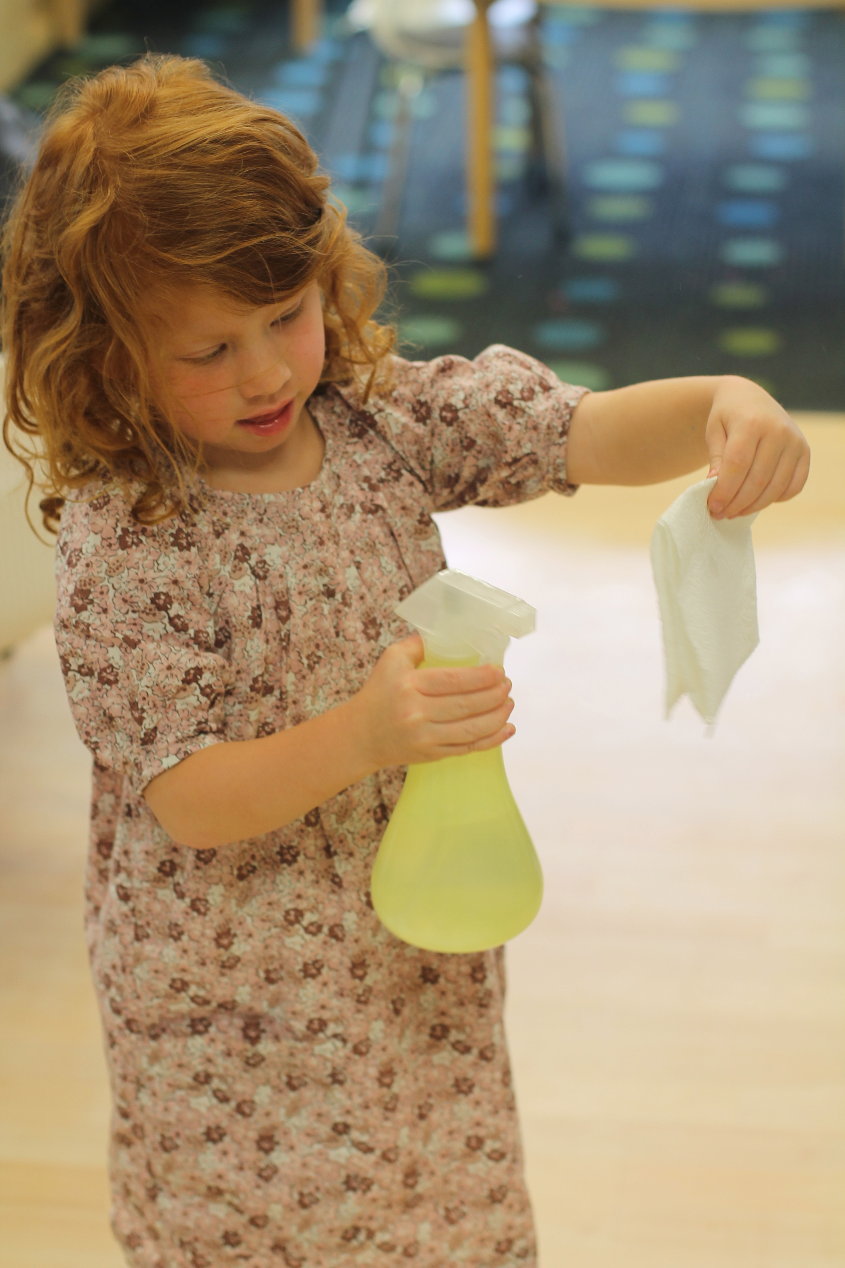 The toddlers are enjoying a fabulous fall full of squirrel songs, apple sorting /peeling, rectangle scarecrows, and name building with fall leaves.   Our centers this month are designed to give the toddlers the opportunity to explore farm animals, farm books, farm puzzles, new textures in the sensory bin,  and “cooking apple pie” in the dramatic play center.  We have milked a “cow”, sorted leaves, and continue to enjoy the season through purposeful play.
