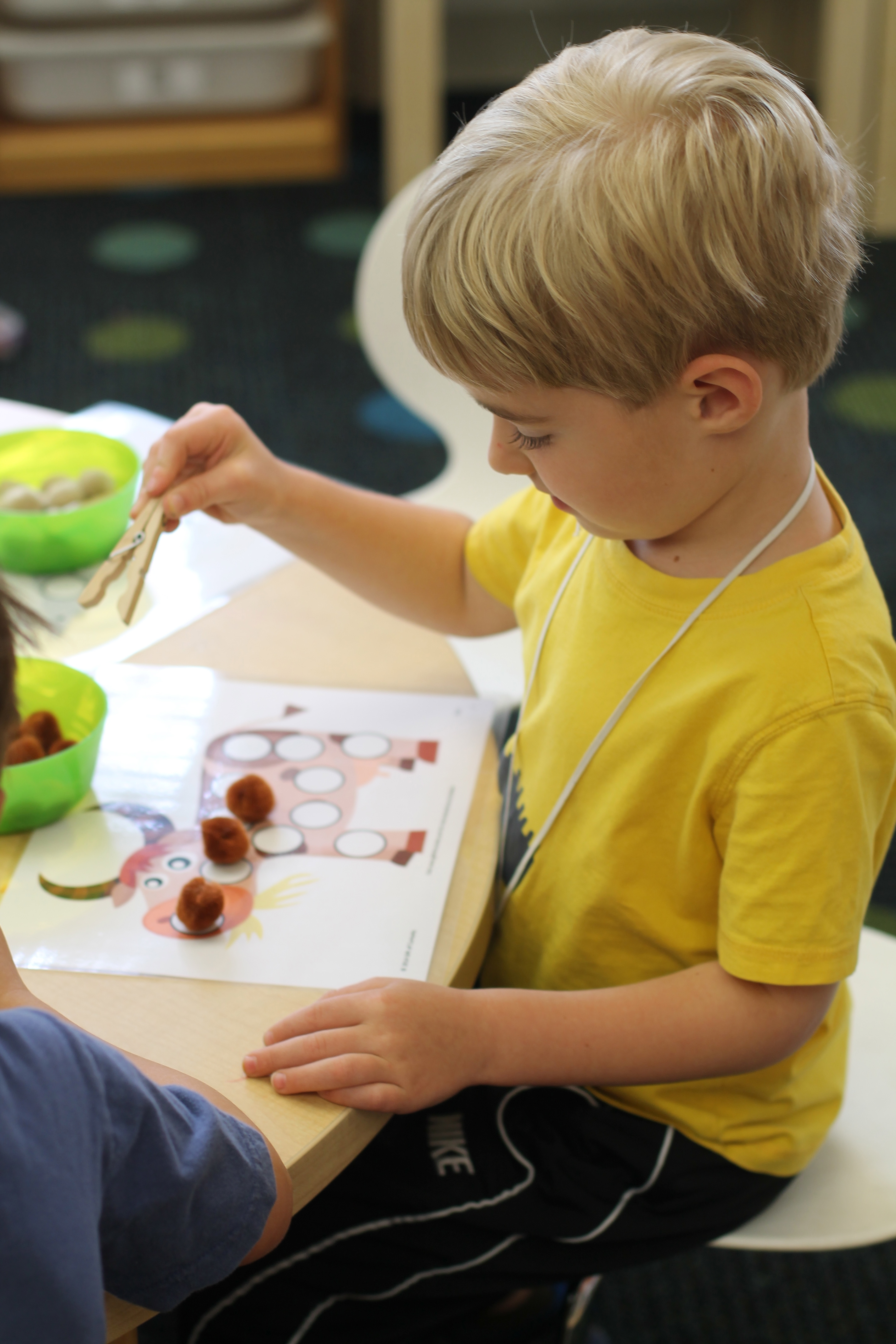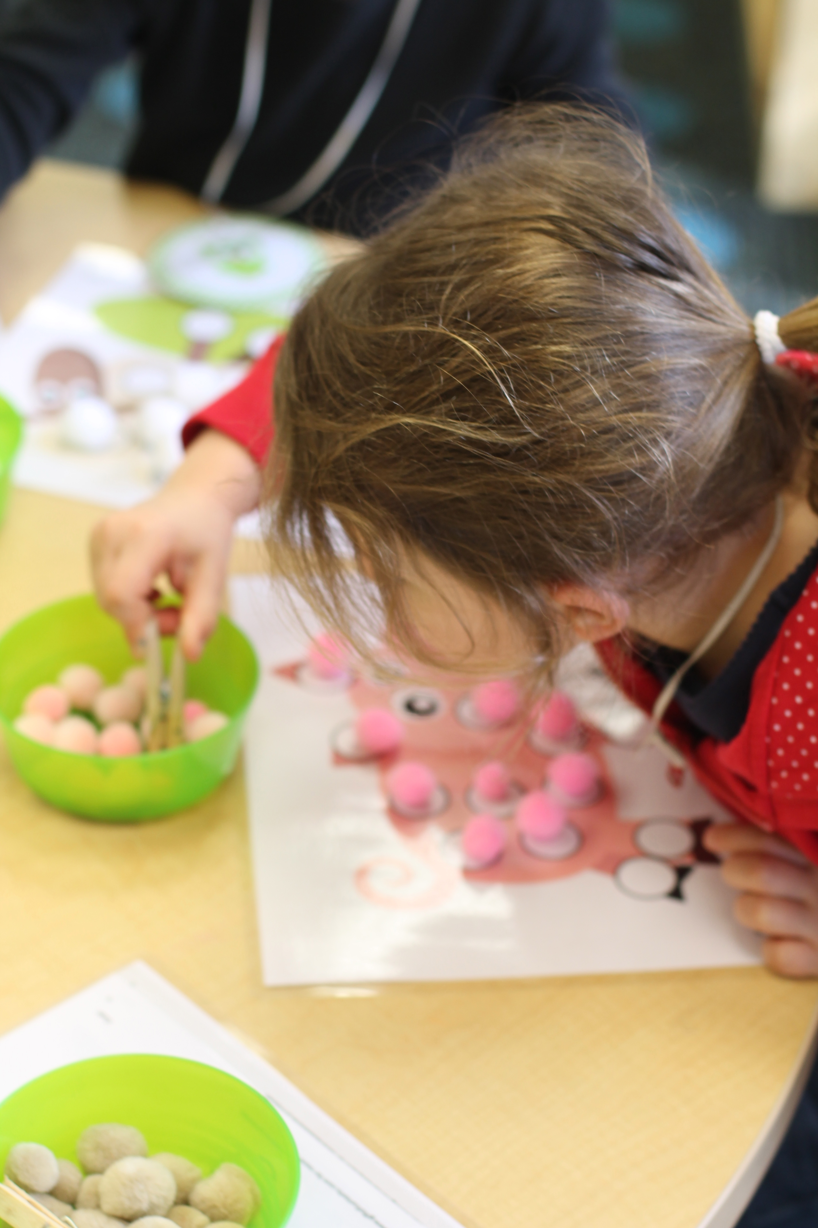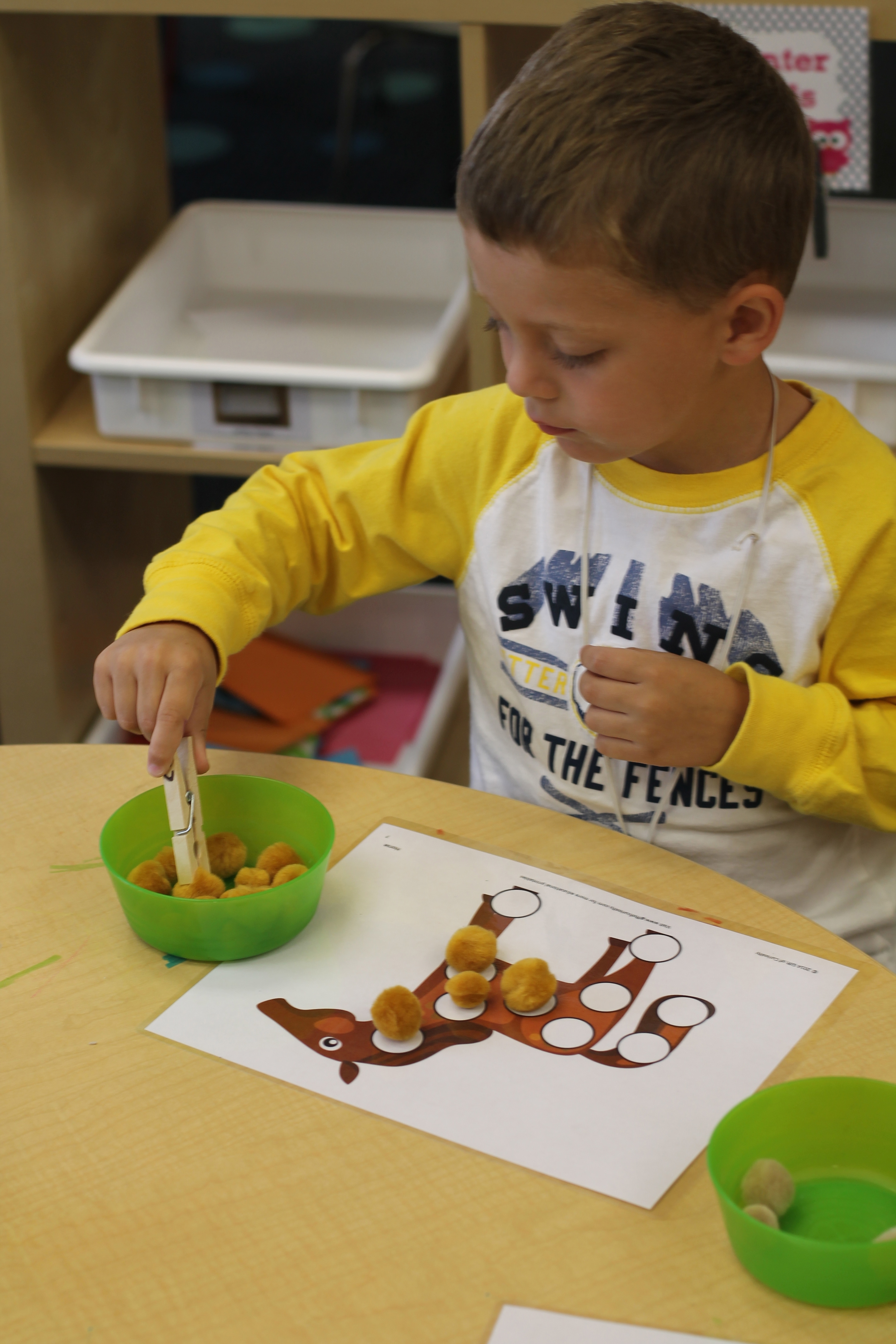 We have been working hard to strengthen our fine motor skills in the preschool room! Since we just visited Sunrock Farm, we added a farm animal twist to the lesson this week!
