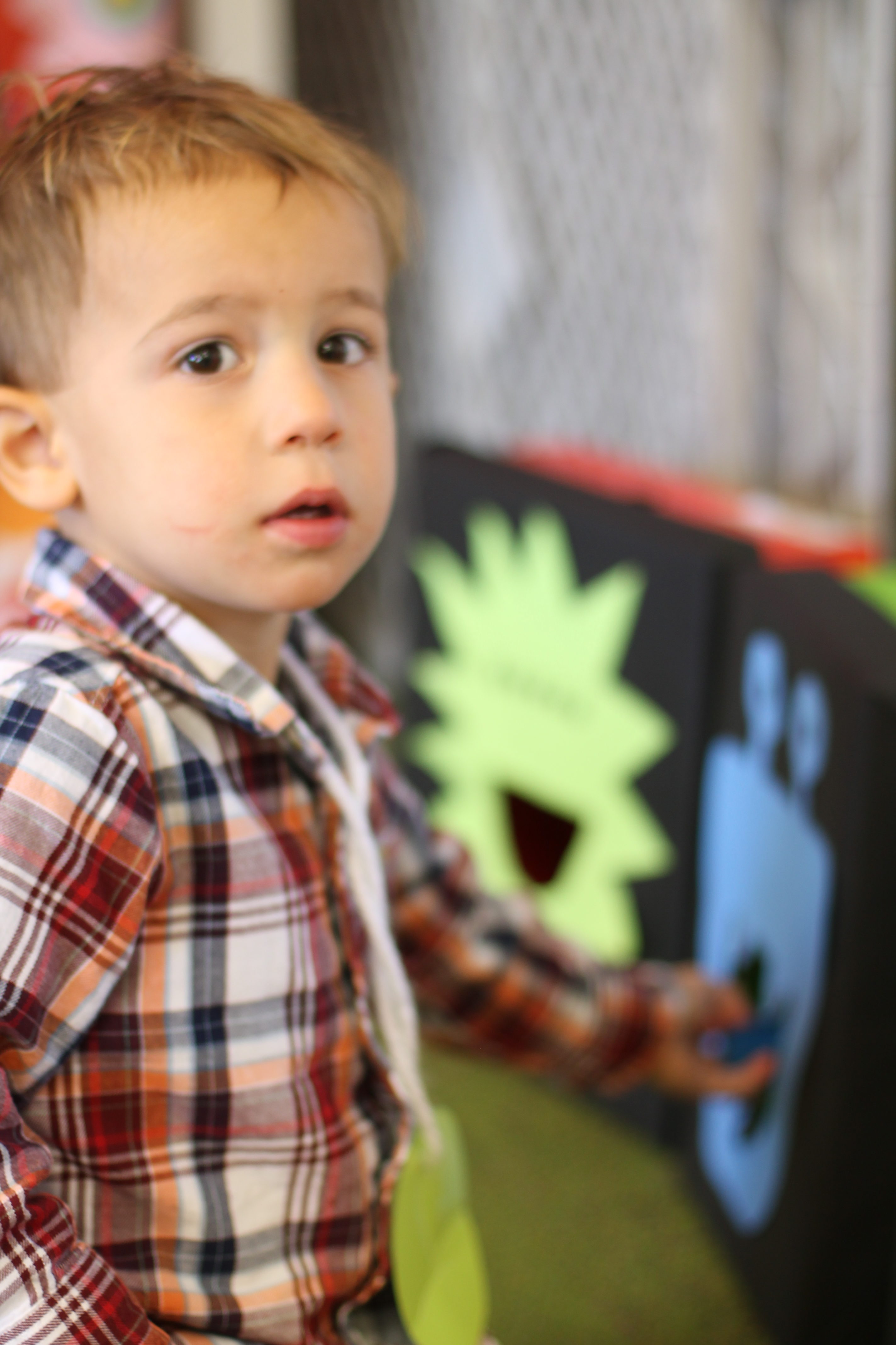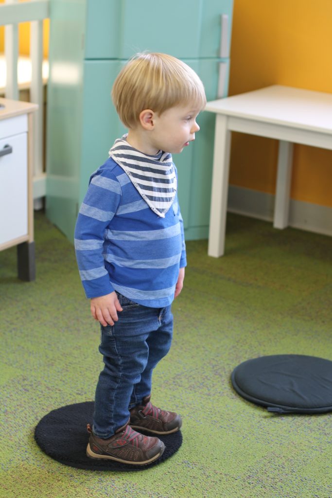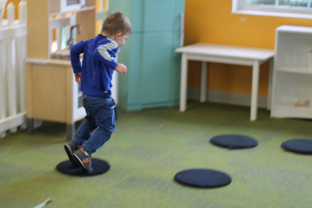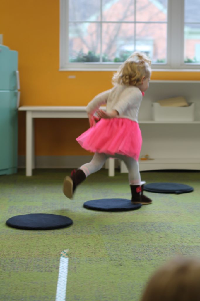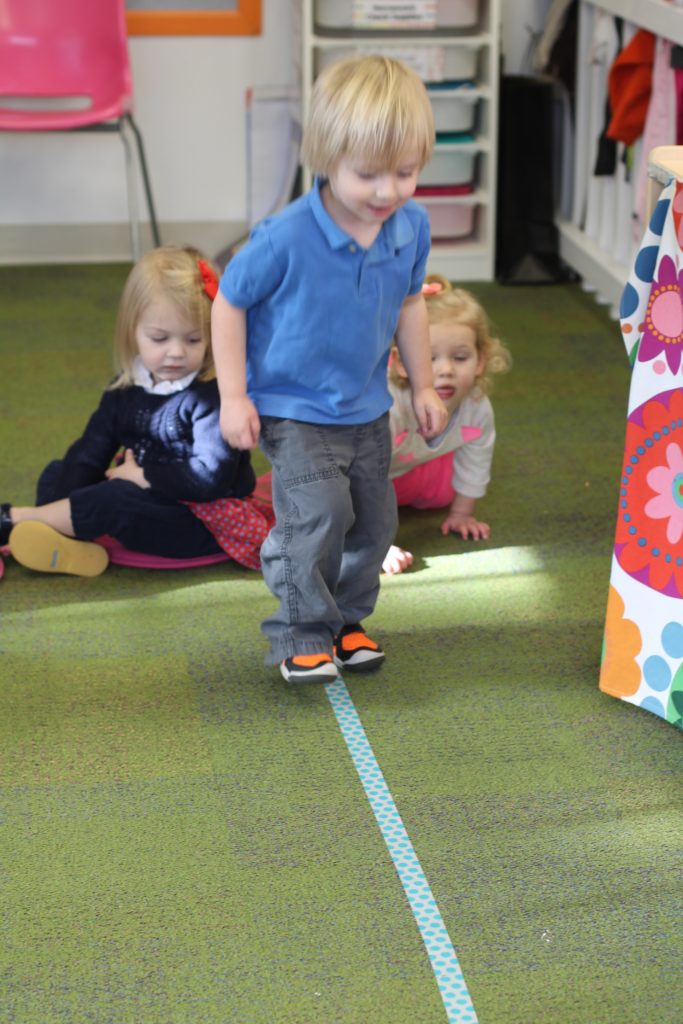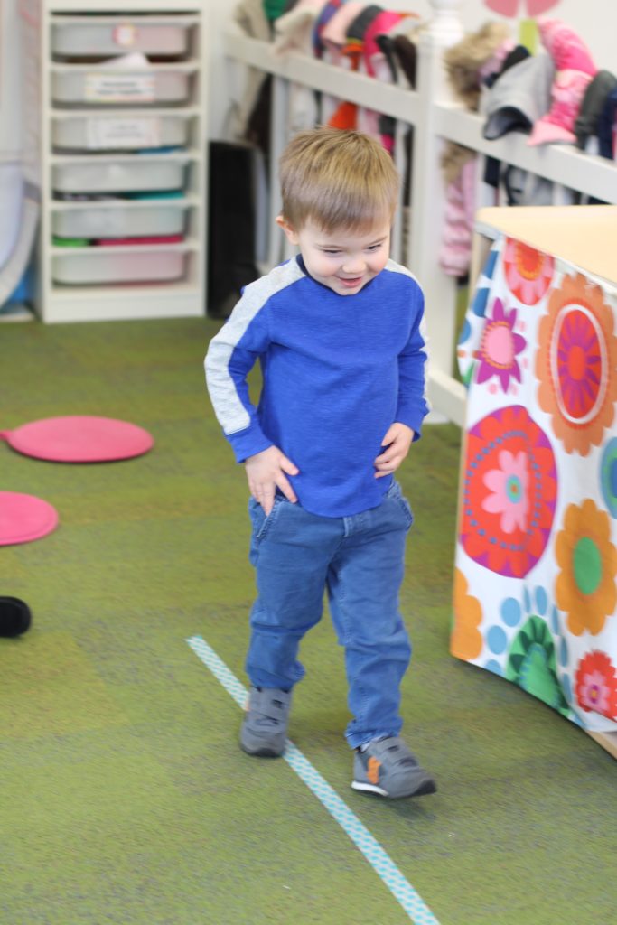 We also learned all about what the red, yellow, and green lights stand for! We practiced learning these colors and their meanings by tossing matching bean bags with the color on the “stop light”