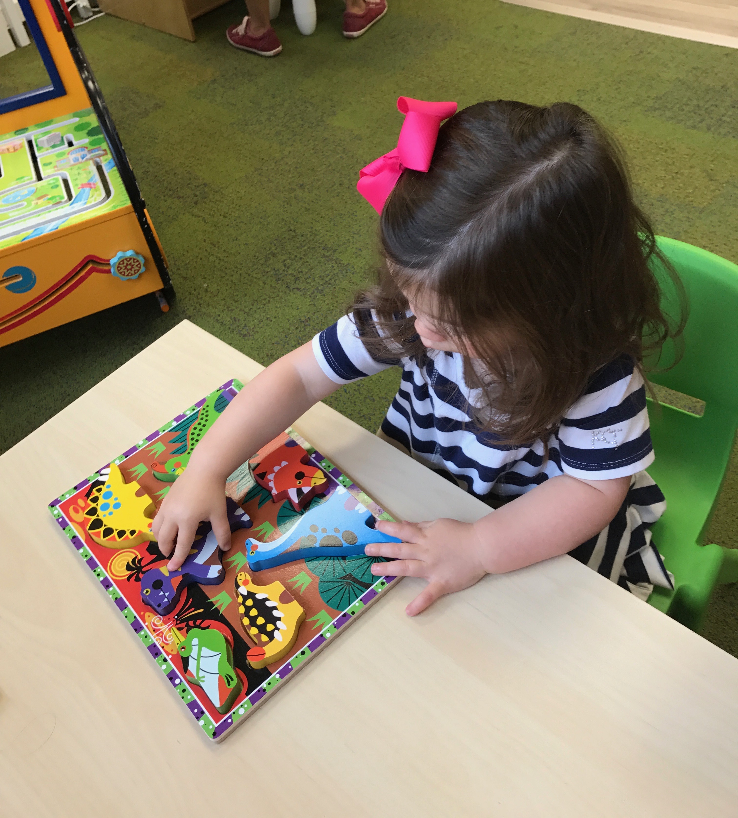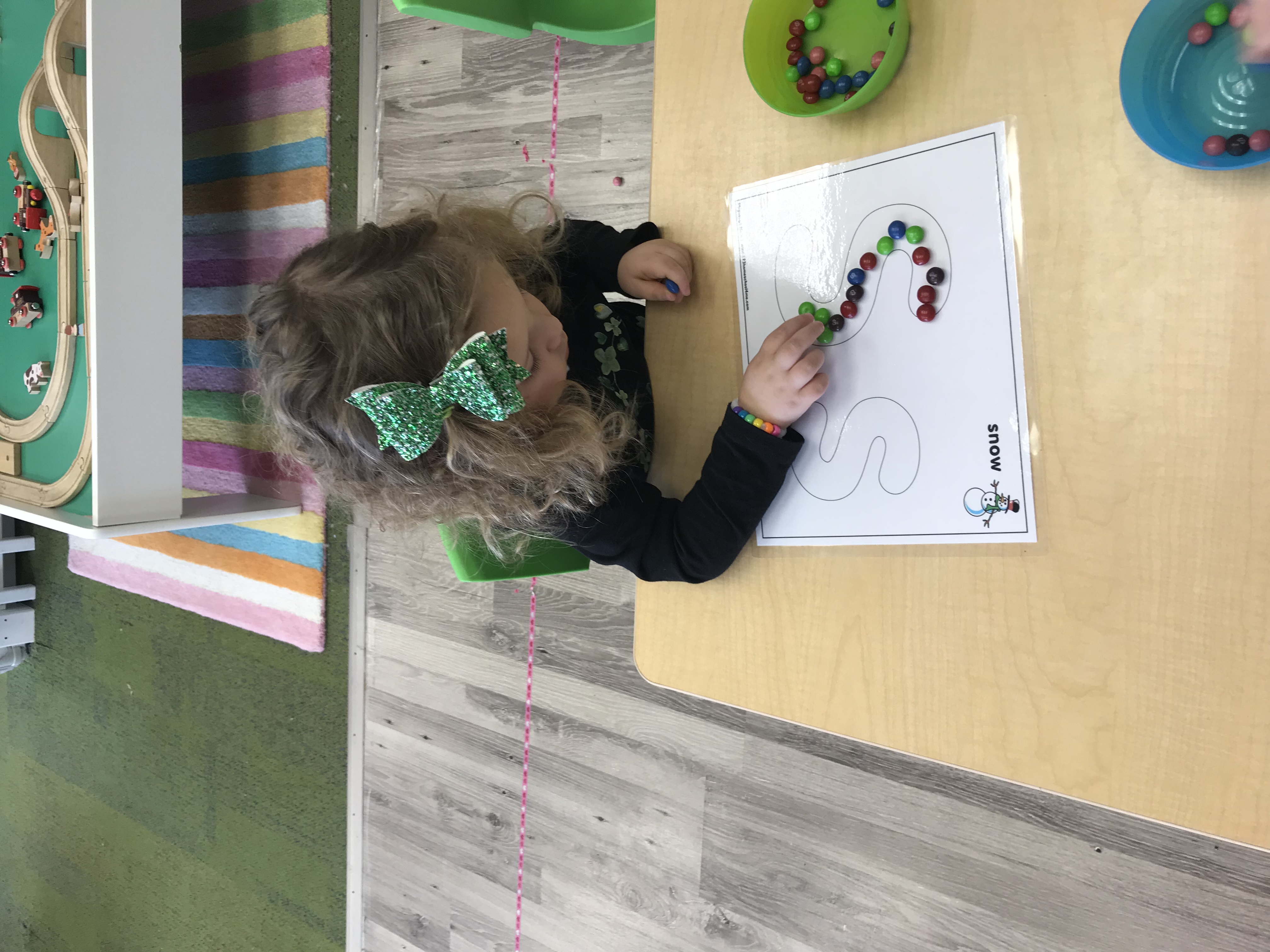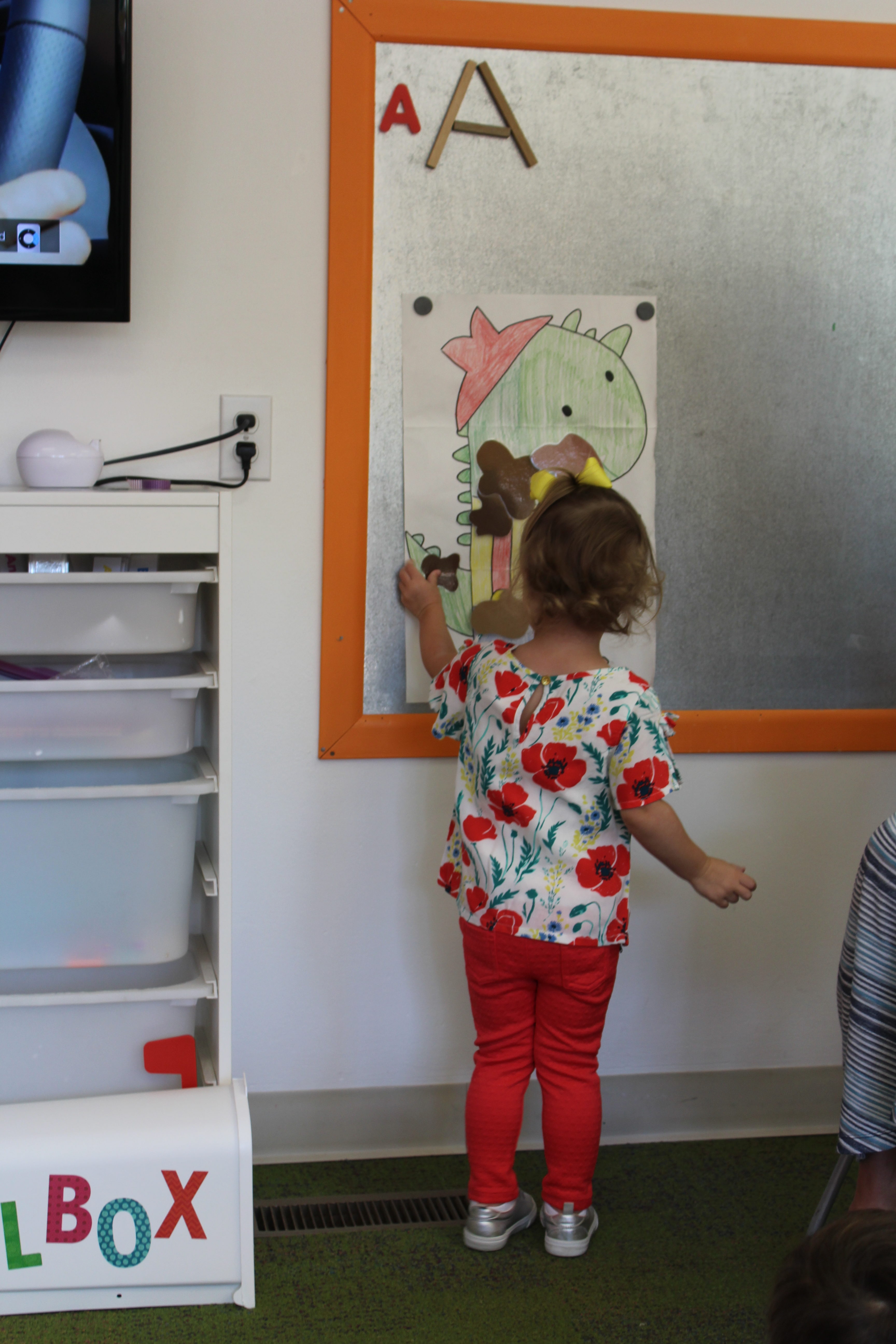 We also learned all about what the red, yellow, and green lights stand for! We practiced learning these colors and their meanings by tossing matching bean bags with the color on the “stop light”