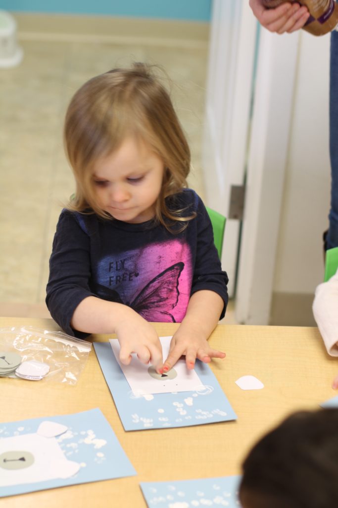 Our alphabet page for our transportation theme was “R” is for “road”! The toddlers practiced their fine motor skills by peeling off stickers, and sticking them onto the “road” made out of the letter R!