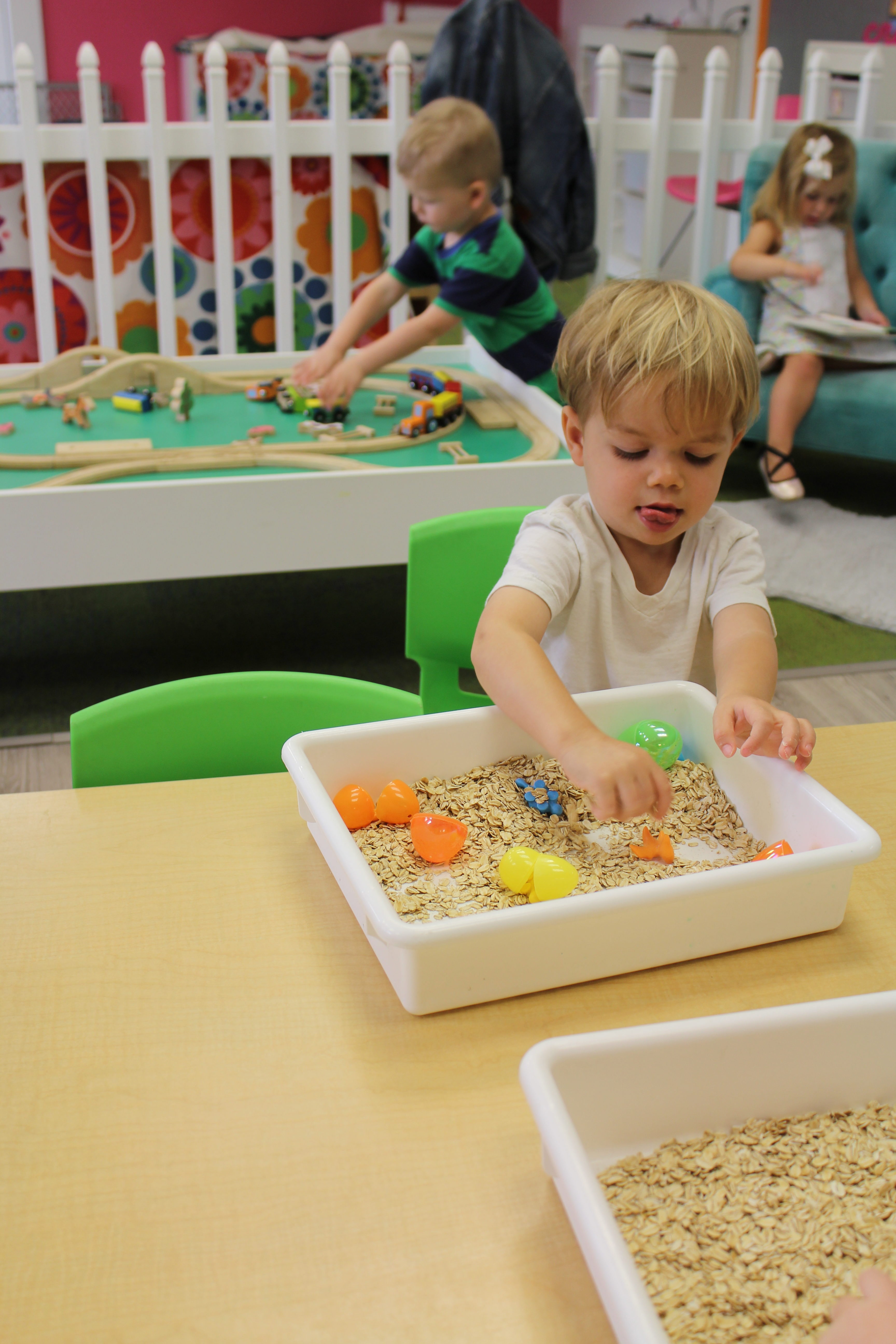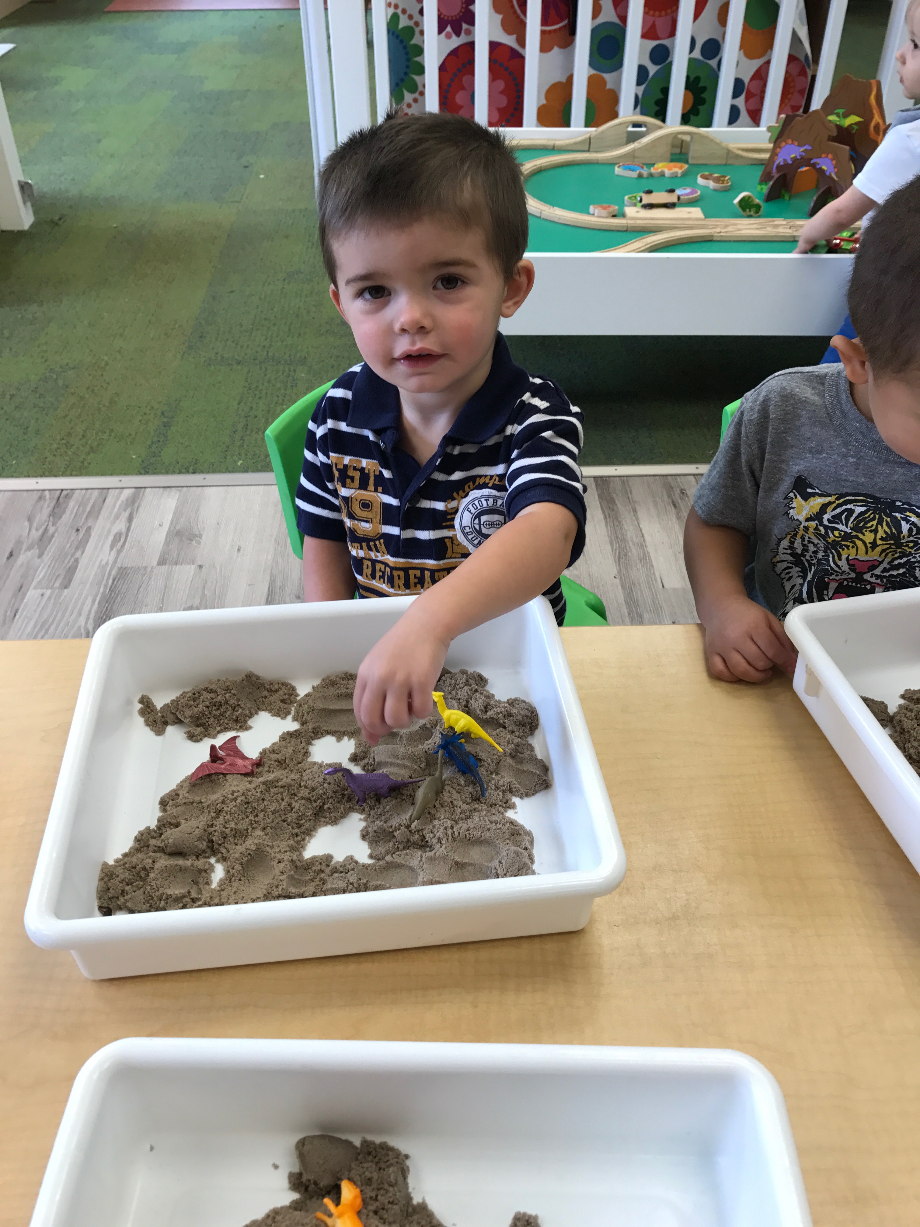 We also had a fun sensory activity with our cars, having a pretend car wash in our sensory bins.