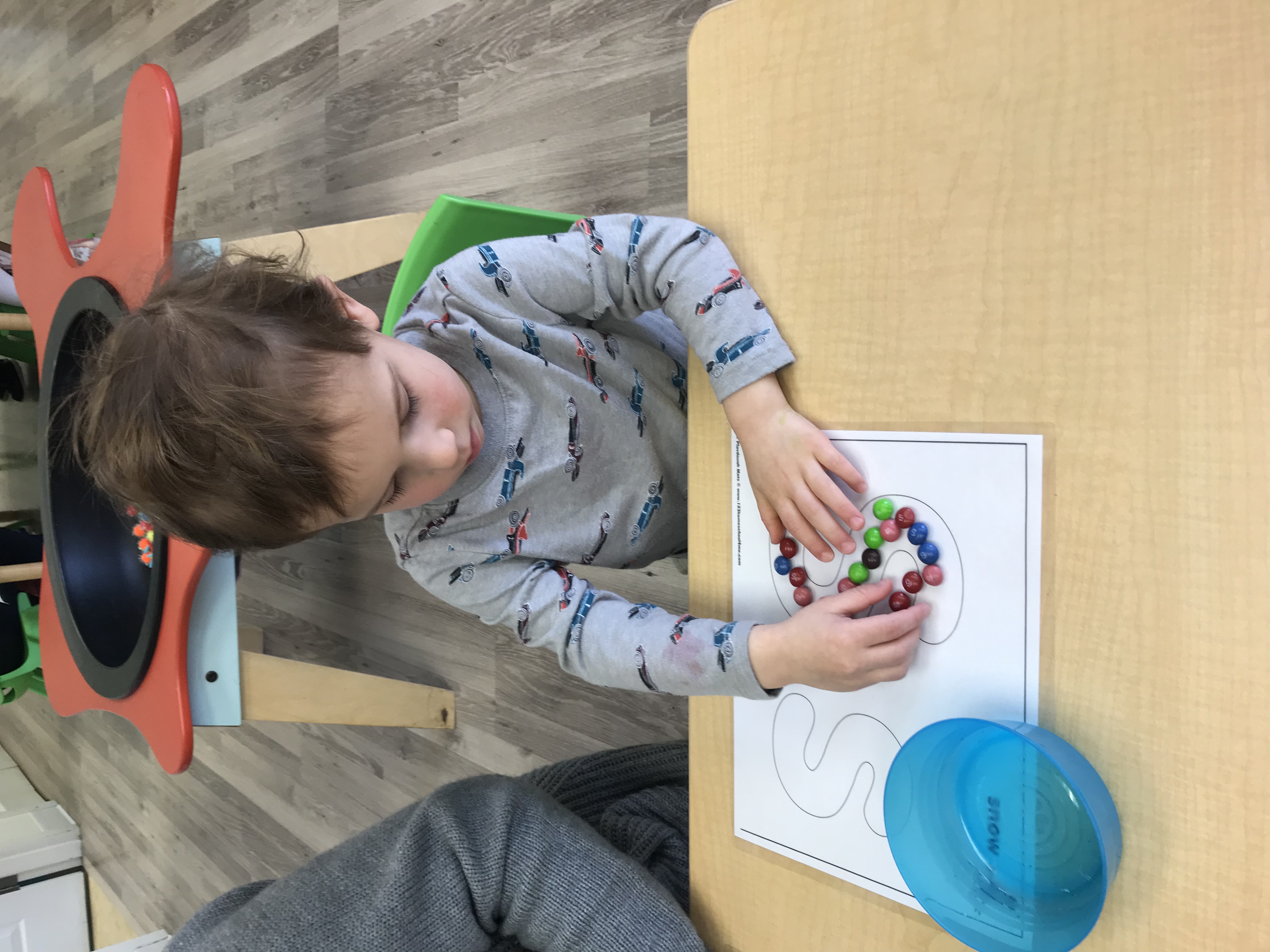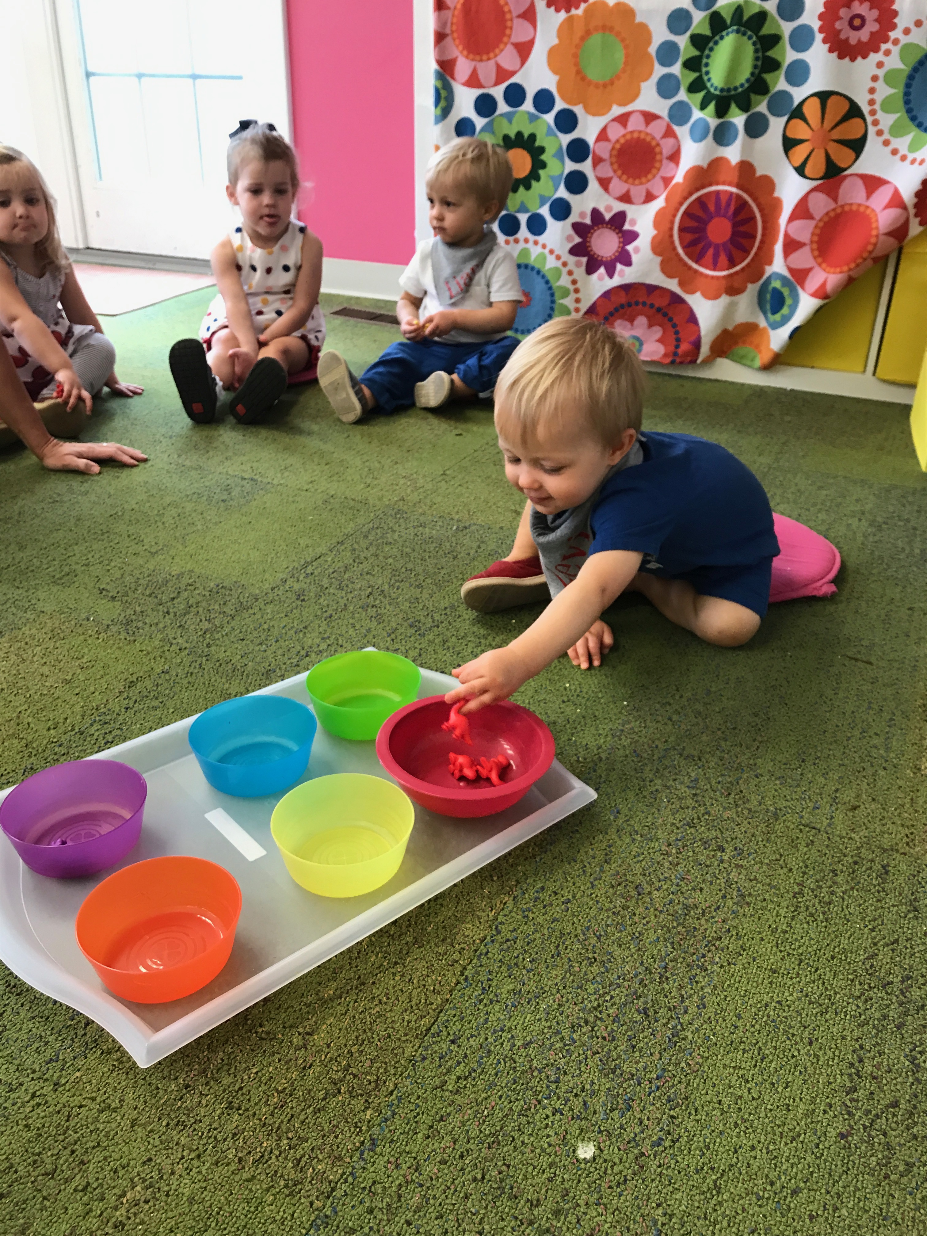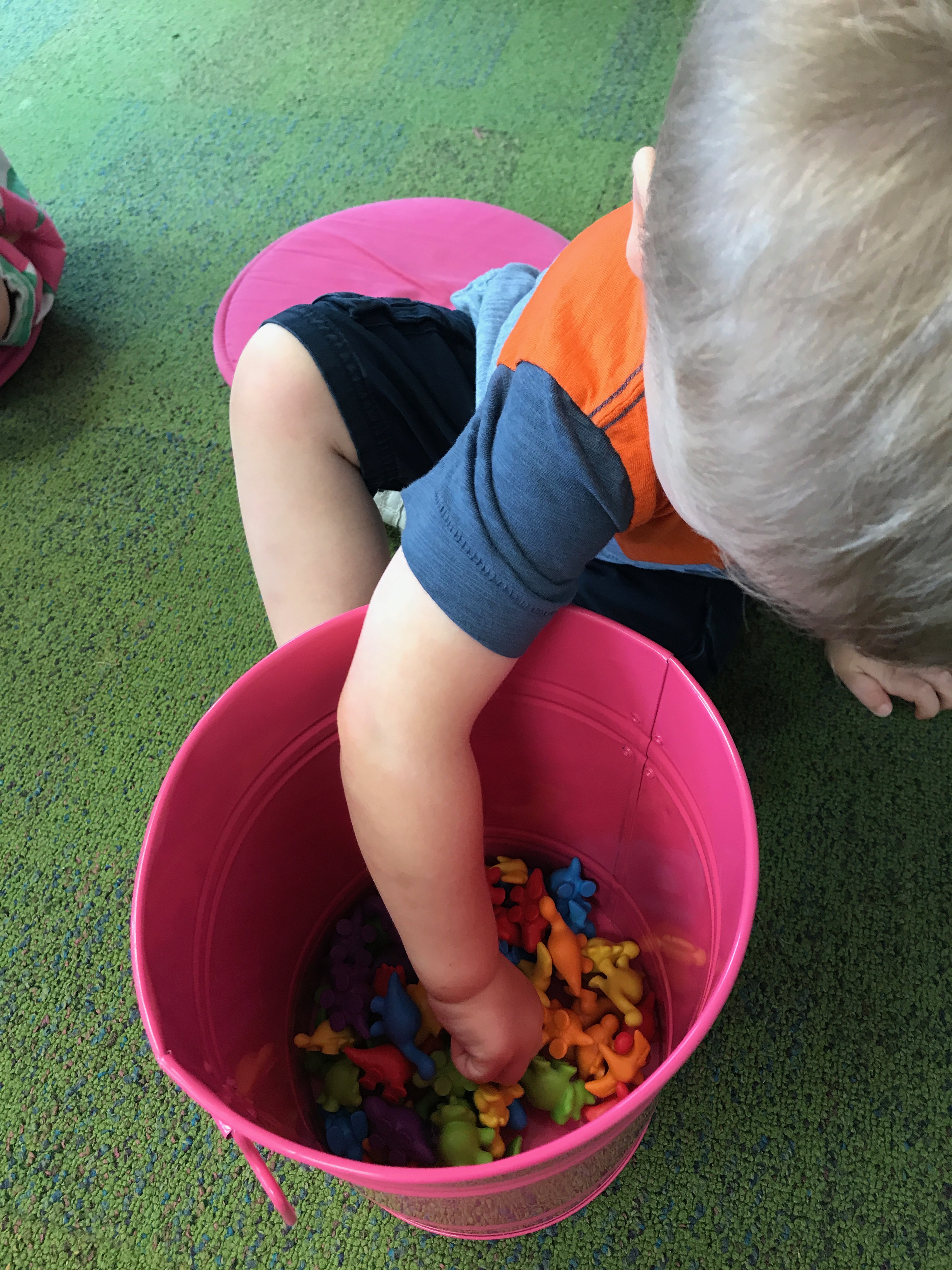 And because you can never do too many color sorting activities, we used miniature modes of transportation to sort onto our color mats!