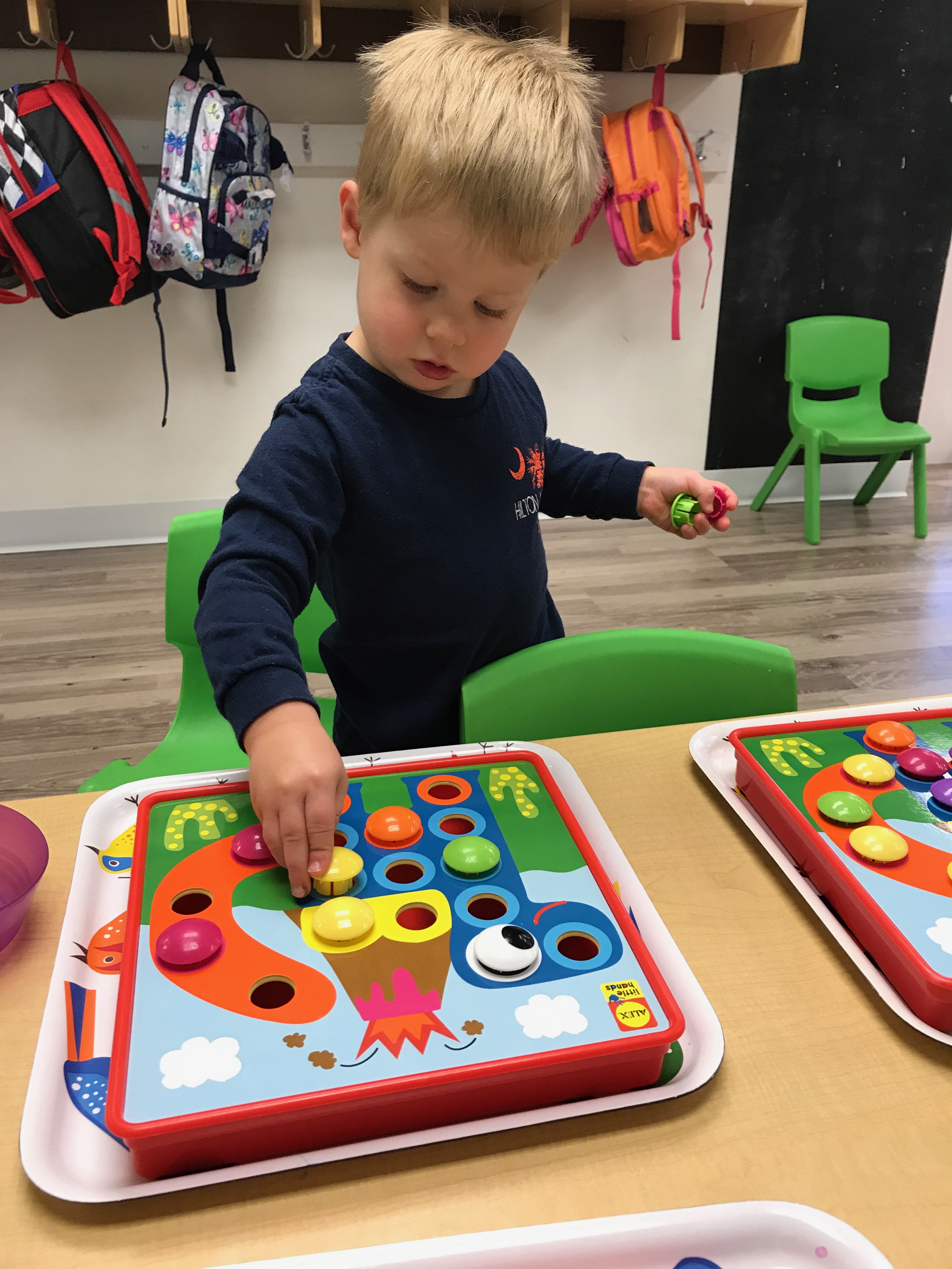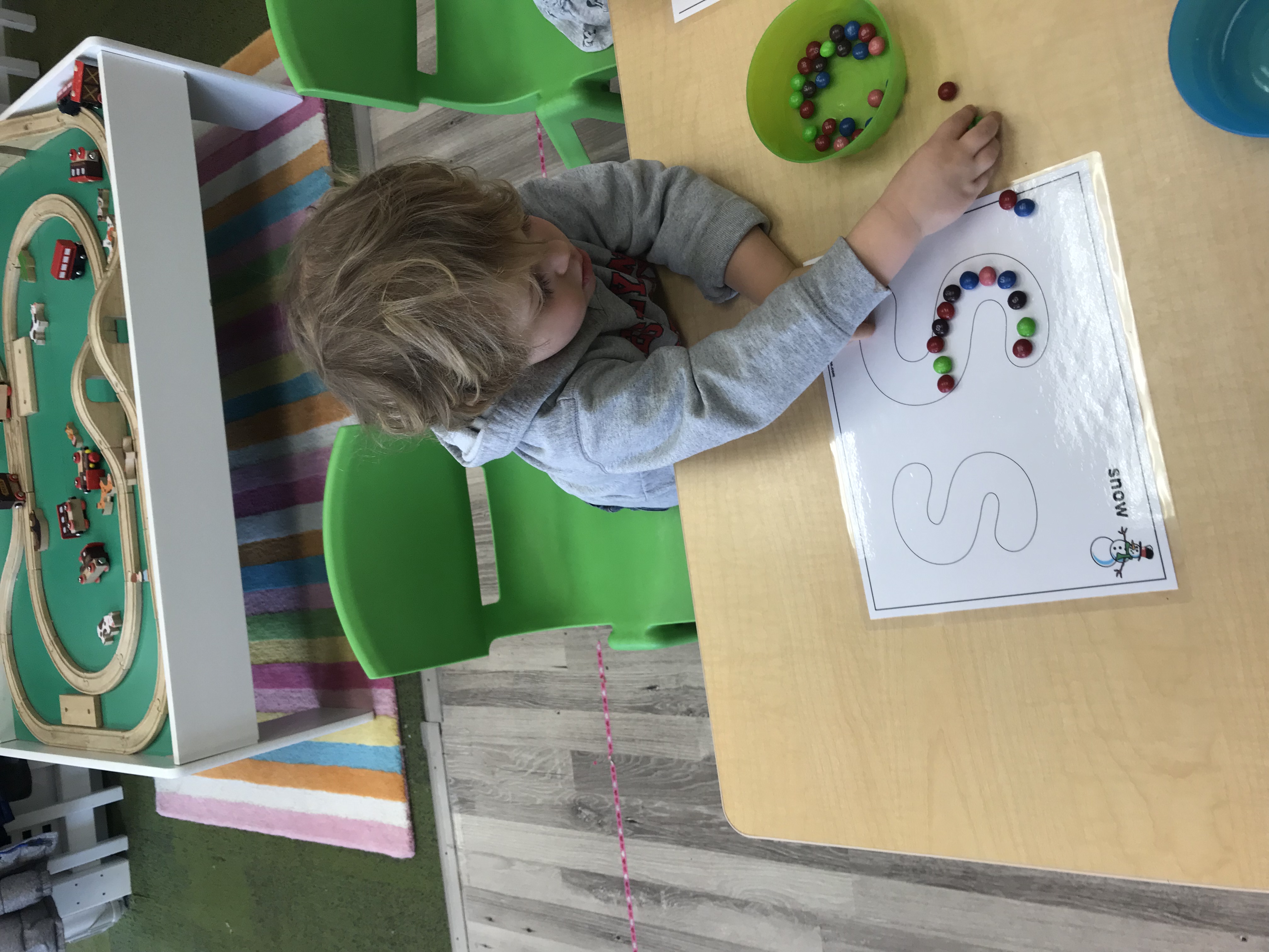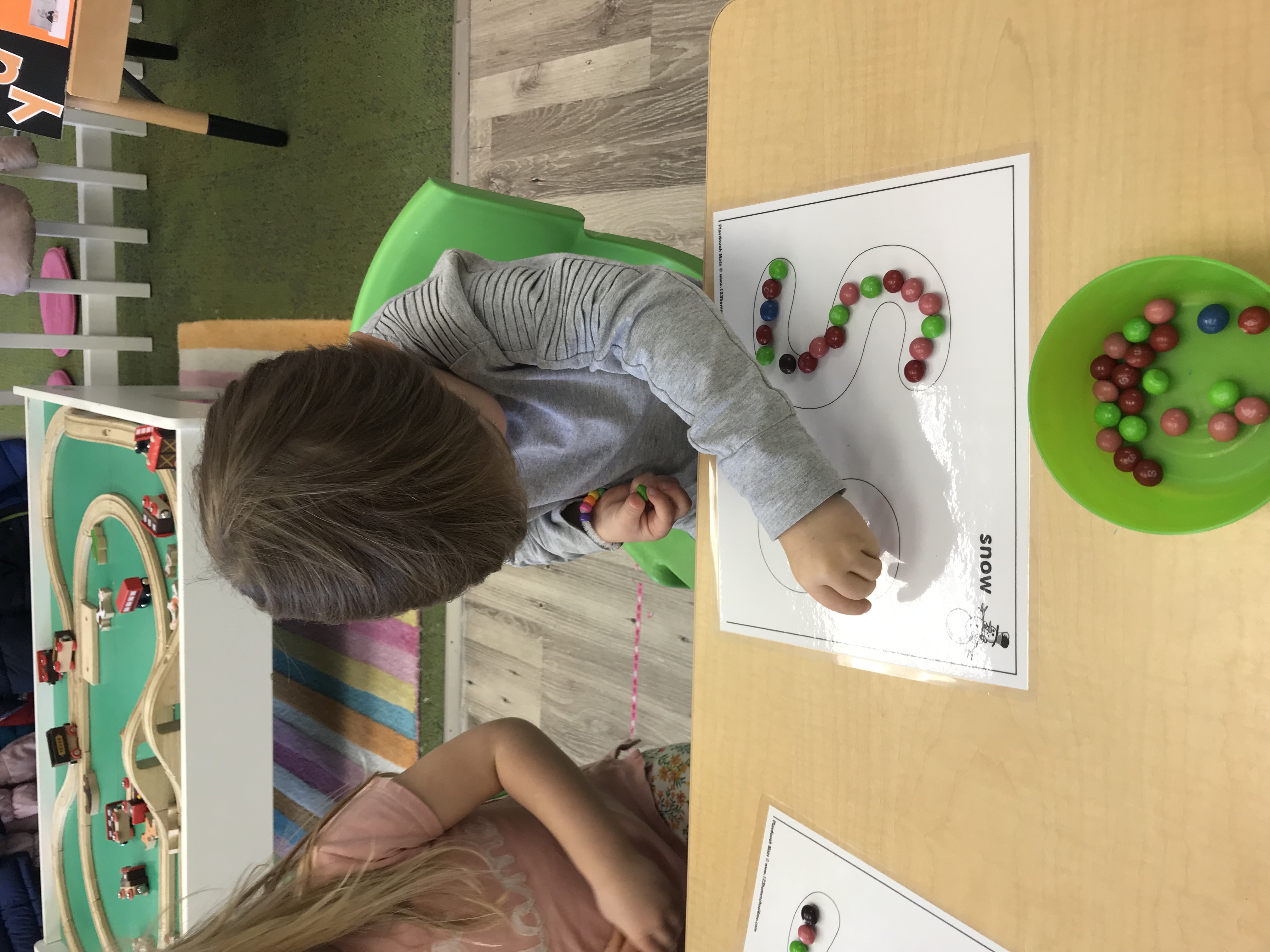 And because you can never do too many color sorting activities, we used miniature modes of transportation to sort onto our color mats!