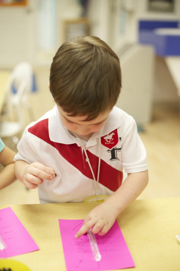 Ms. Cally played “Listen & Color” and helped the preschoolers practice their listening skills. This is great prep for following directions and understanding classroom dynamic. So much of traditional schooling is based on auditory learning. Preschoolers need to practice being able to listen not only to directions, but for directions as well. We structure our classroom to give cues to call attention such as flashing the lights or clapping our hands. This helps create awareness for what is happening around us in the classroom. Ms. Cally instructed the preschoolers to ‘color the star orange’ or ‘find the spoon and color it purple’. This is a great activity to do at home with your little one!