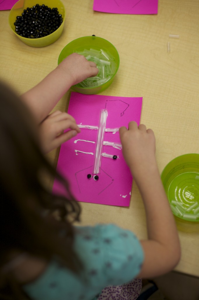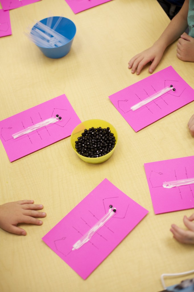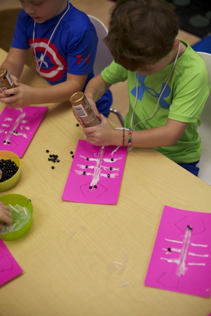 We made Scorpion’s out of straws and beads using a Q-tip to draw on the glue.  Gripping the Q-tip and controlling a tracing movement is a great way to strengthen the “pincher grip.”  Making our fine motor muscle tone stronger will help us to be able to prepare for the task of writing.