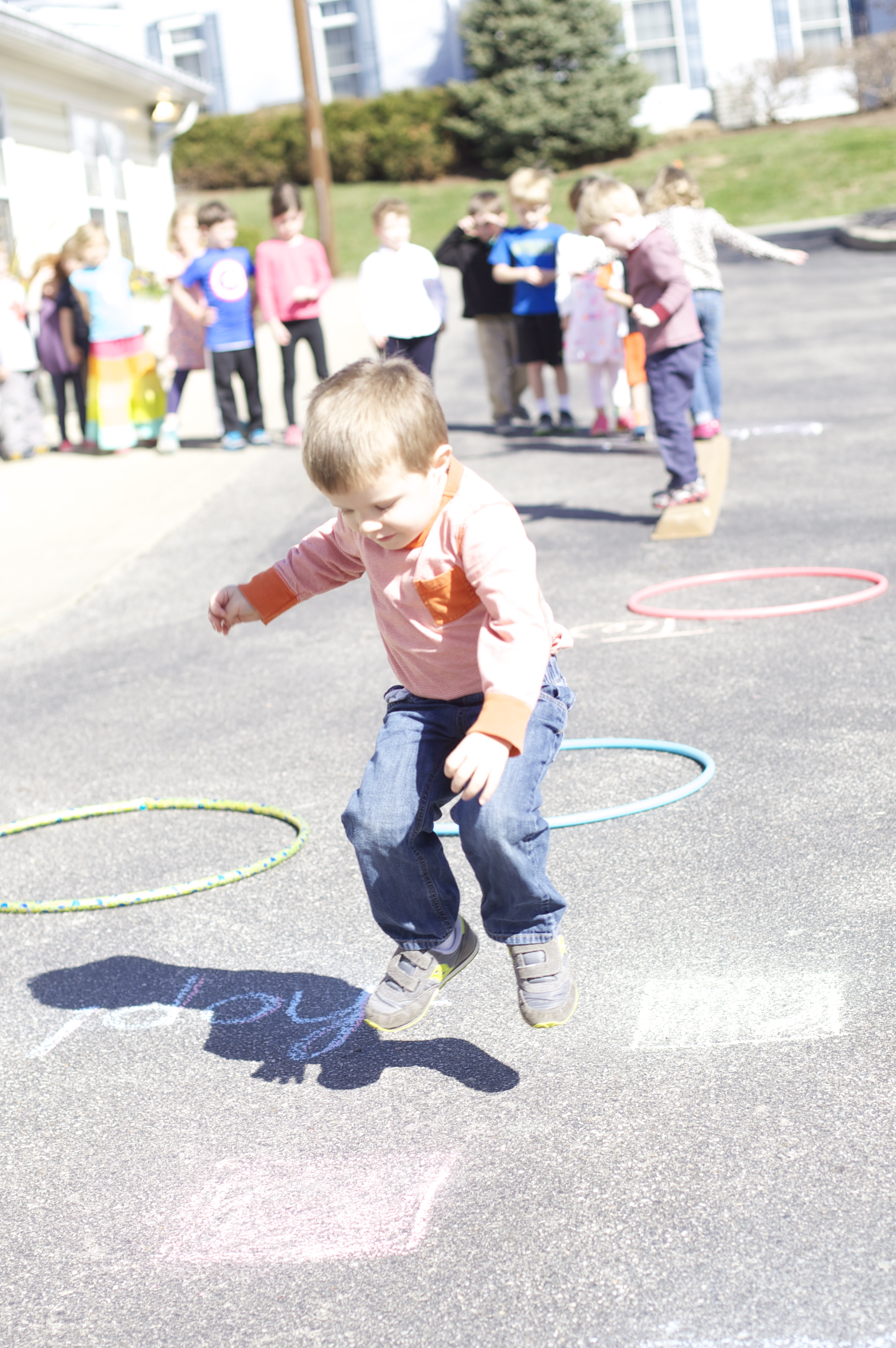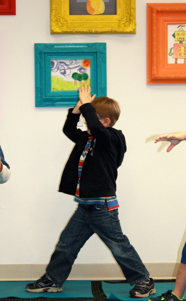 Getting our bodies involved on a cold winter day, with a gross motor shape hunt!