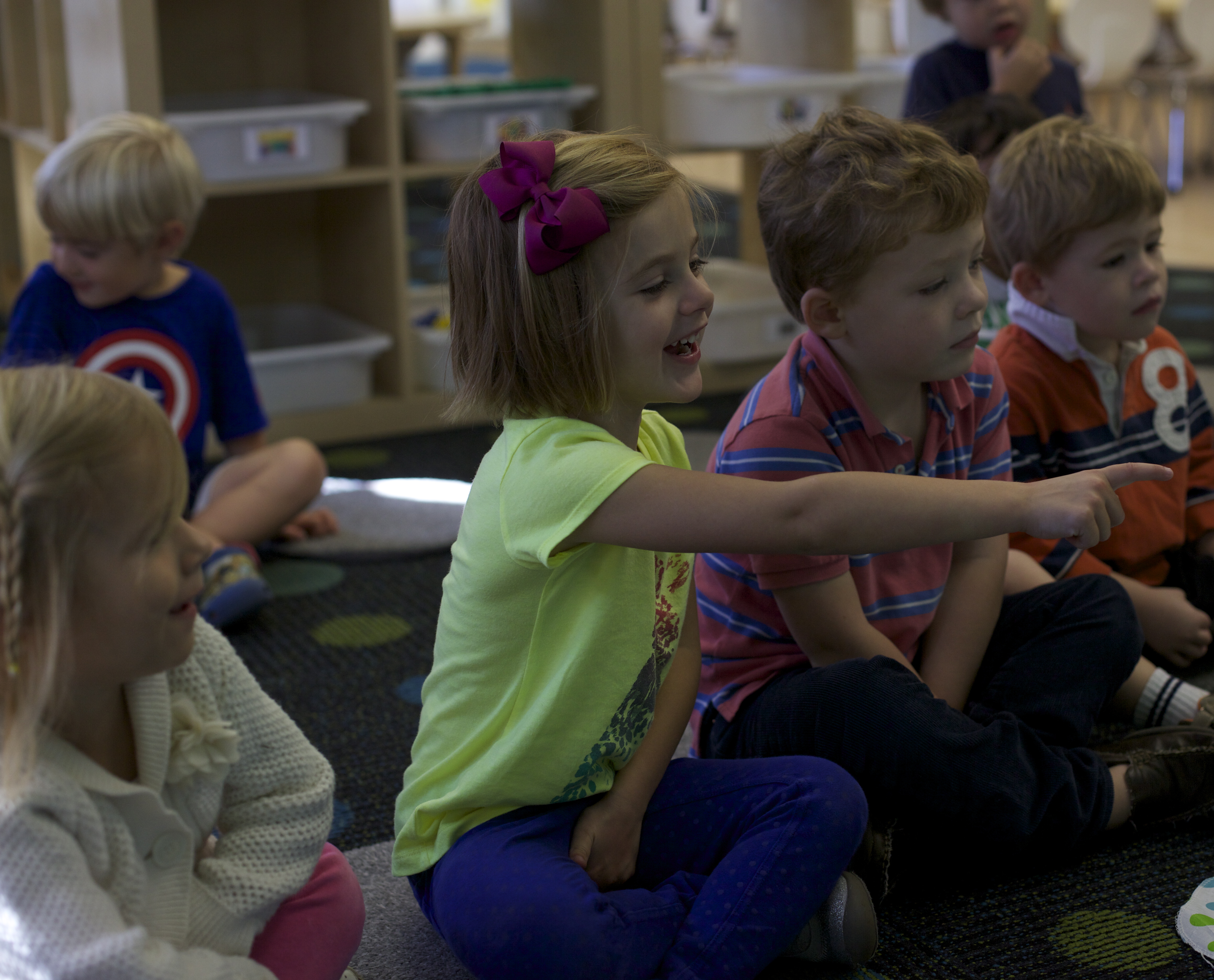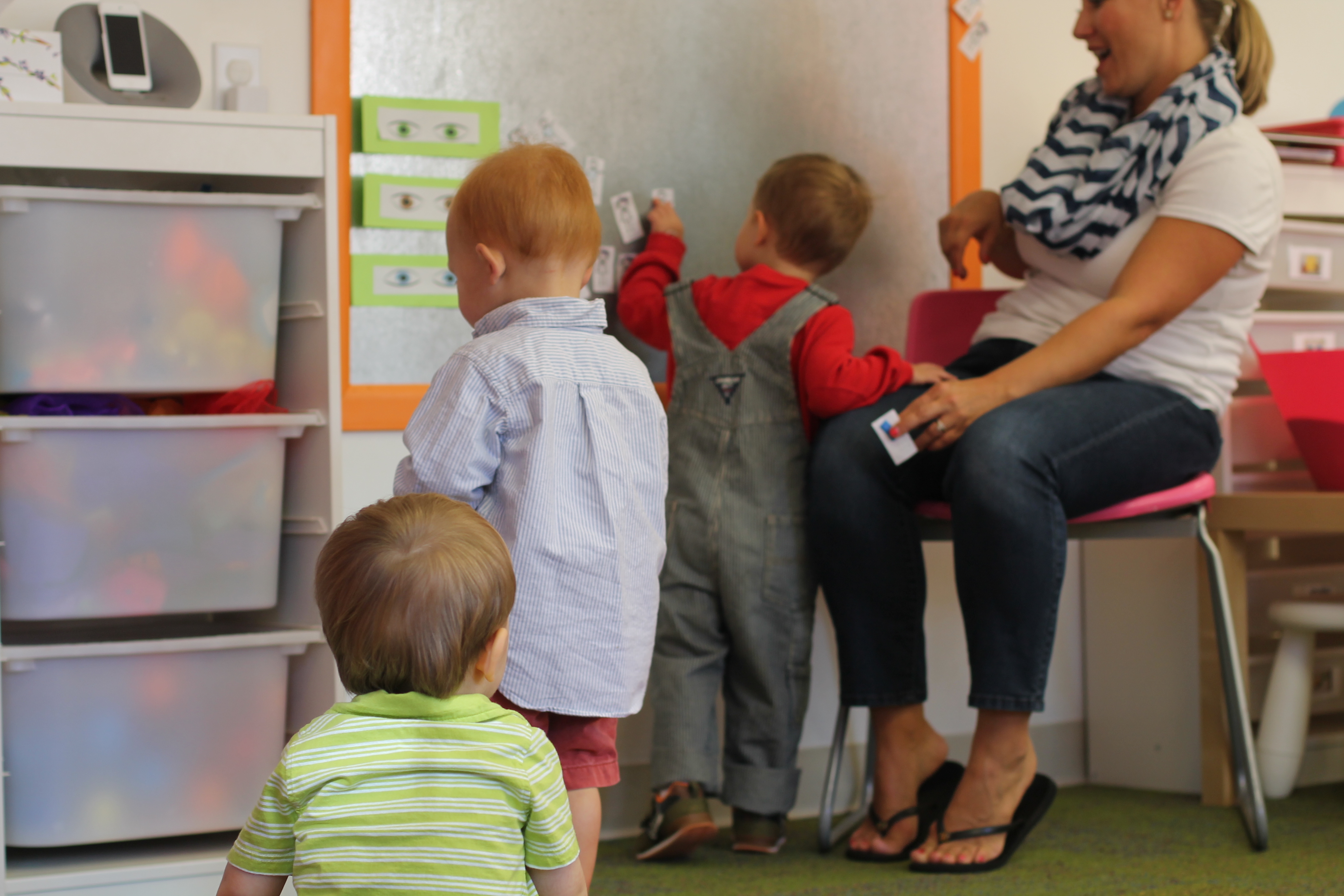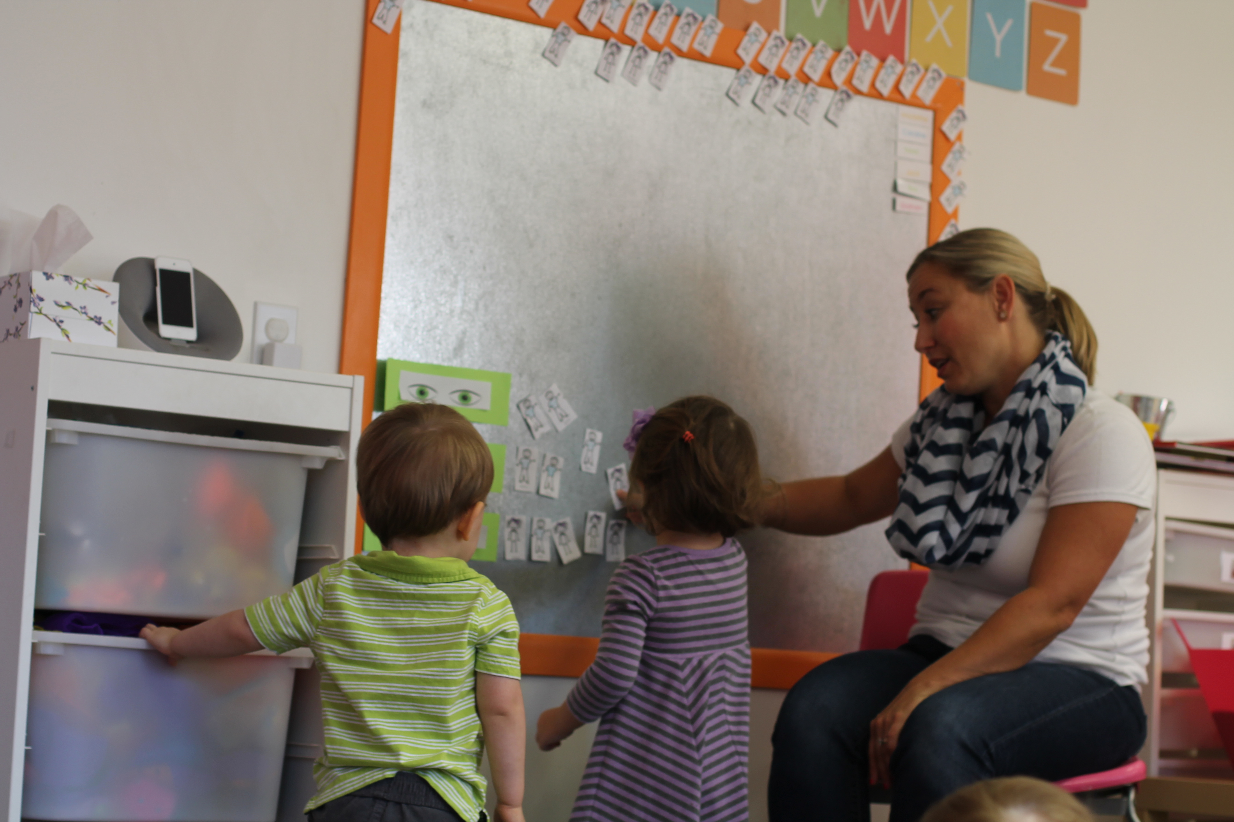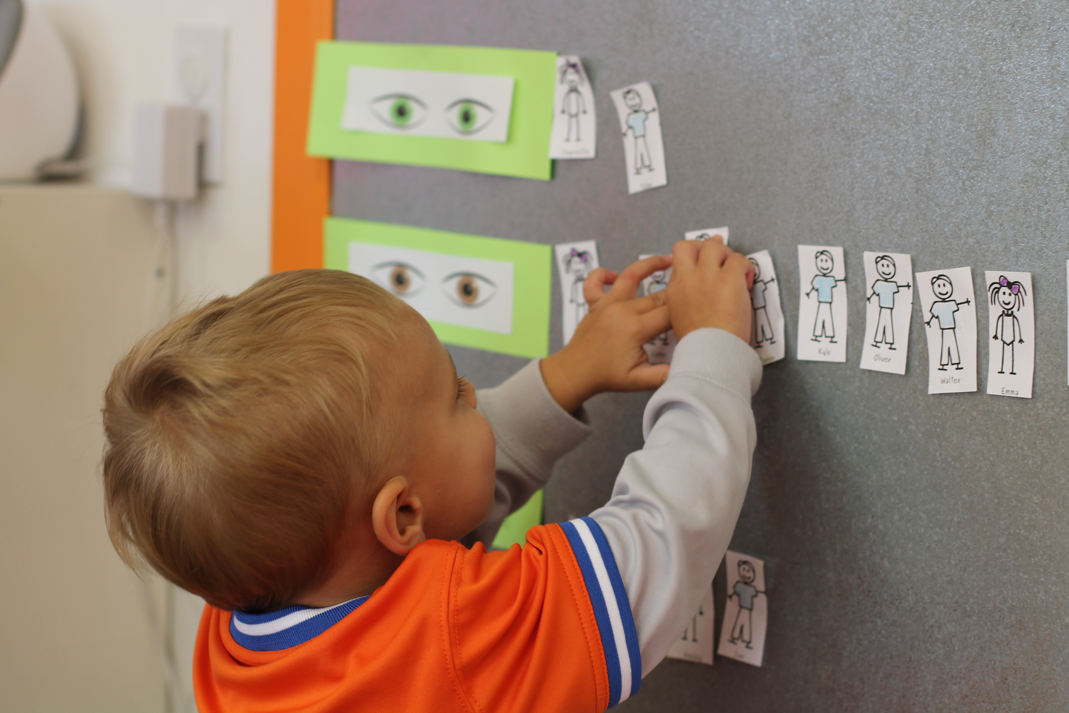 During group time we are reading We are all alike…We are all different by the Cheltenham Elementary School Kindergartners. Today we talked about how we are all alike because we all have eyes but we are also different because are eyes are different colors. The children had a chance to come up to the board and put their name next to brown eyes, green eyes or blue eyes.
