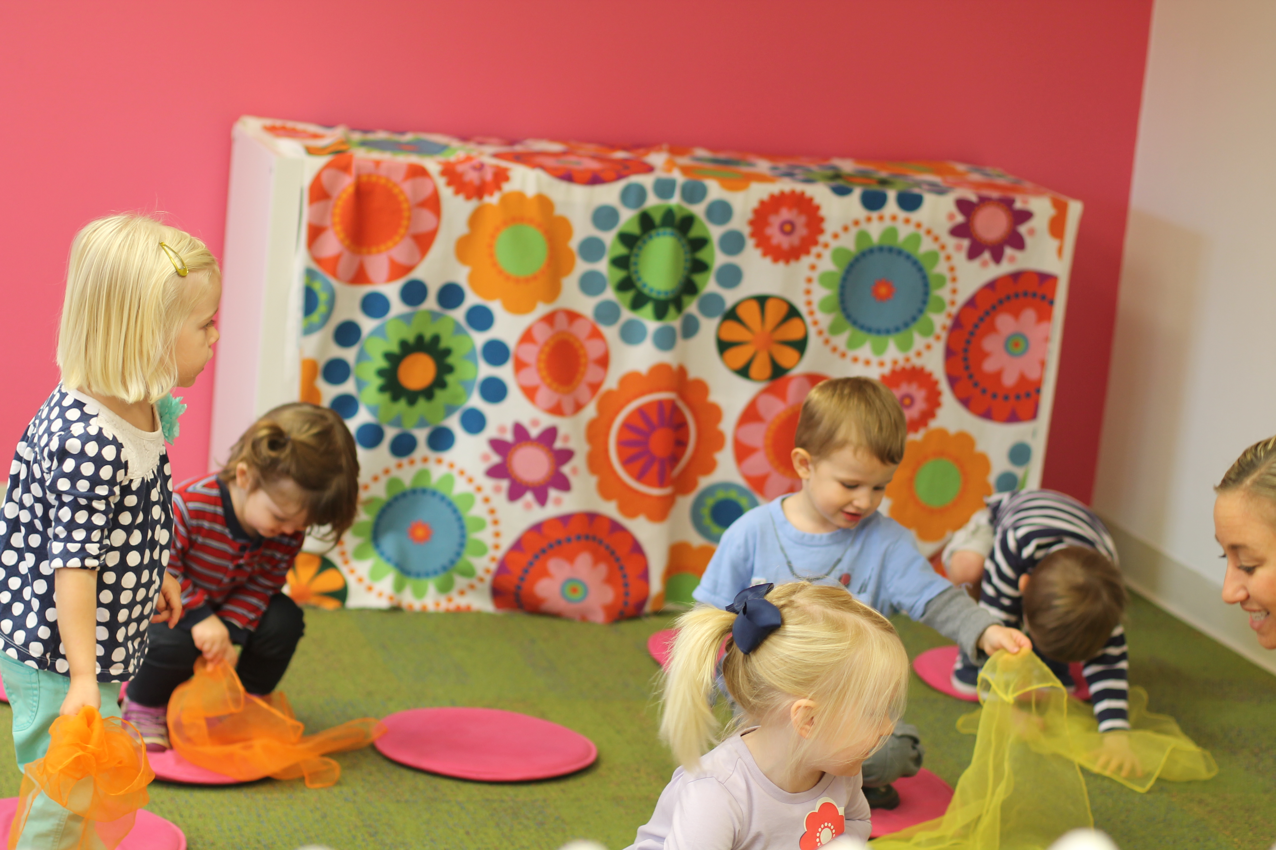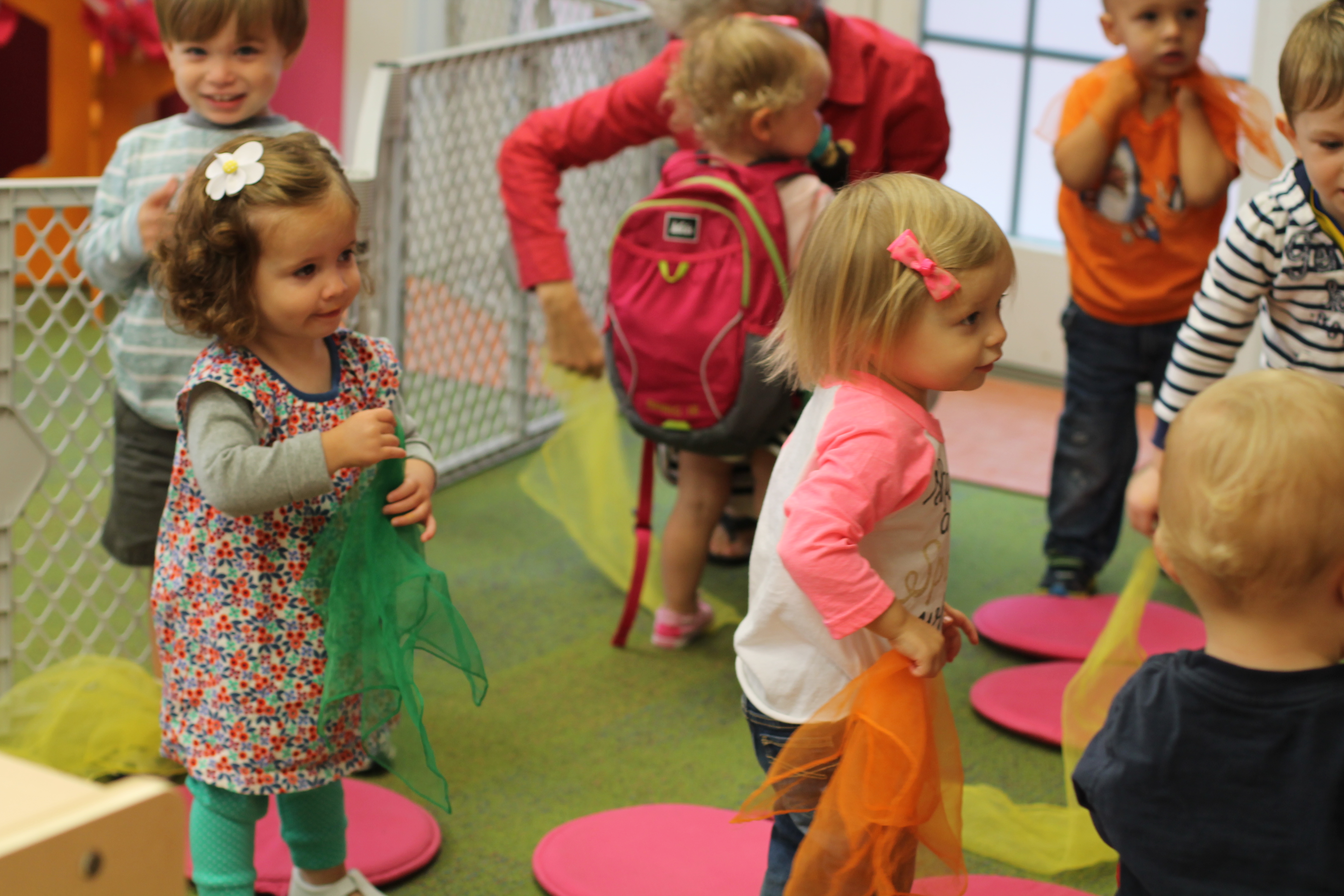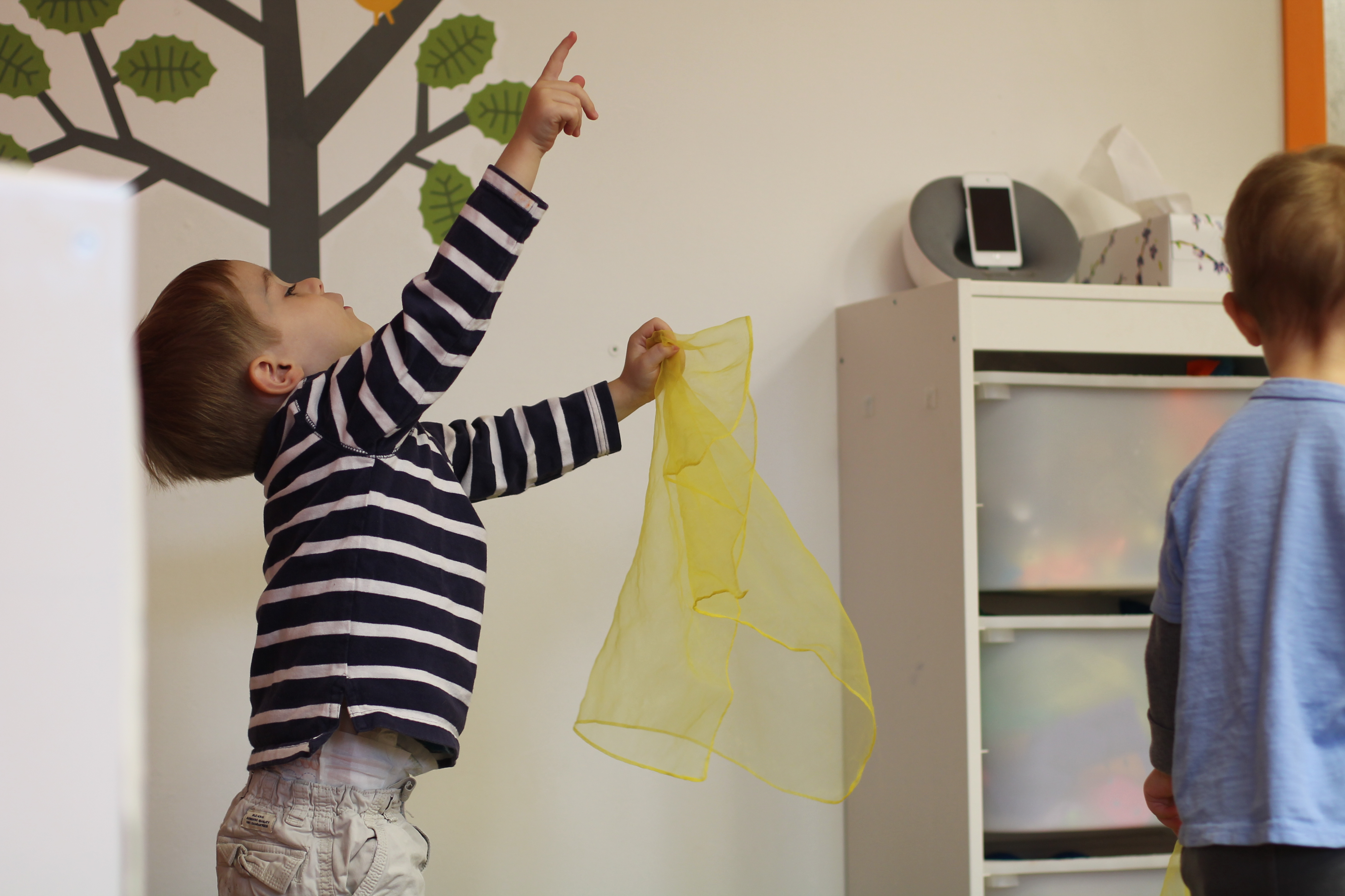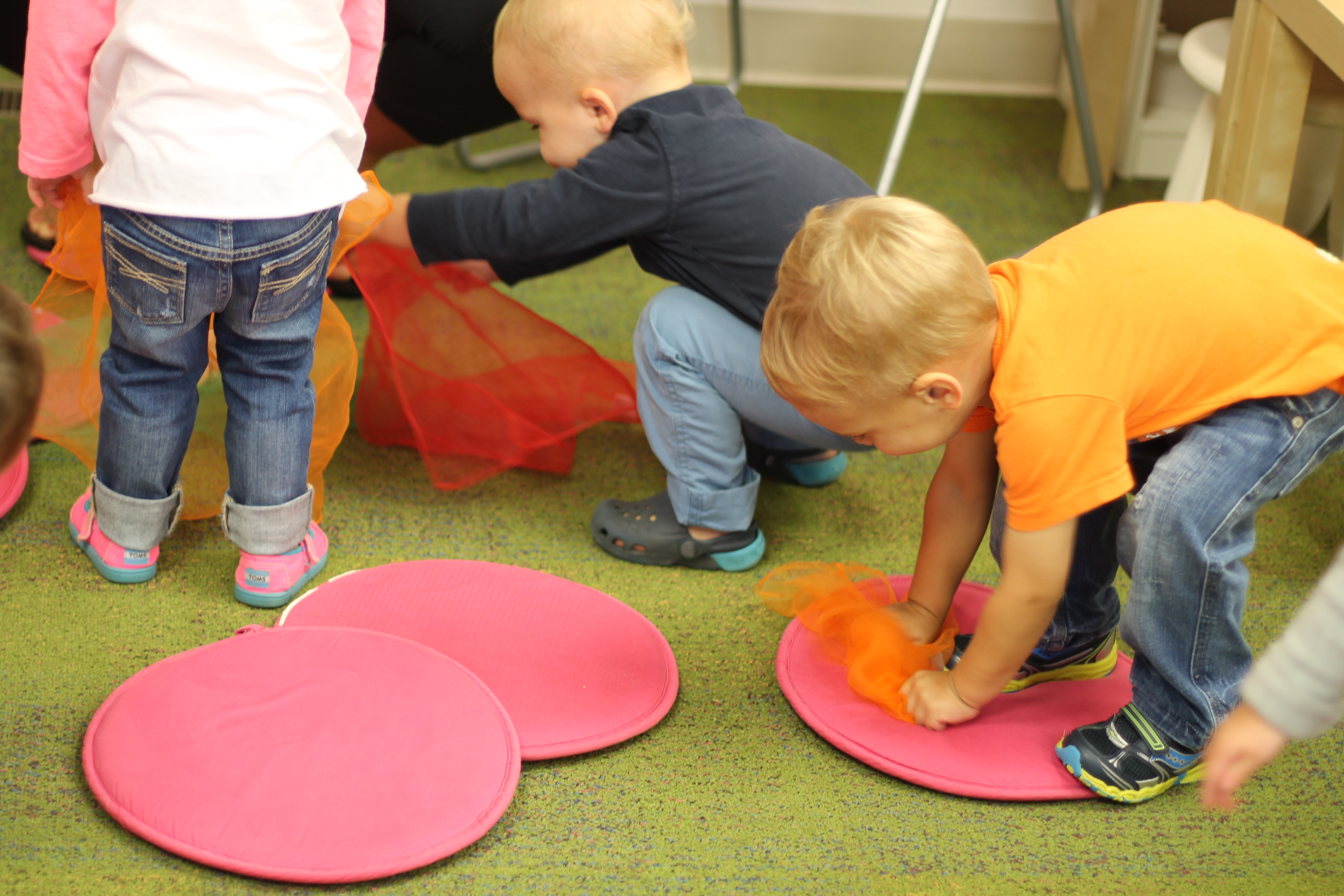 This month during group time we are talking about Up and Down! We used the scarves to practice making them go up and down and up and down. Moving and dancing with the scarves is lots of fun!