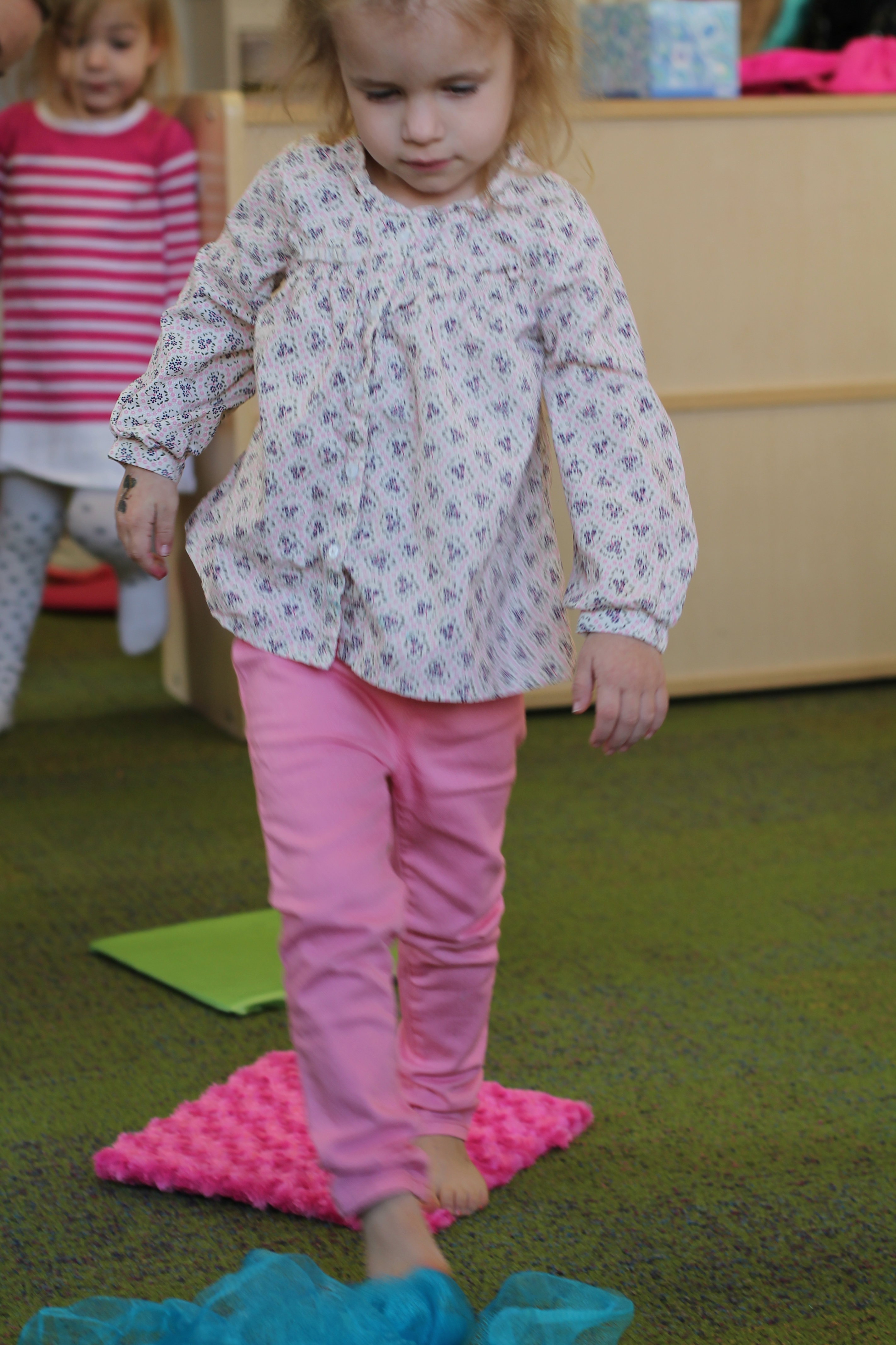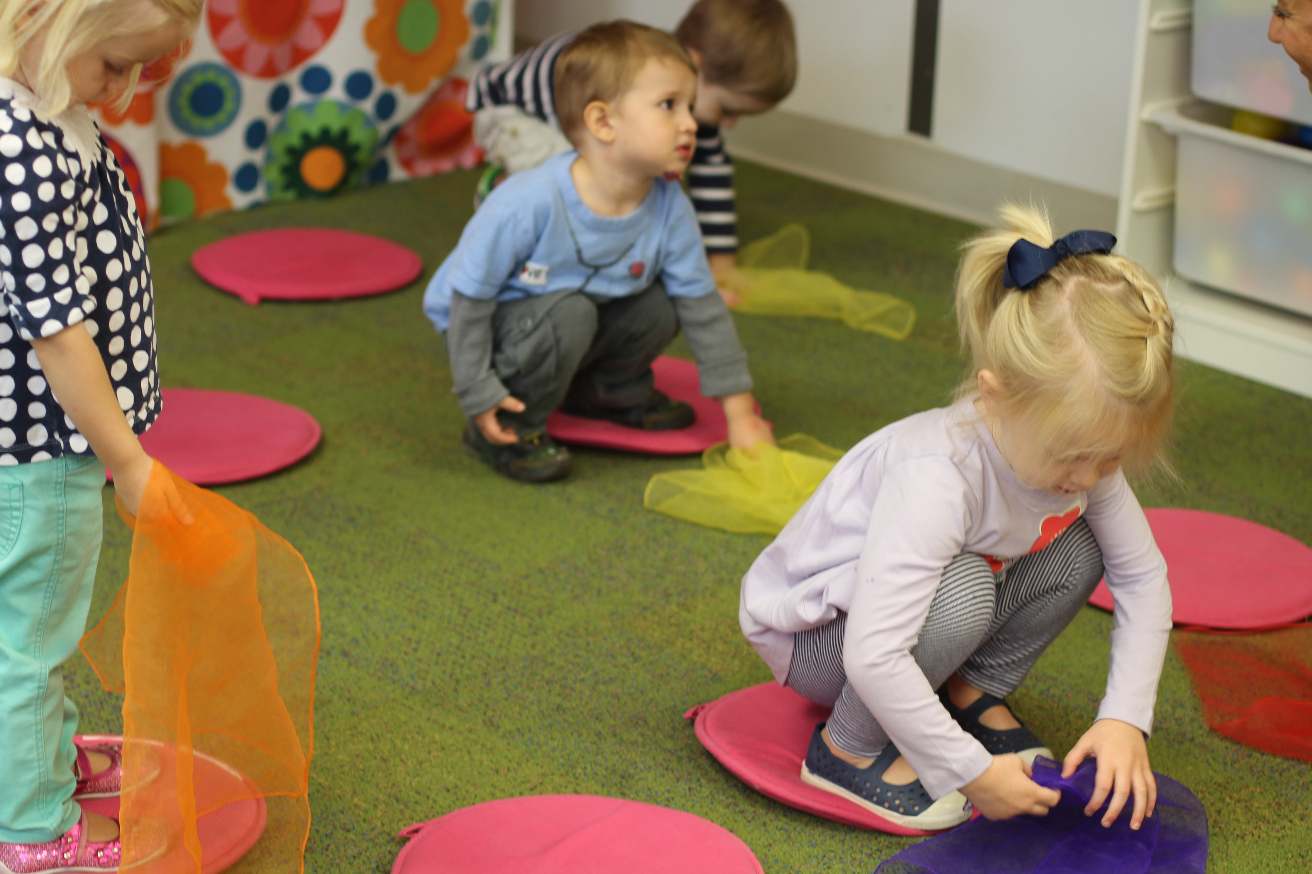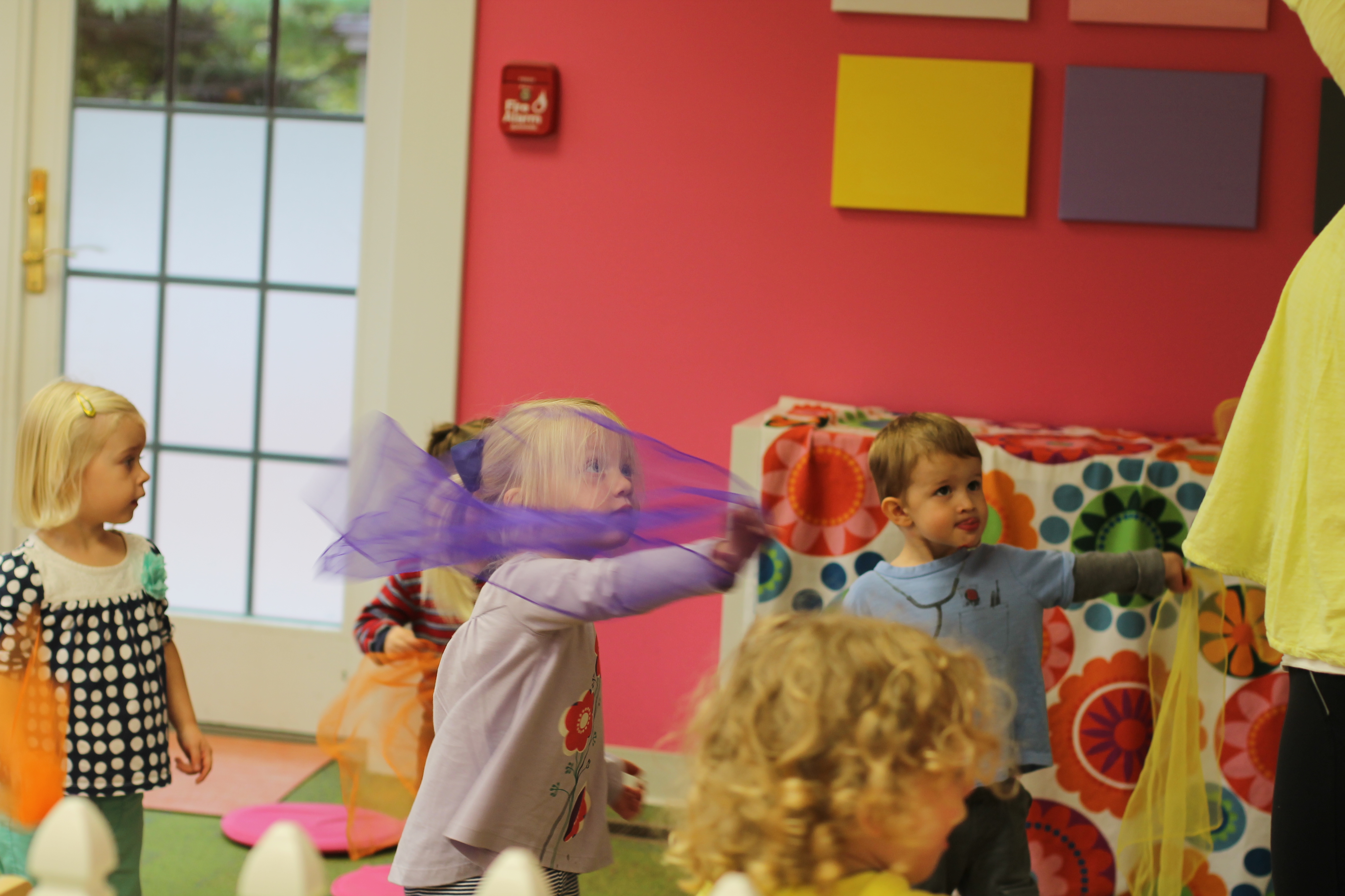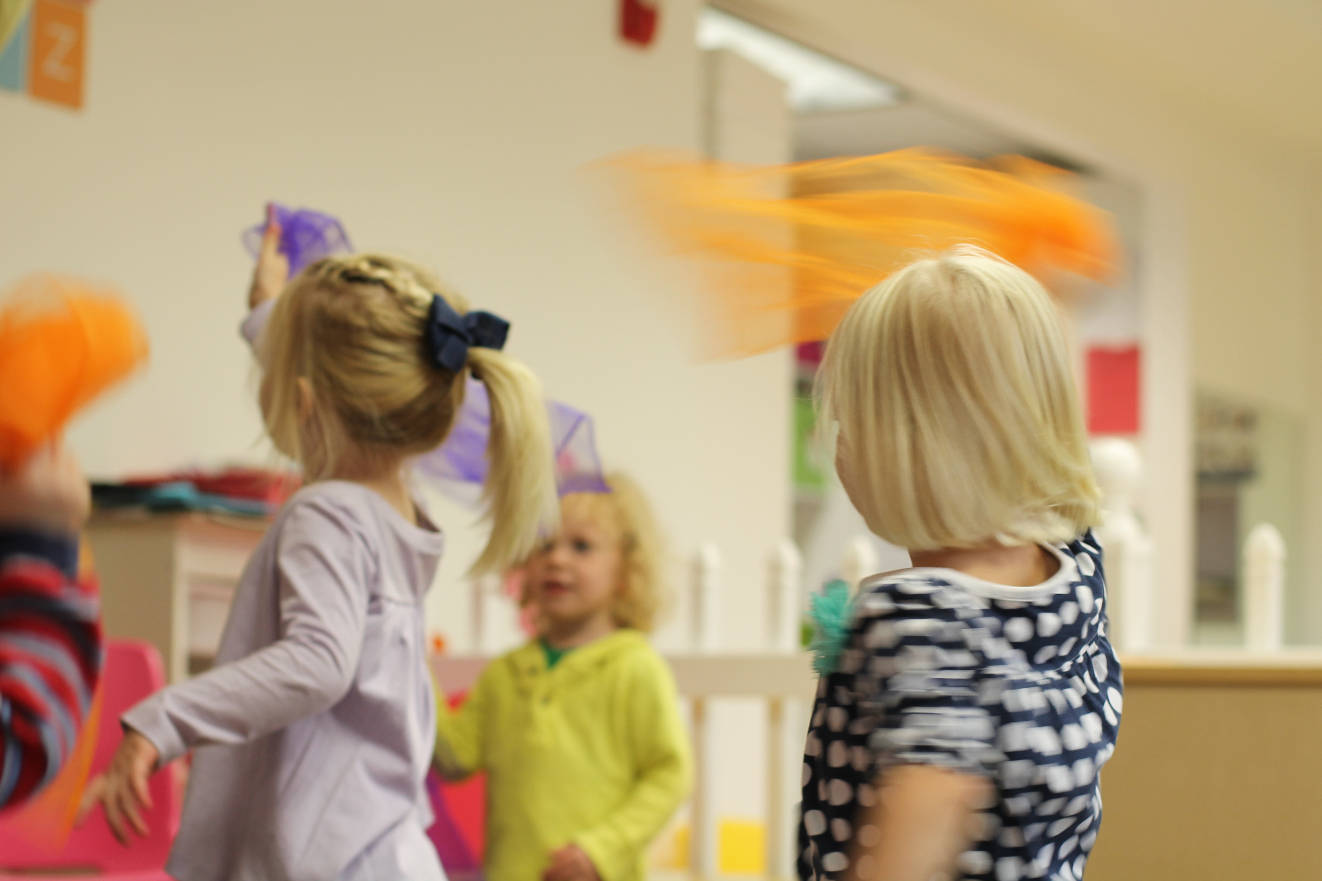 This month during group time we are talking about Up and Down! We used the scarves to practice making them go up and down and up and down. Moving and dancing with the scarves is lots of fun!