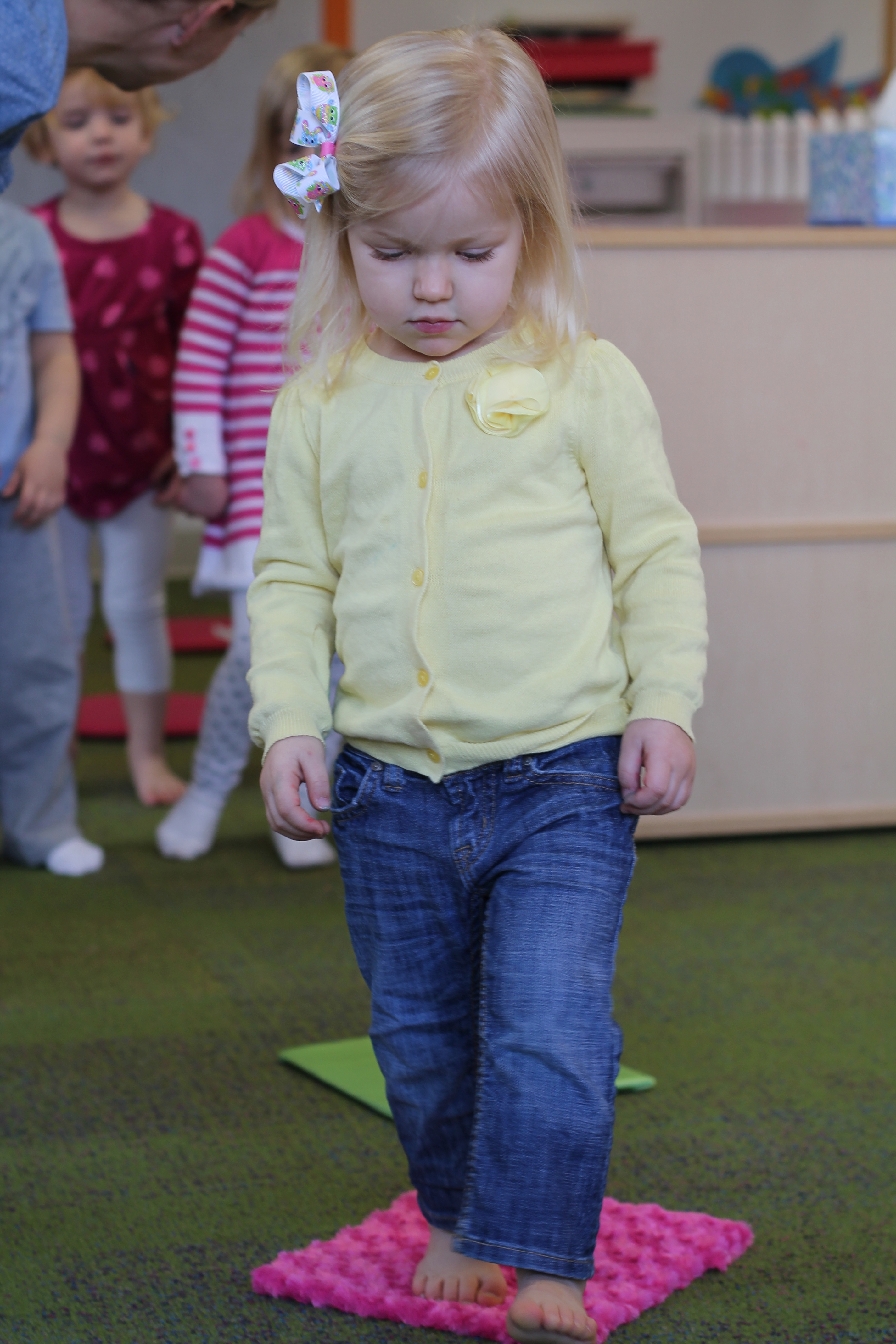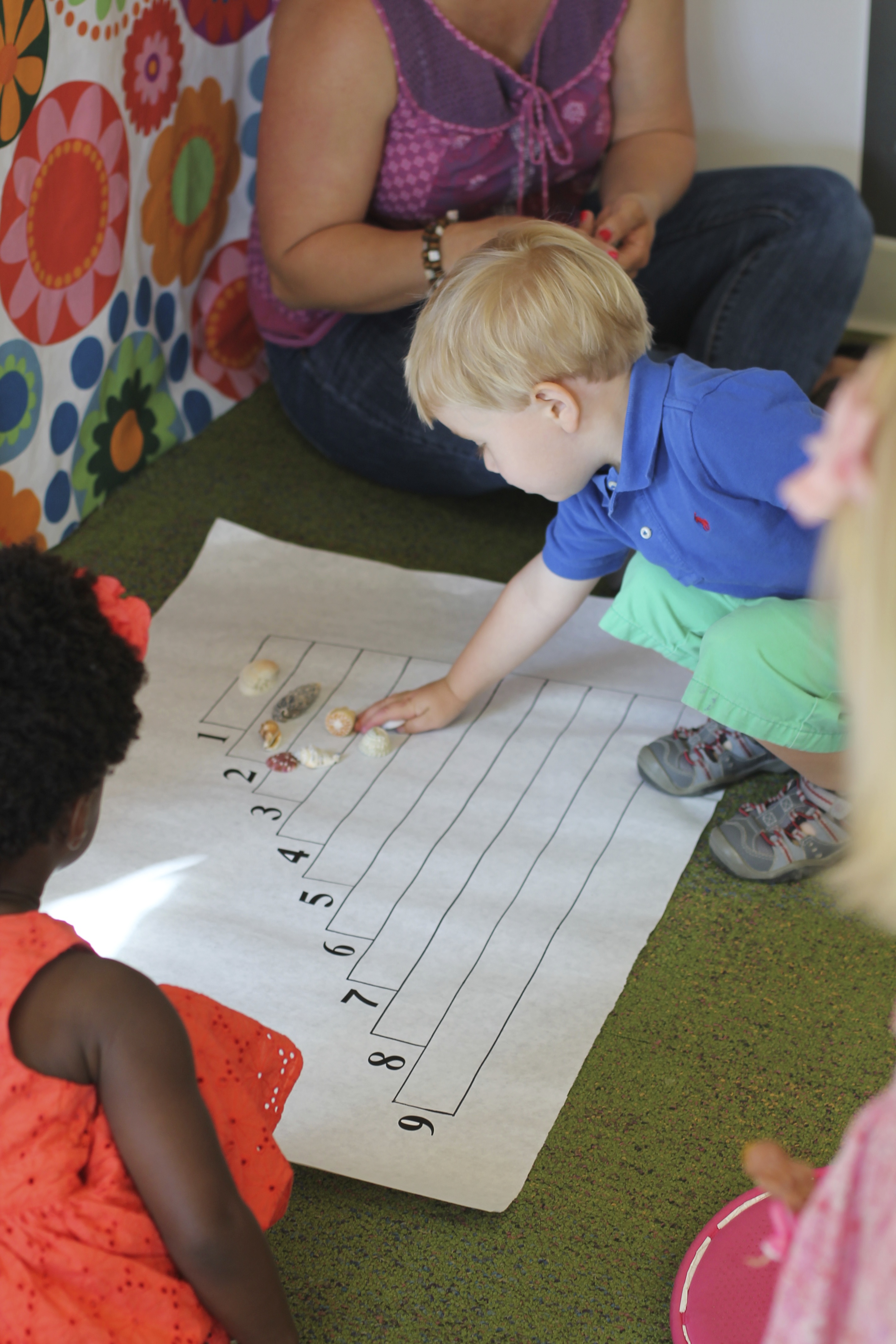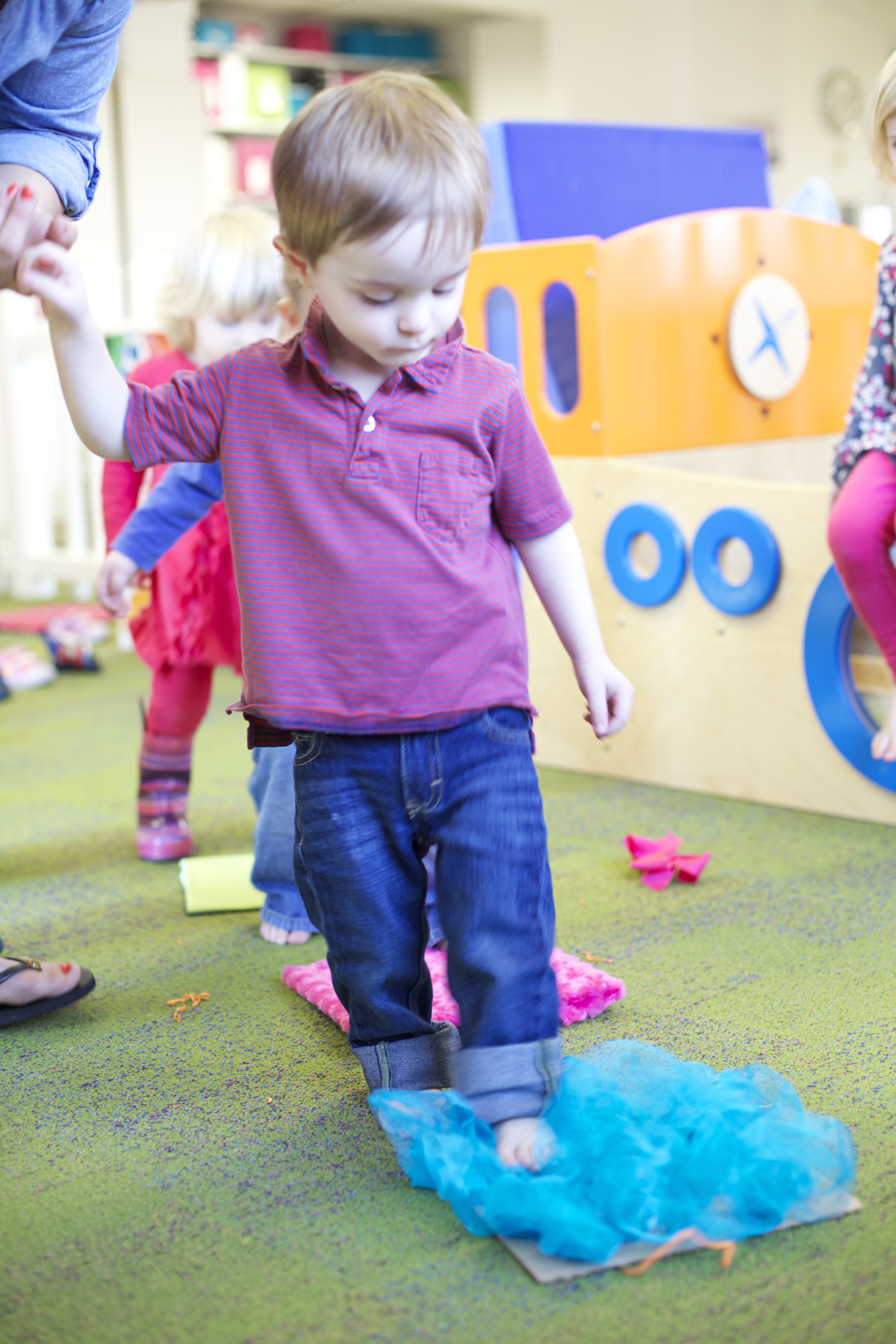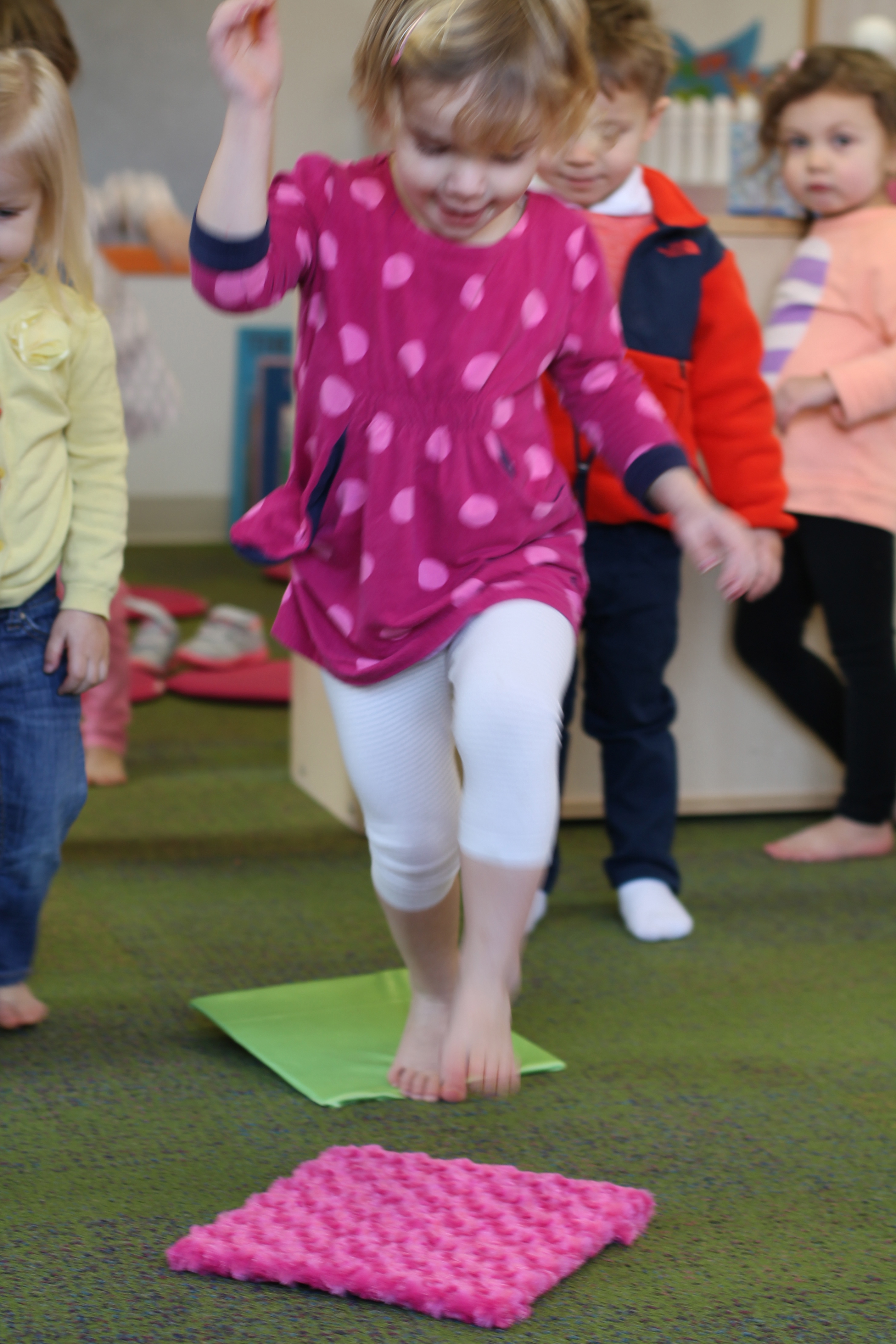 This month during group time we are talking about Up and Down! We used the scarves to practice making them go up and down and up and down. Moving and dancing with the scarves is lots of fun!