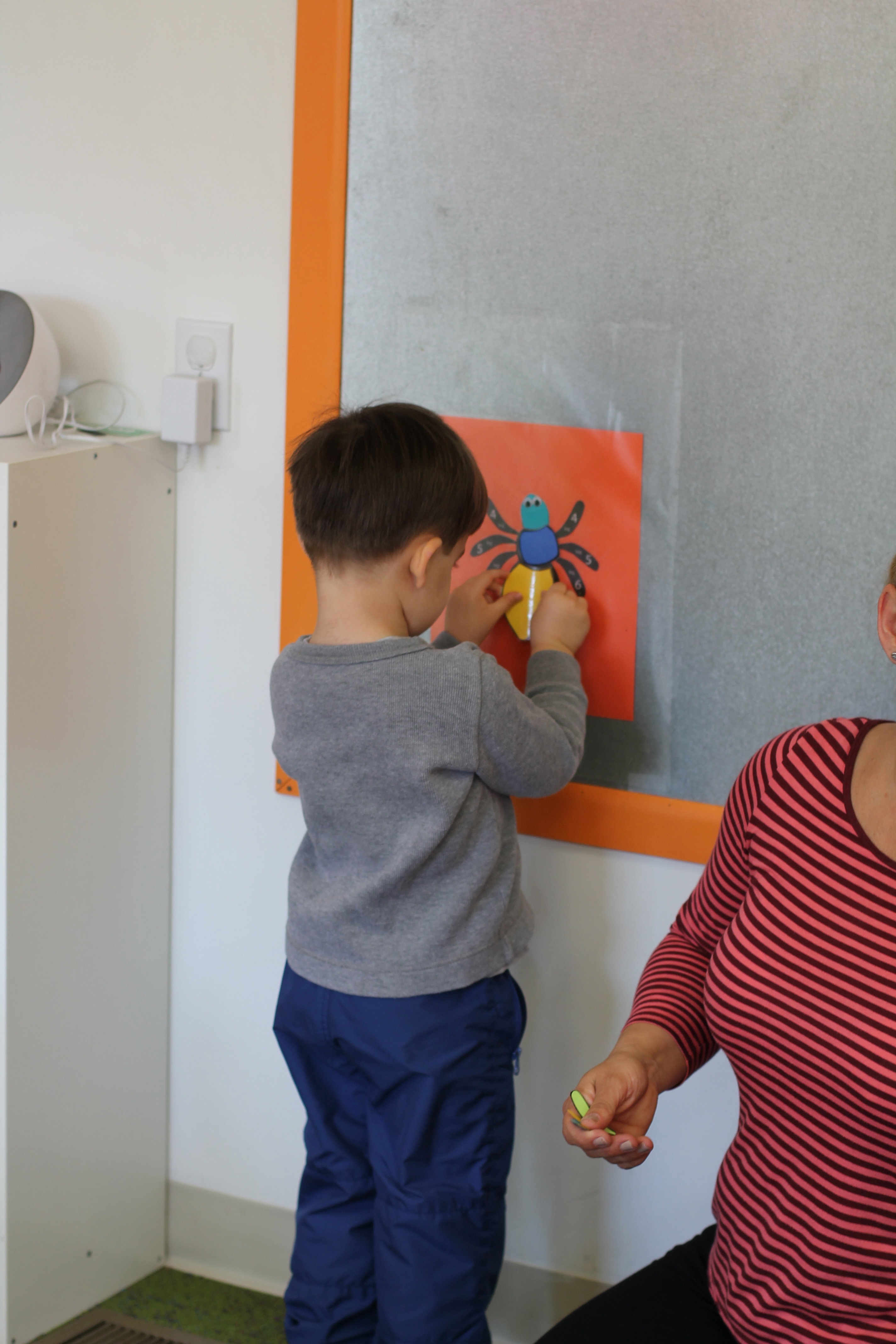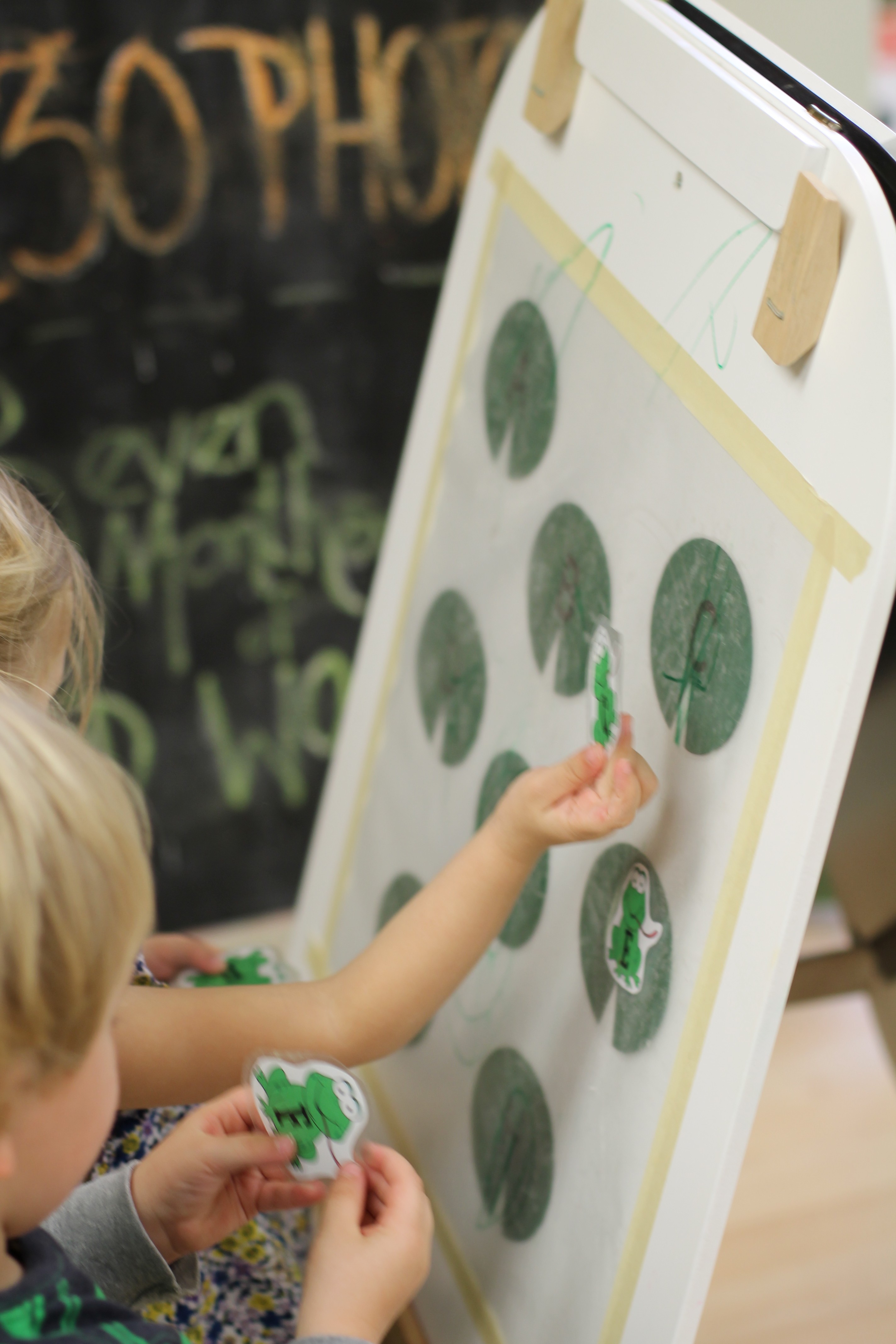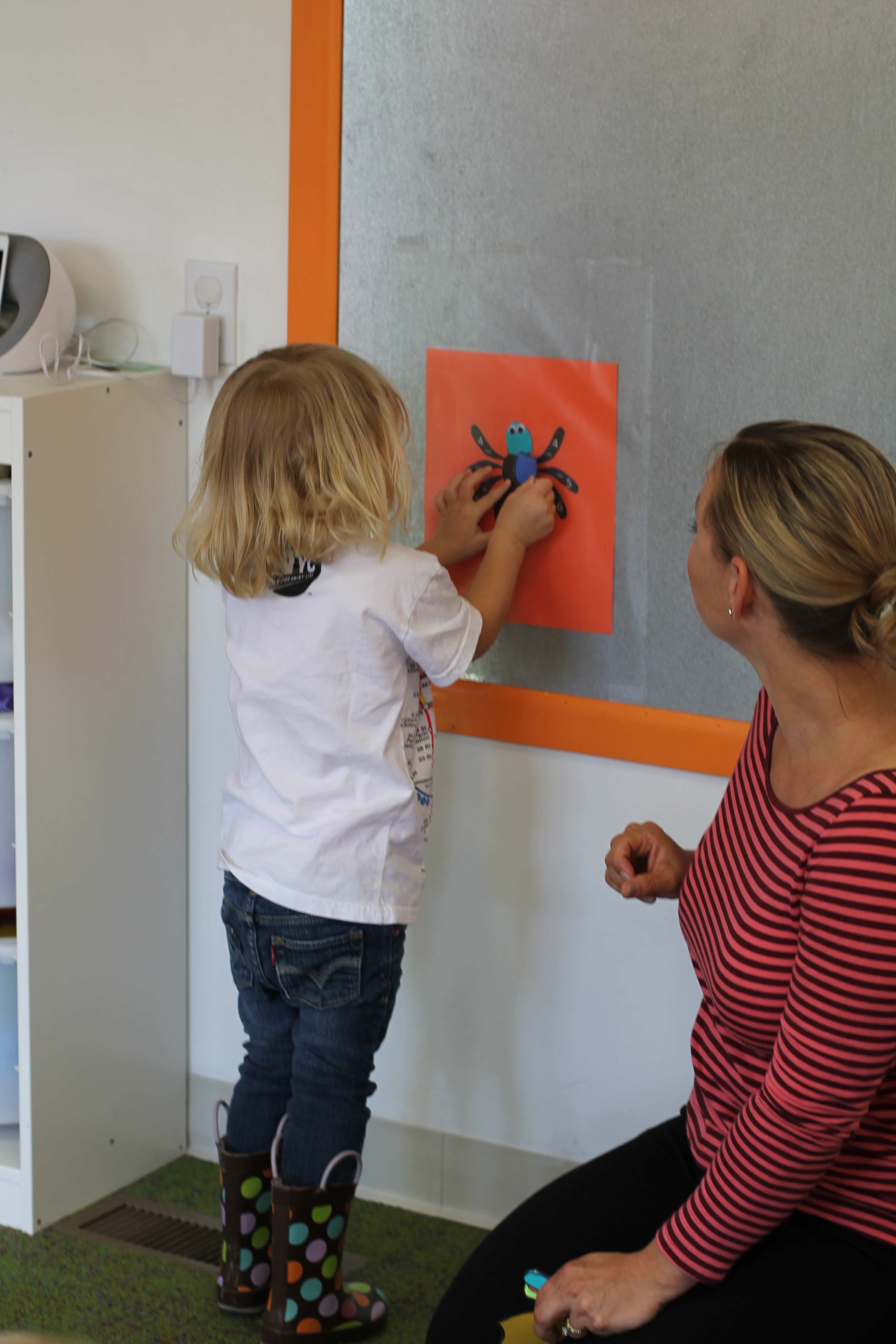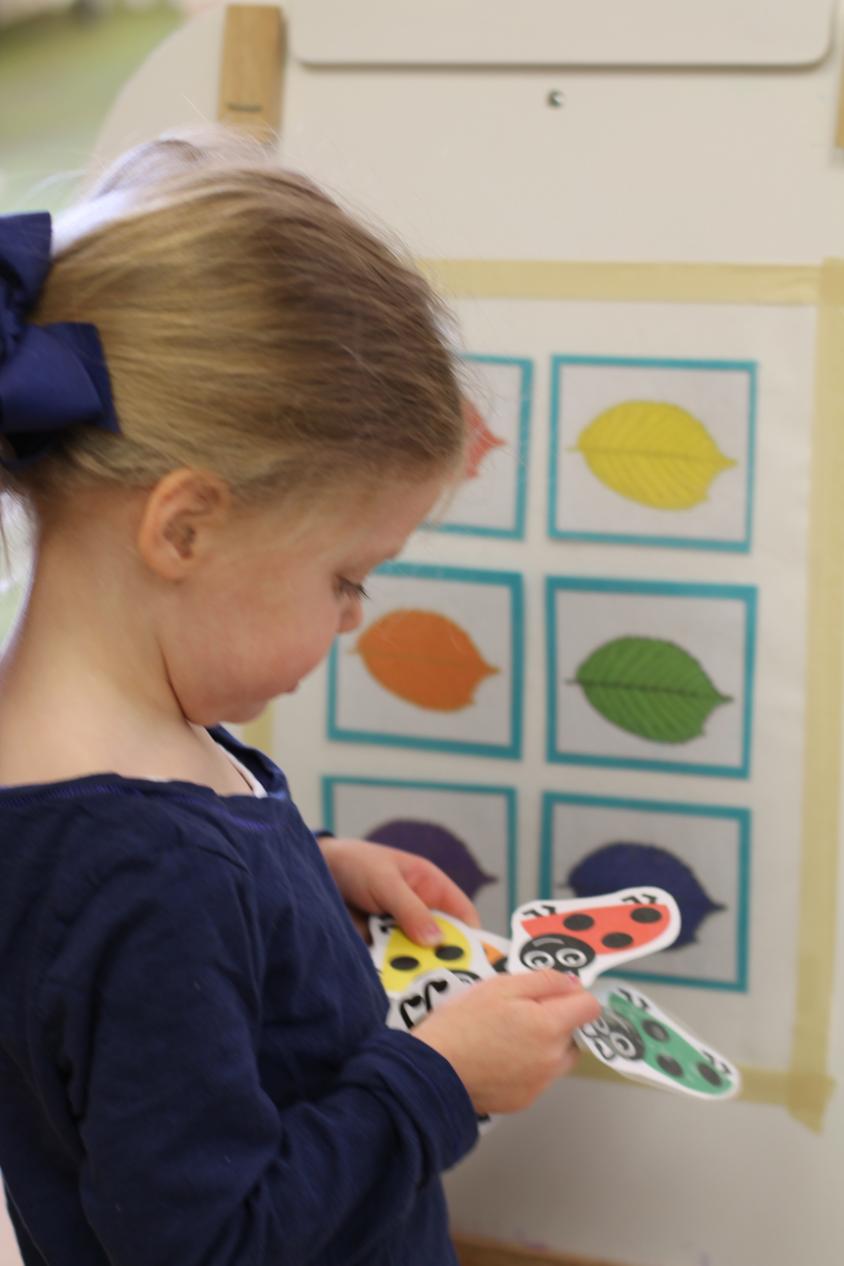 On our easel, we practiced matching colors of ladybugs to leaves.