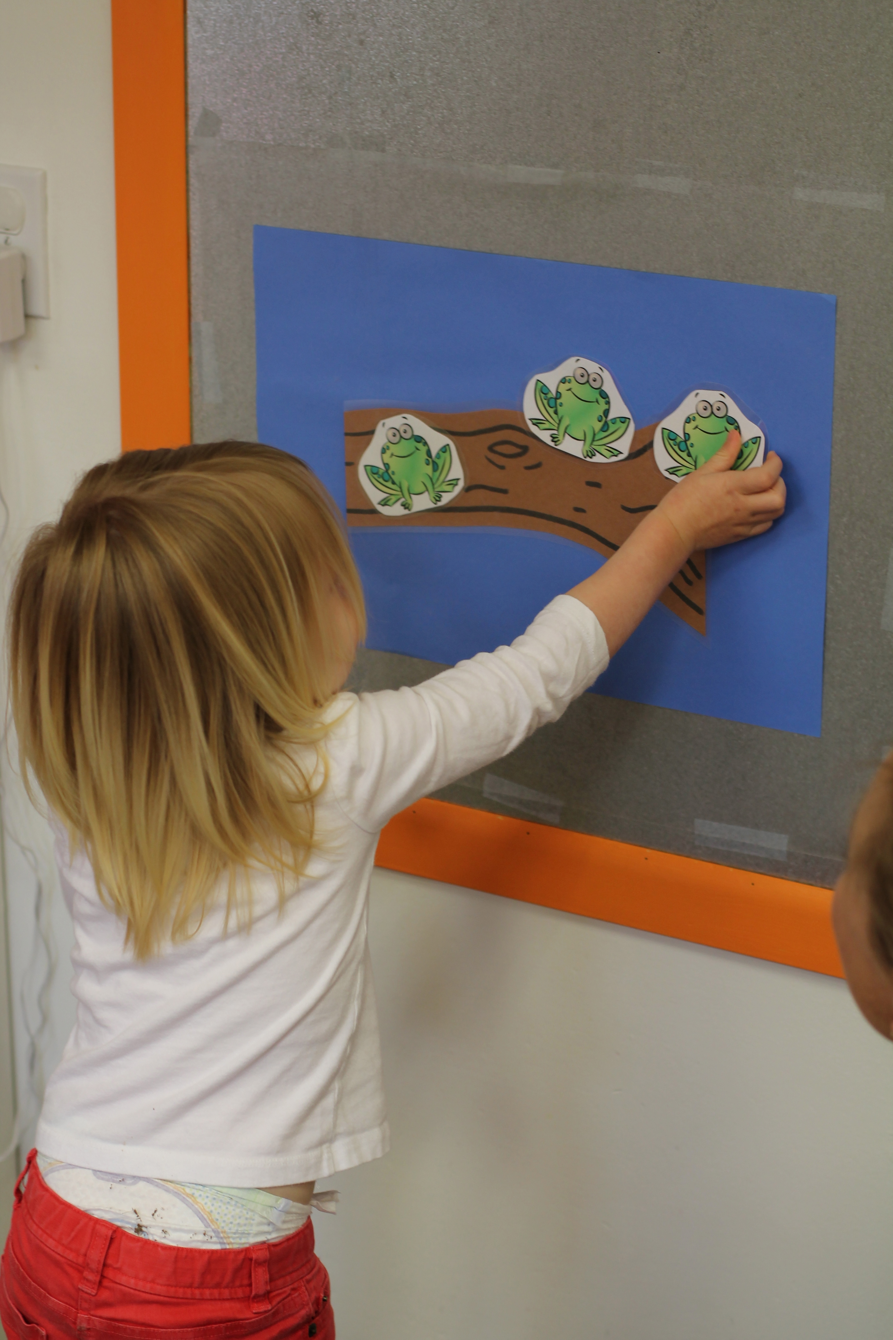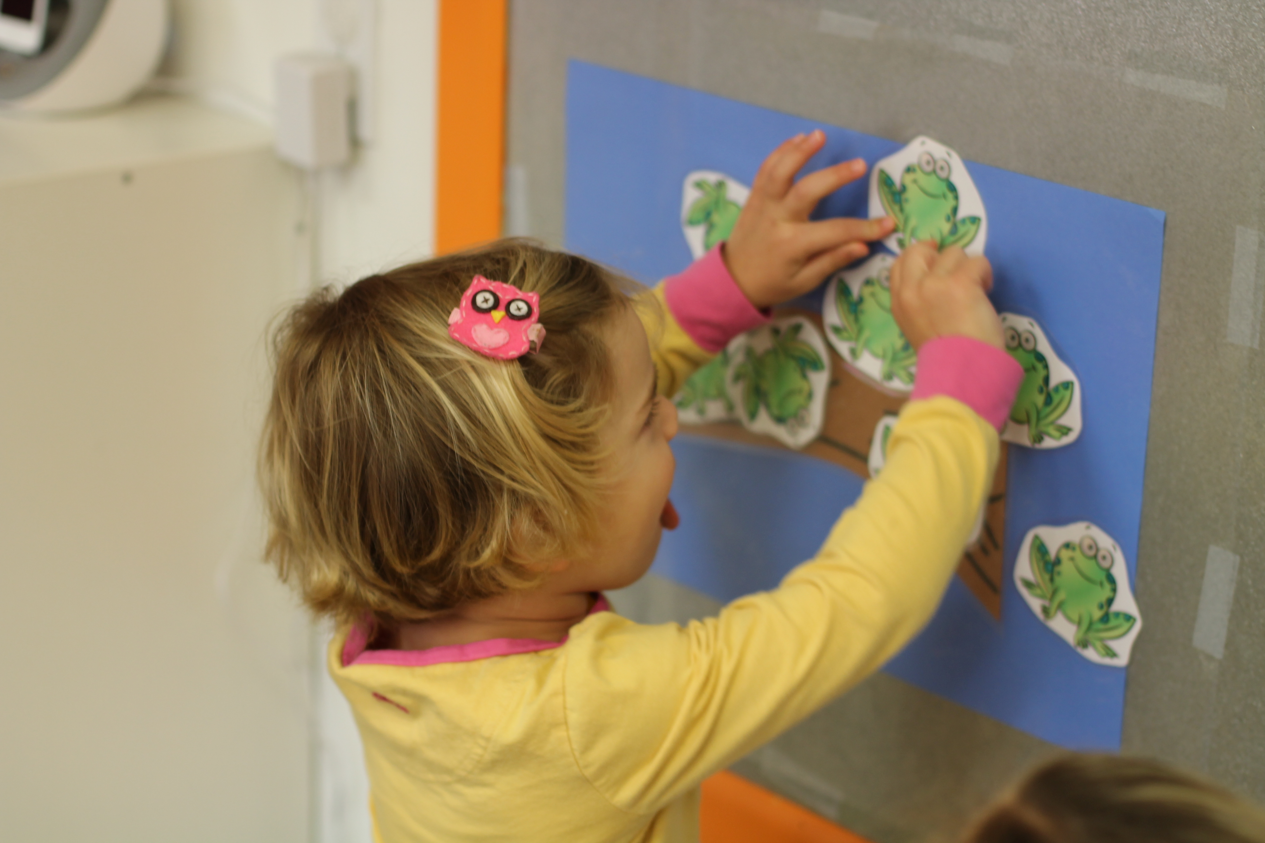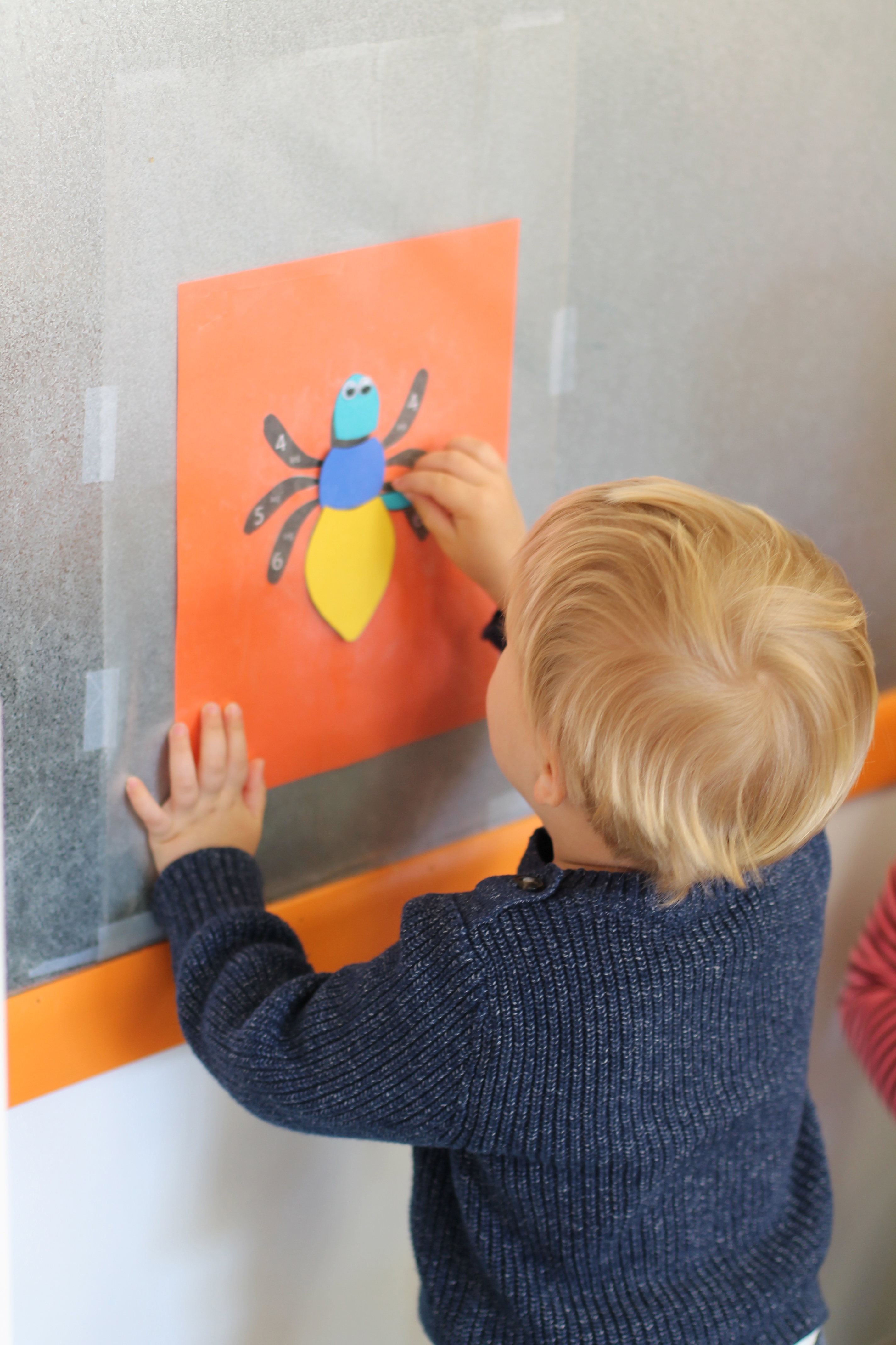 On our easel, we practiced matching colors of ladybugs to leaves.