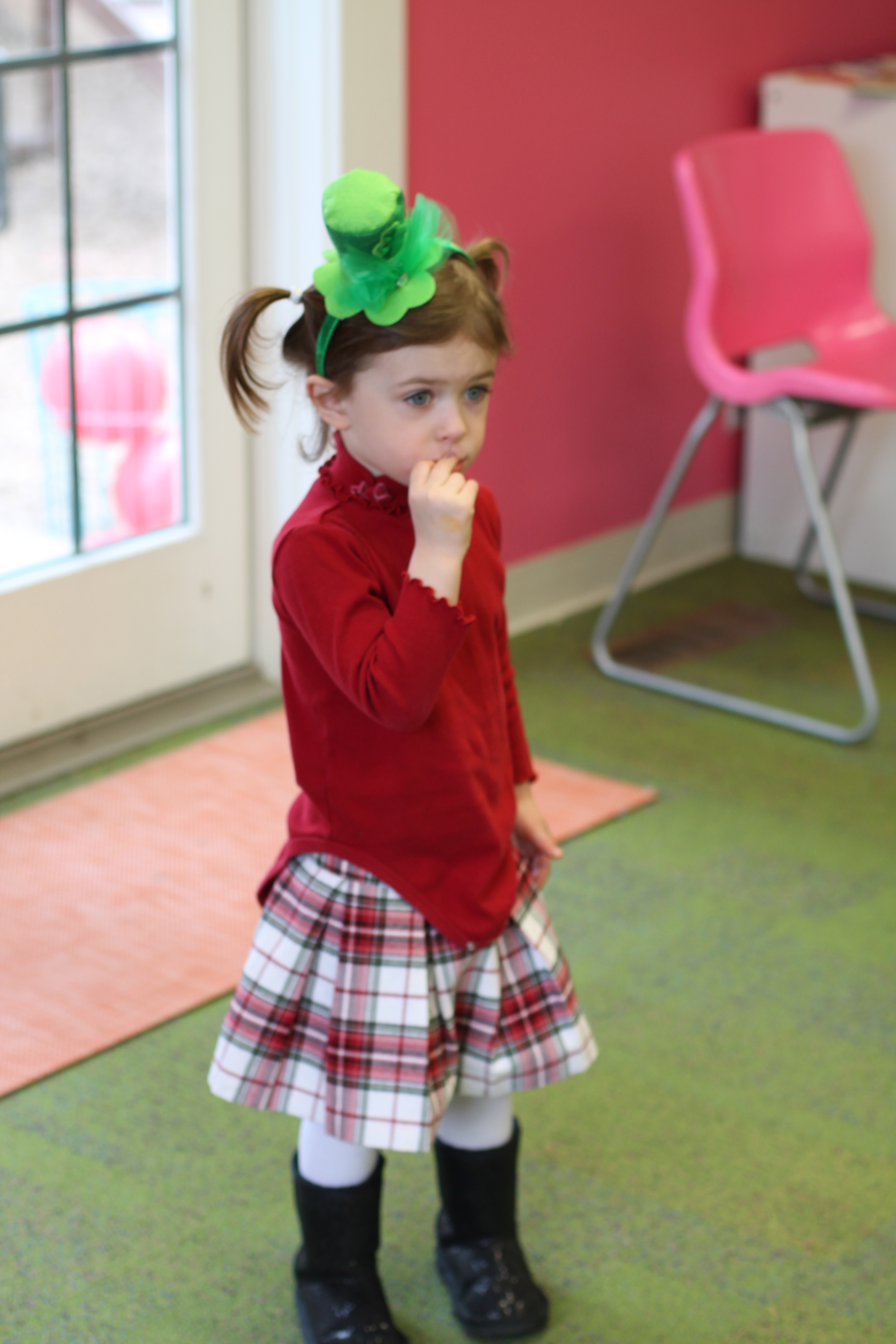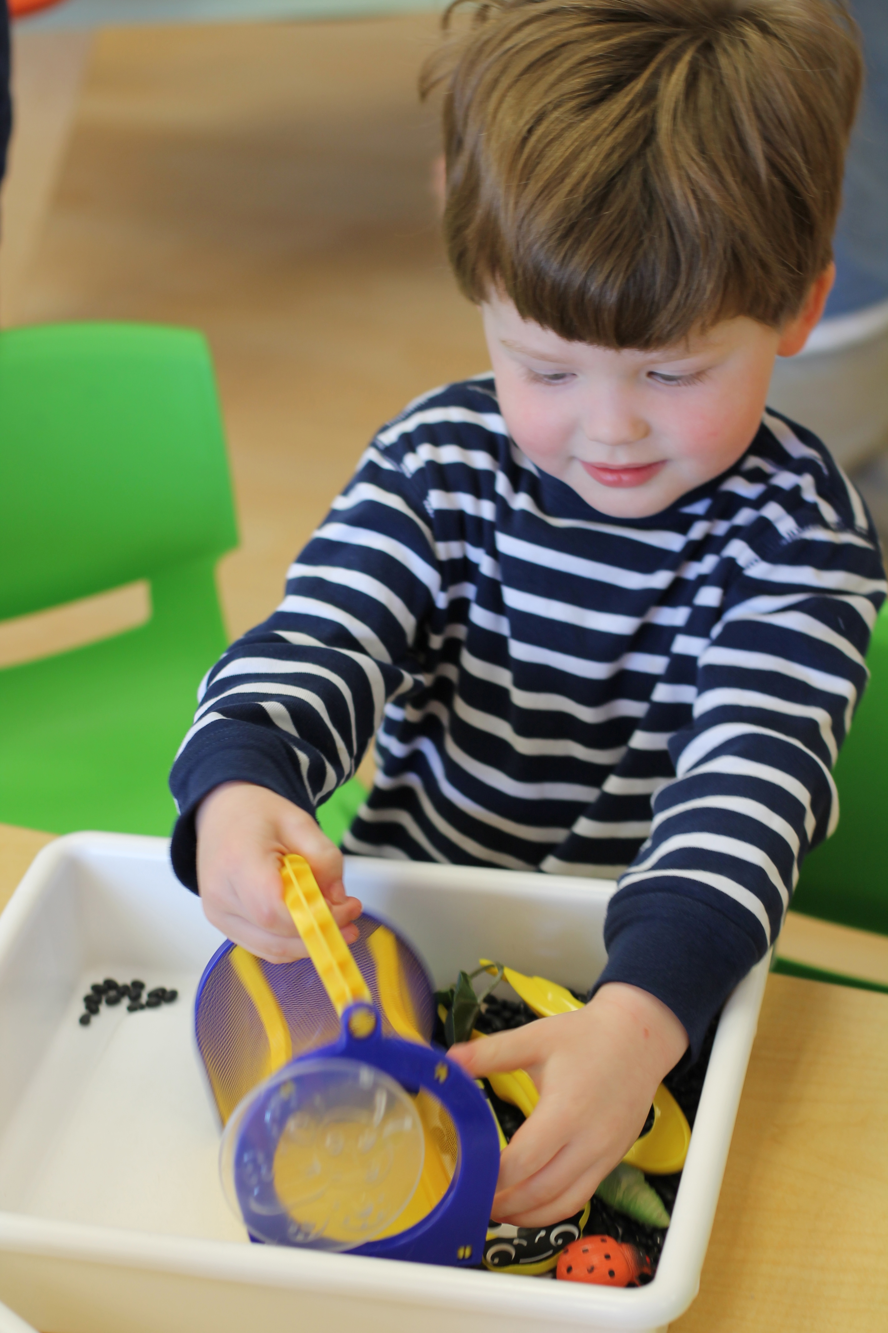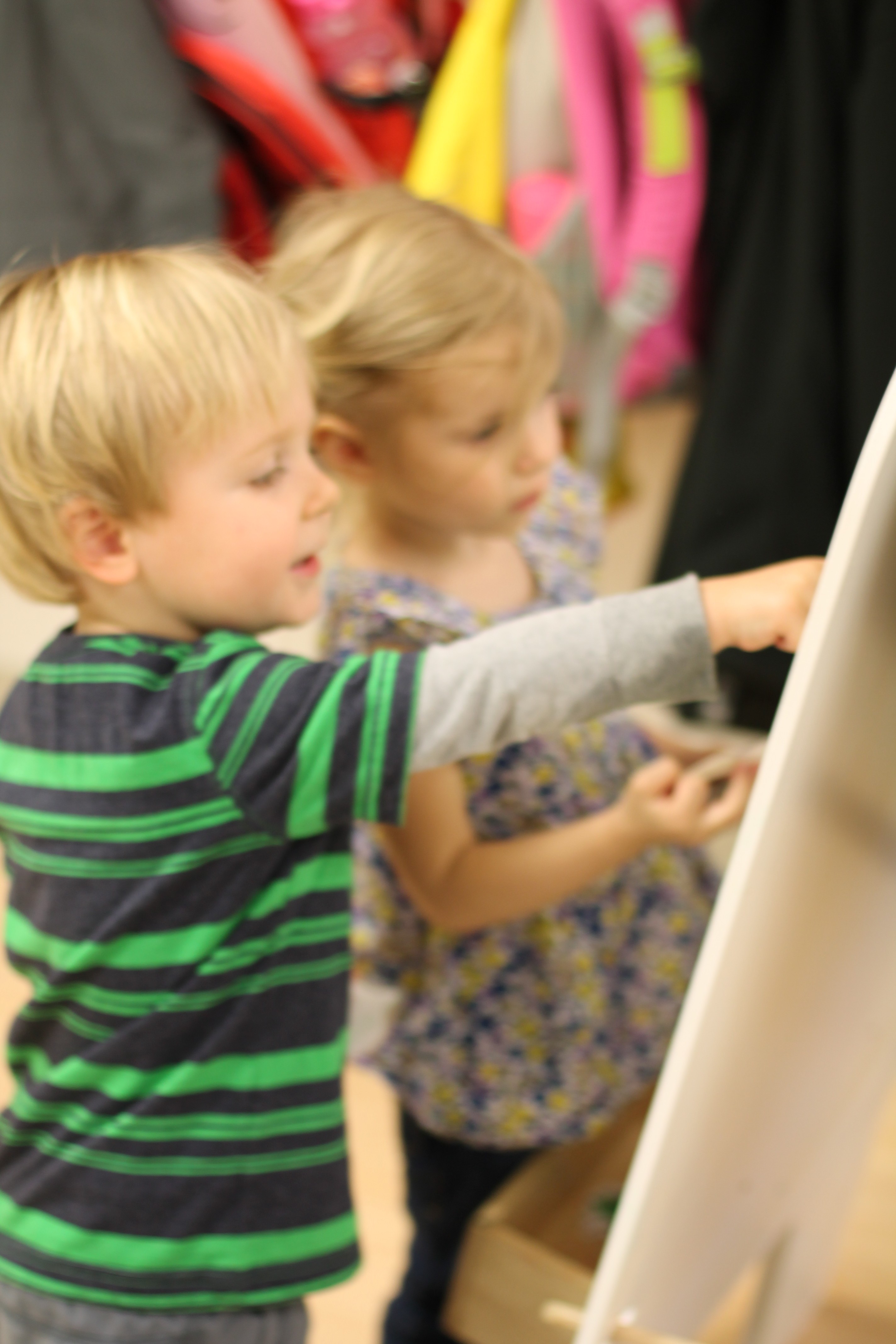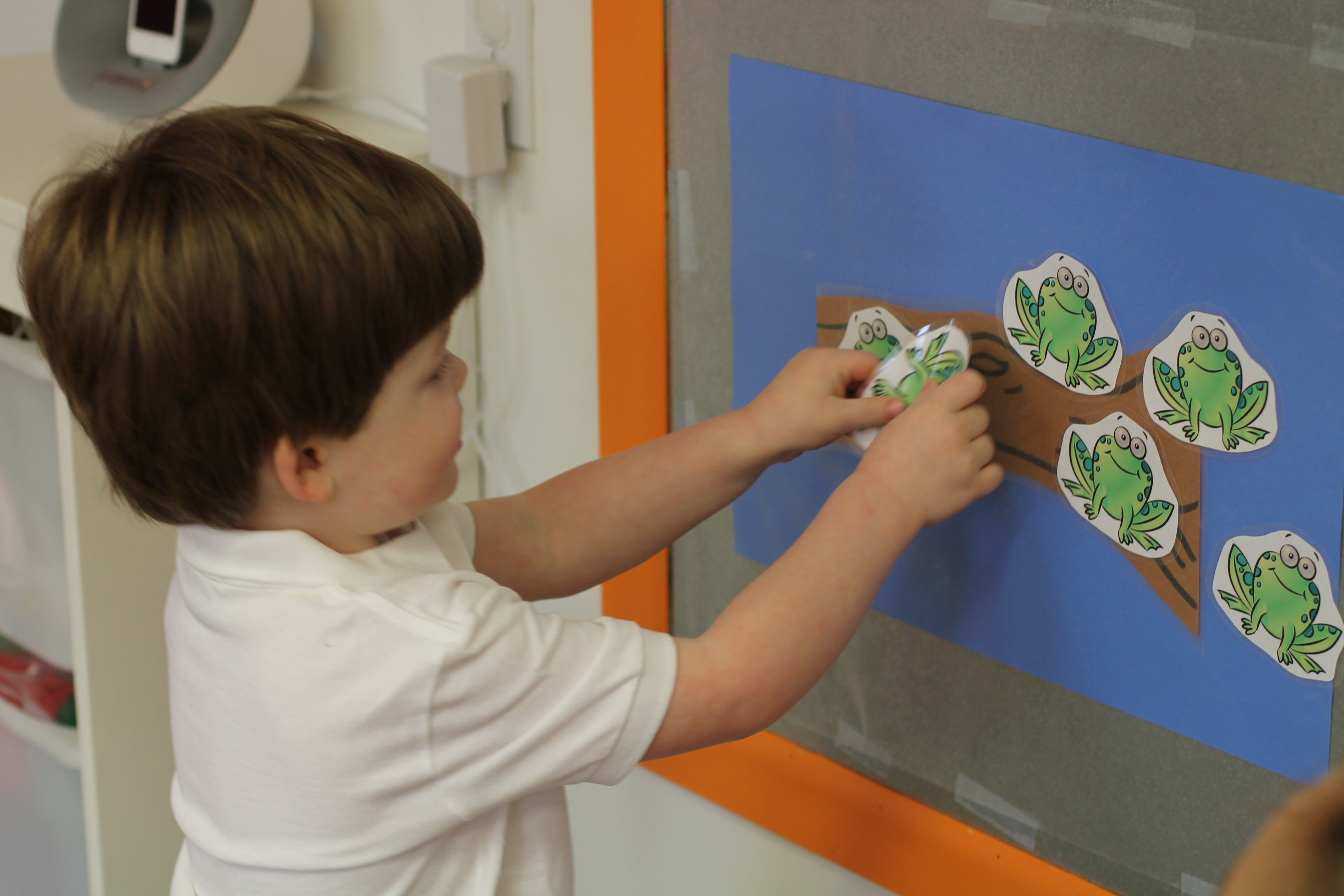 On our easel, we practiced matching colors of ladybugs to leaves.
