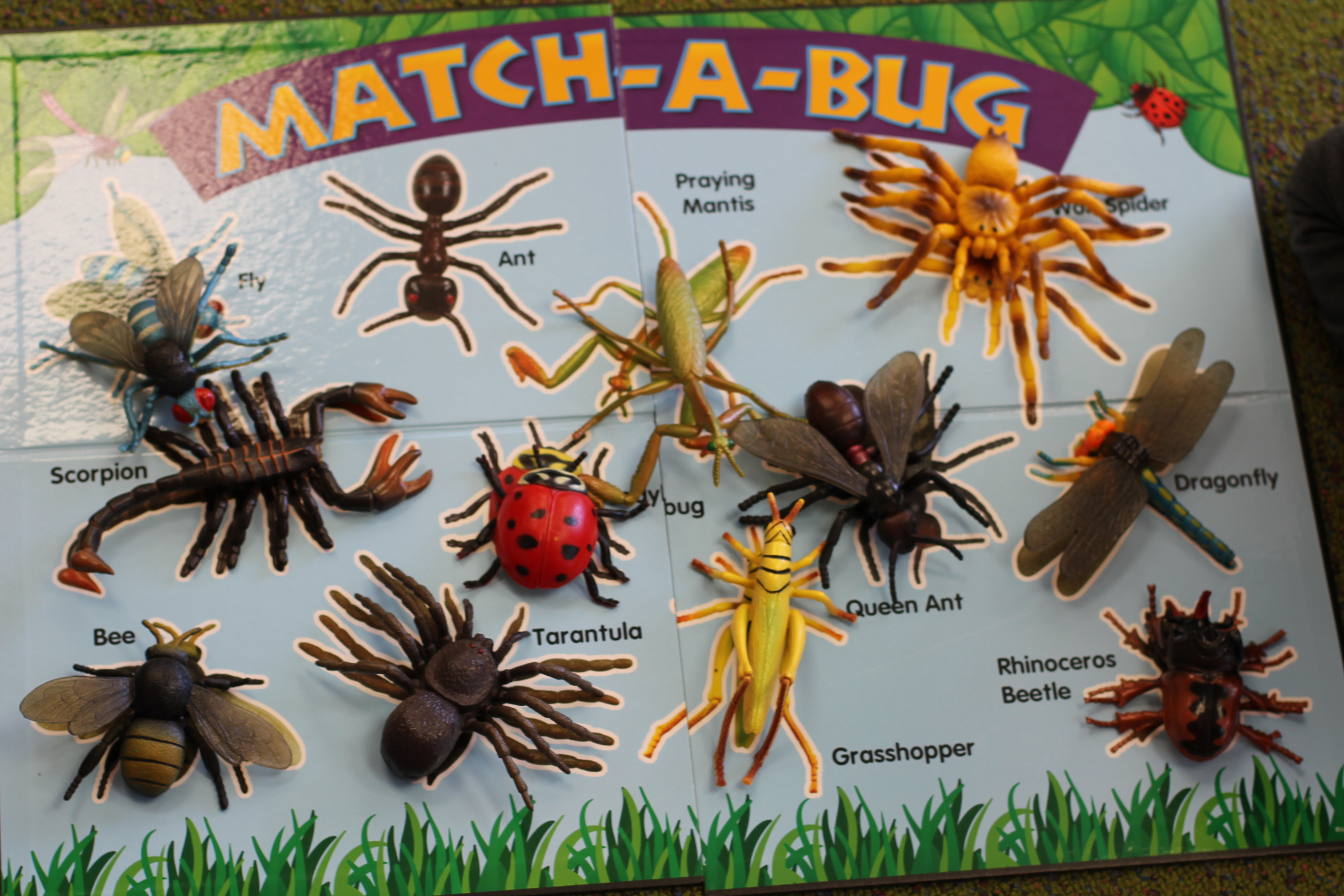 During small groups, we matched plastic bugs to their picture.