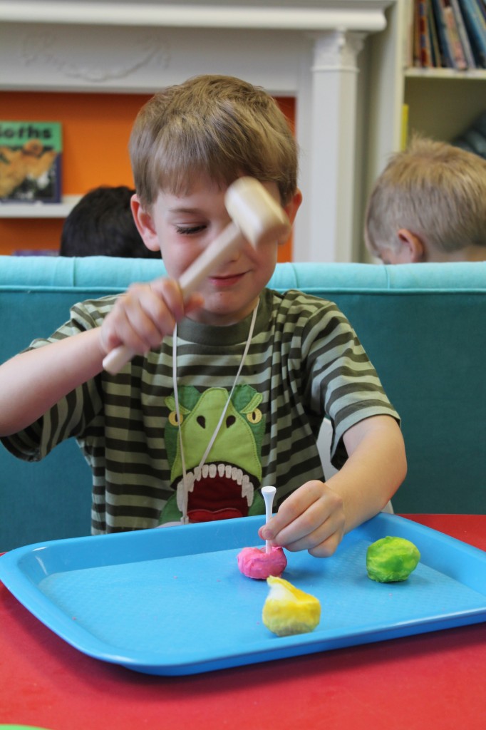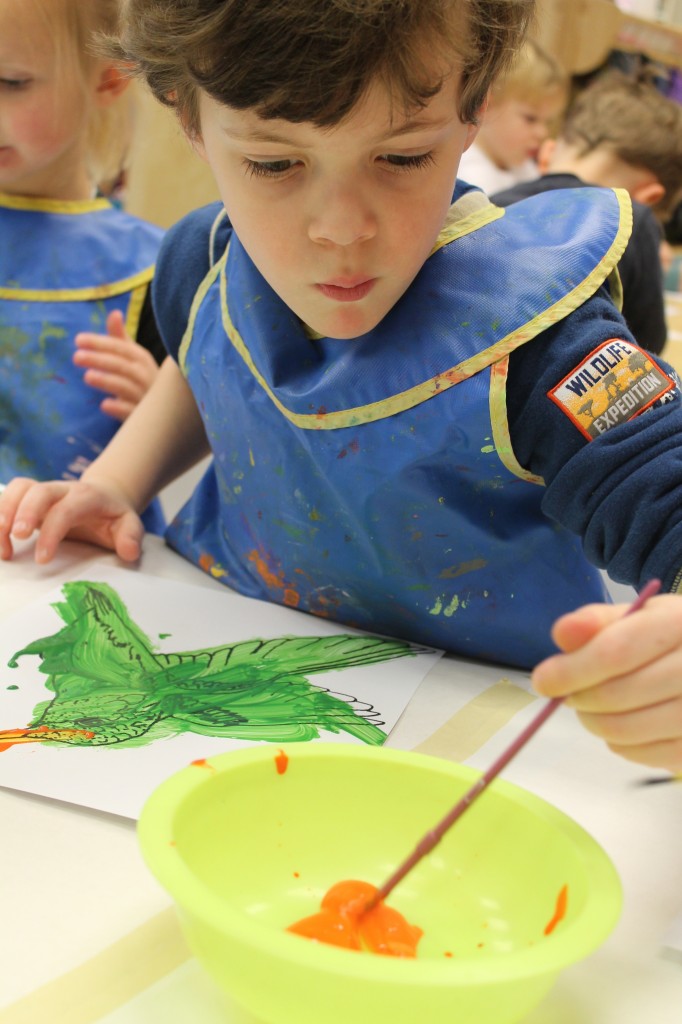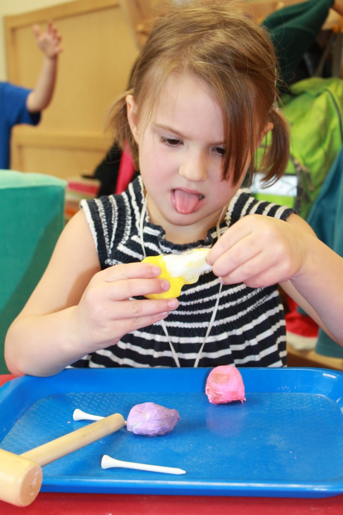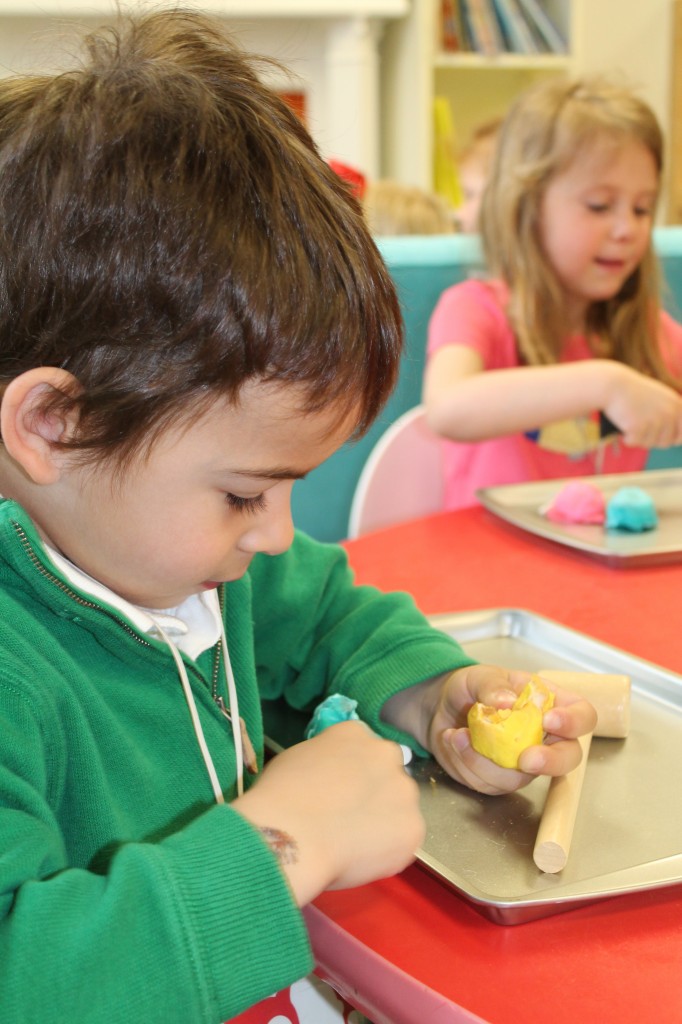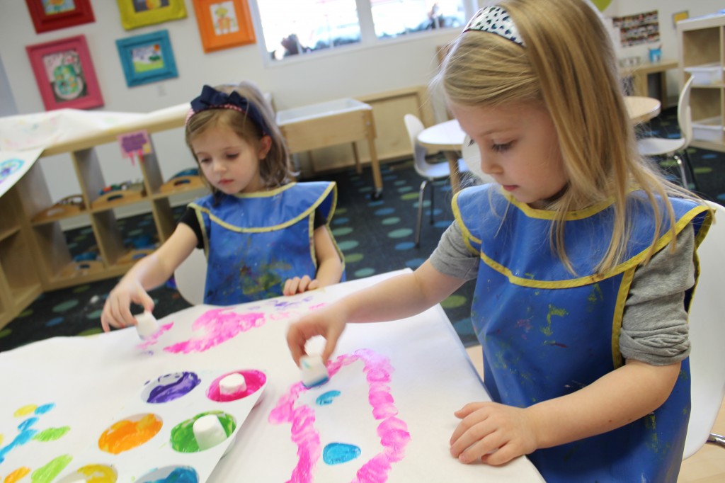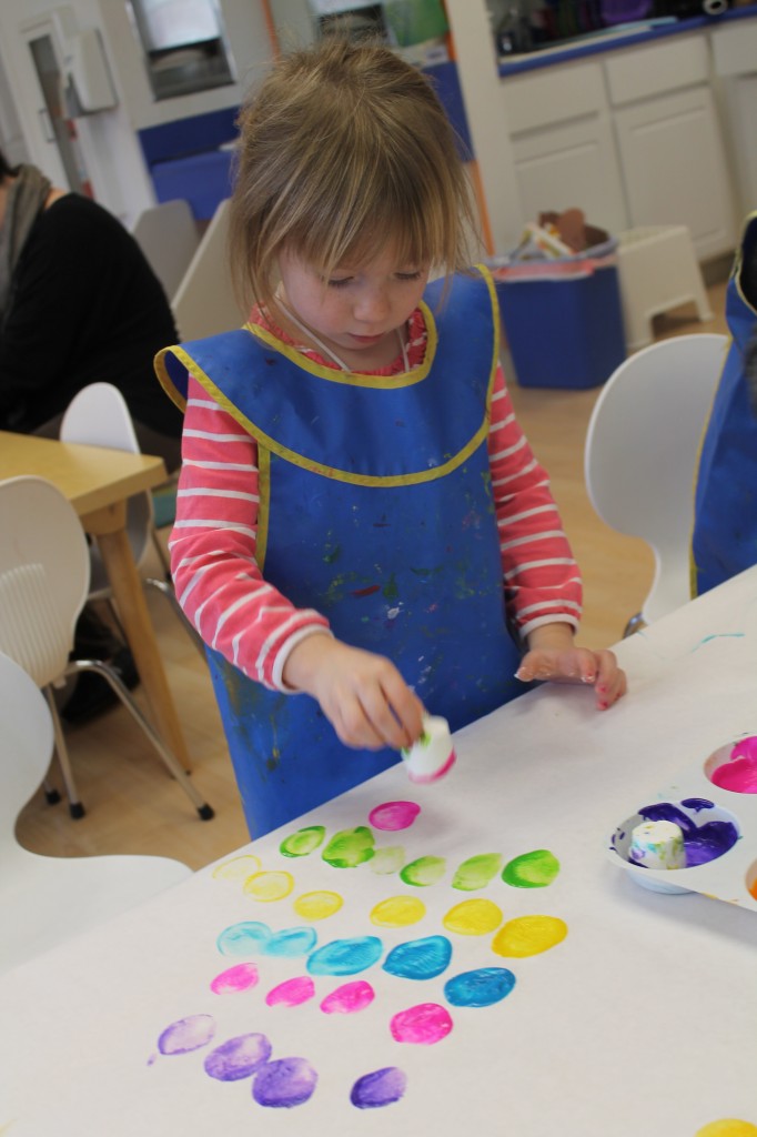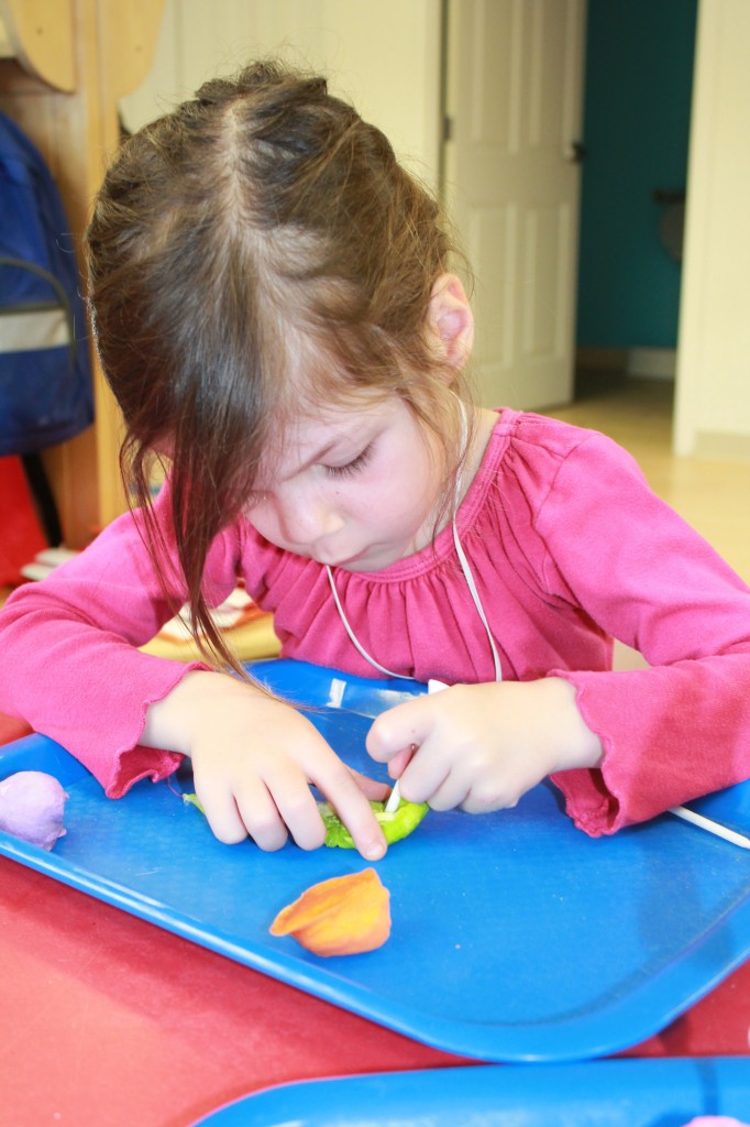 Ms. Cally played “Listen & Color” and helped the preschoolers practice their listening skills. This is great prep for following directions and understanding classroom dynamic. So much of traditional schooling is based on auditory learning. Preschoolers need to practice being able to listen not only to directions, but for directions as well. We structure our classroom to give cues to call attention such as flashing the lights or clapping our hands. This helps create awareness for what is happening around us in the classroom. Ms. Cally instructed the preschoolers to ‘color the star orange’ or ‘find the spoon and color it purple’. This is a great activity to do at home with your little one!