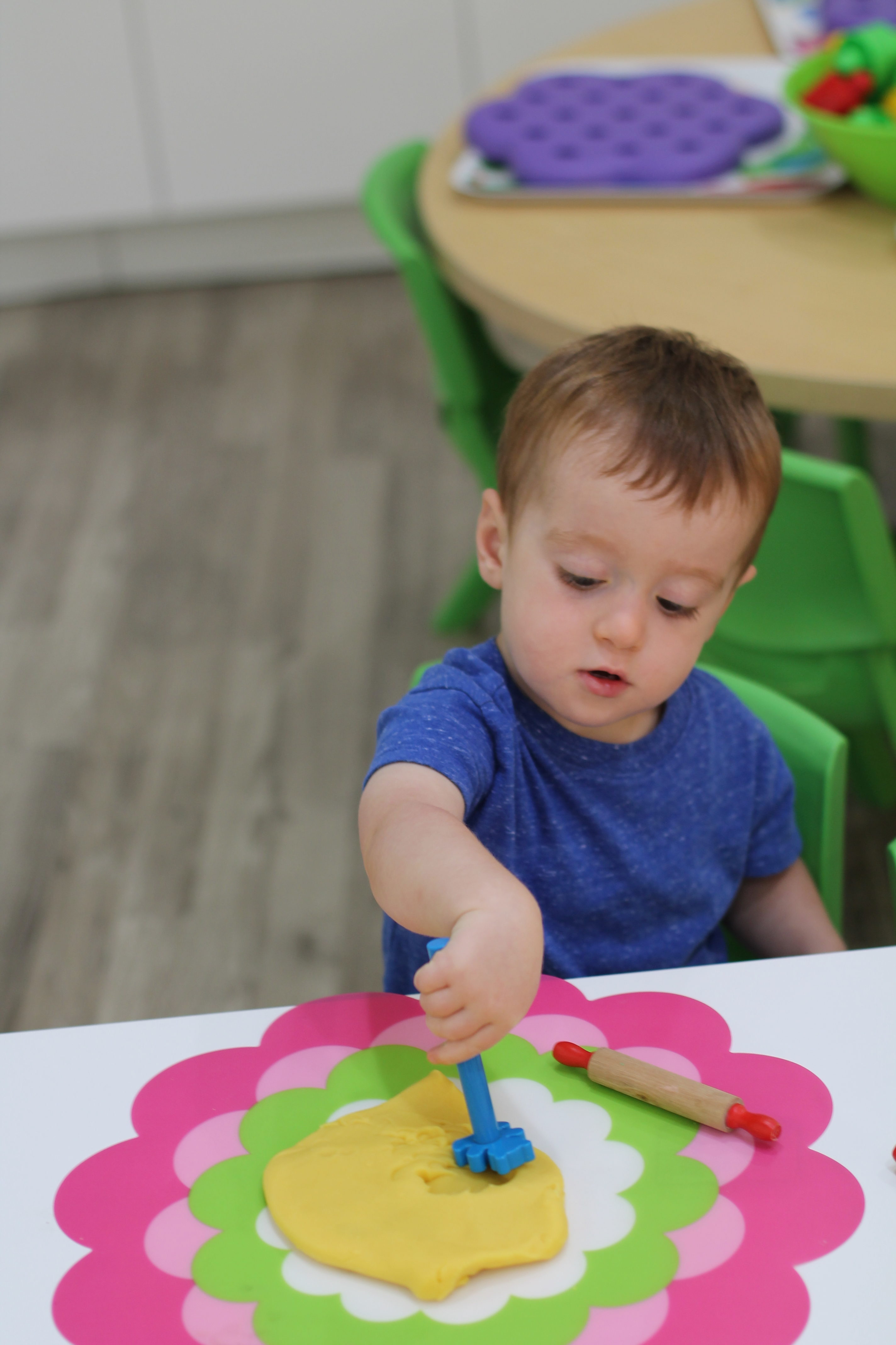 The Studio Toddler class has done such a wonderful job adjusting to their new routine and getting to know their friends and classroom. We have several different centers that our students can play in during their free choice time, as well as table activities that relate to our monthly objectives. See some of their exploring in the photos below!