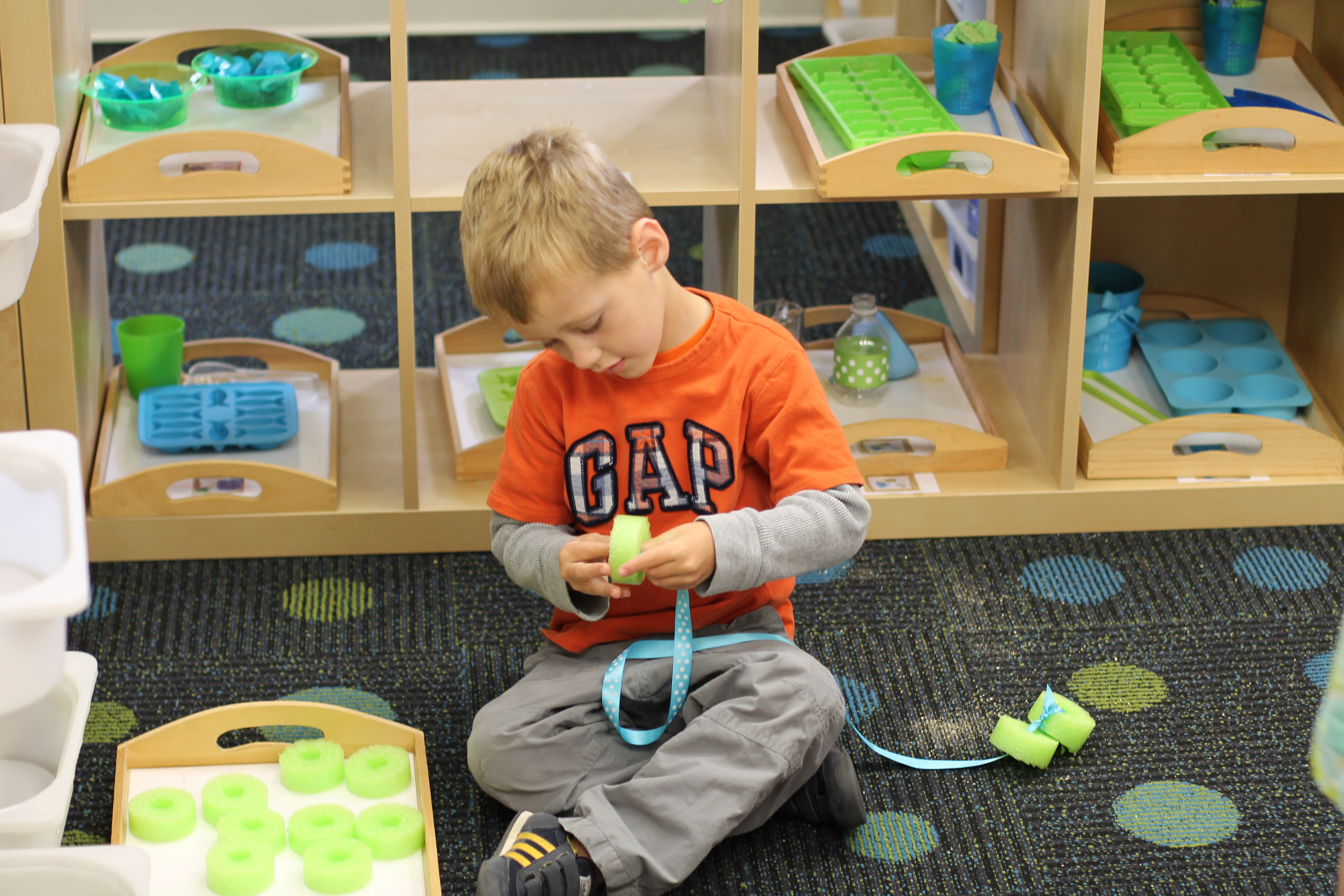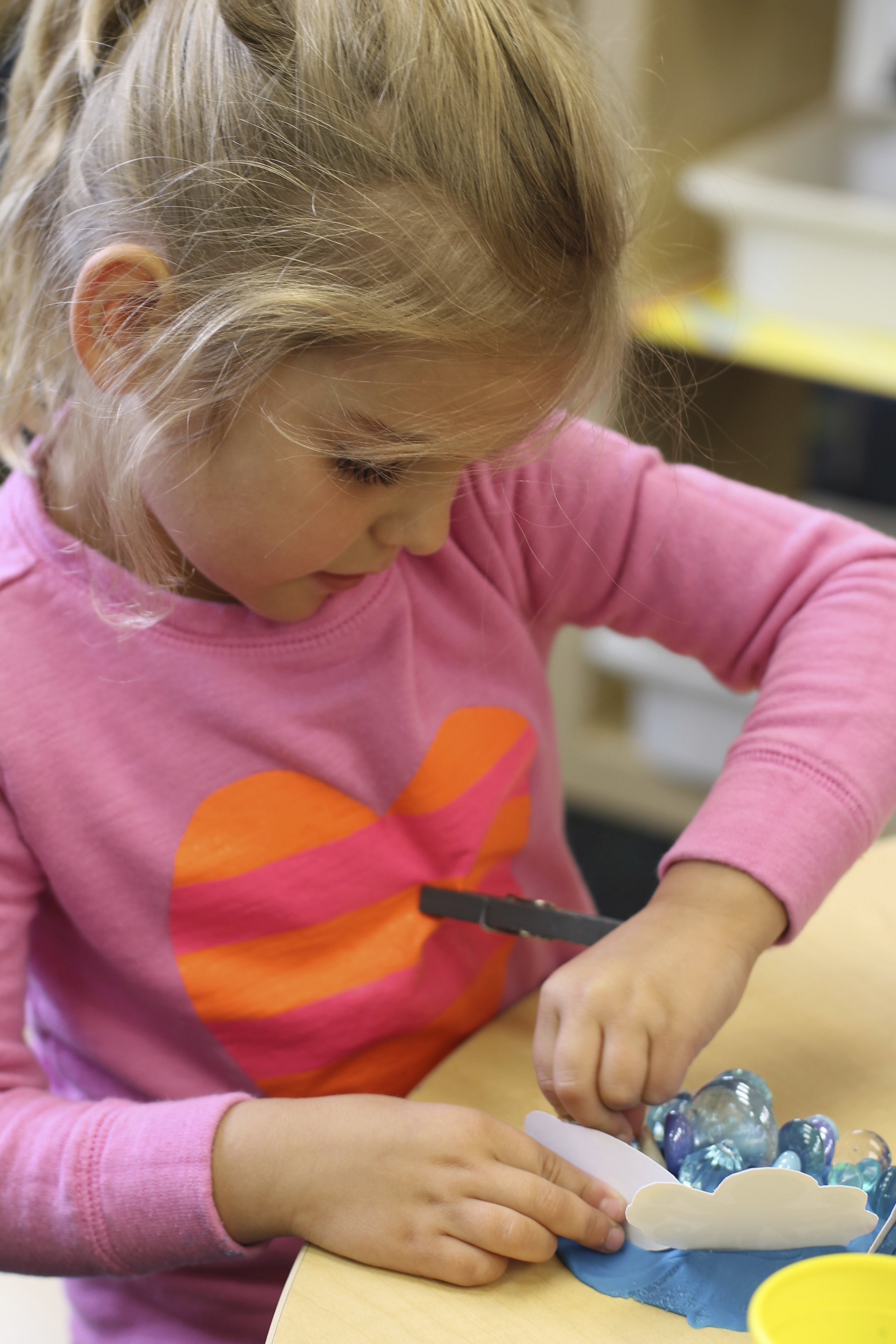 The kids had a wonderful time with play dough this morning! They were using their creative minds to turn their play dough into many different things. Morgan turned his play dough into a pair of glasses and Audrey made hers into a hat!
