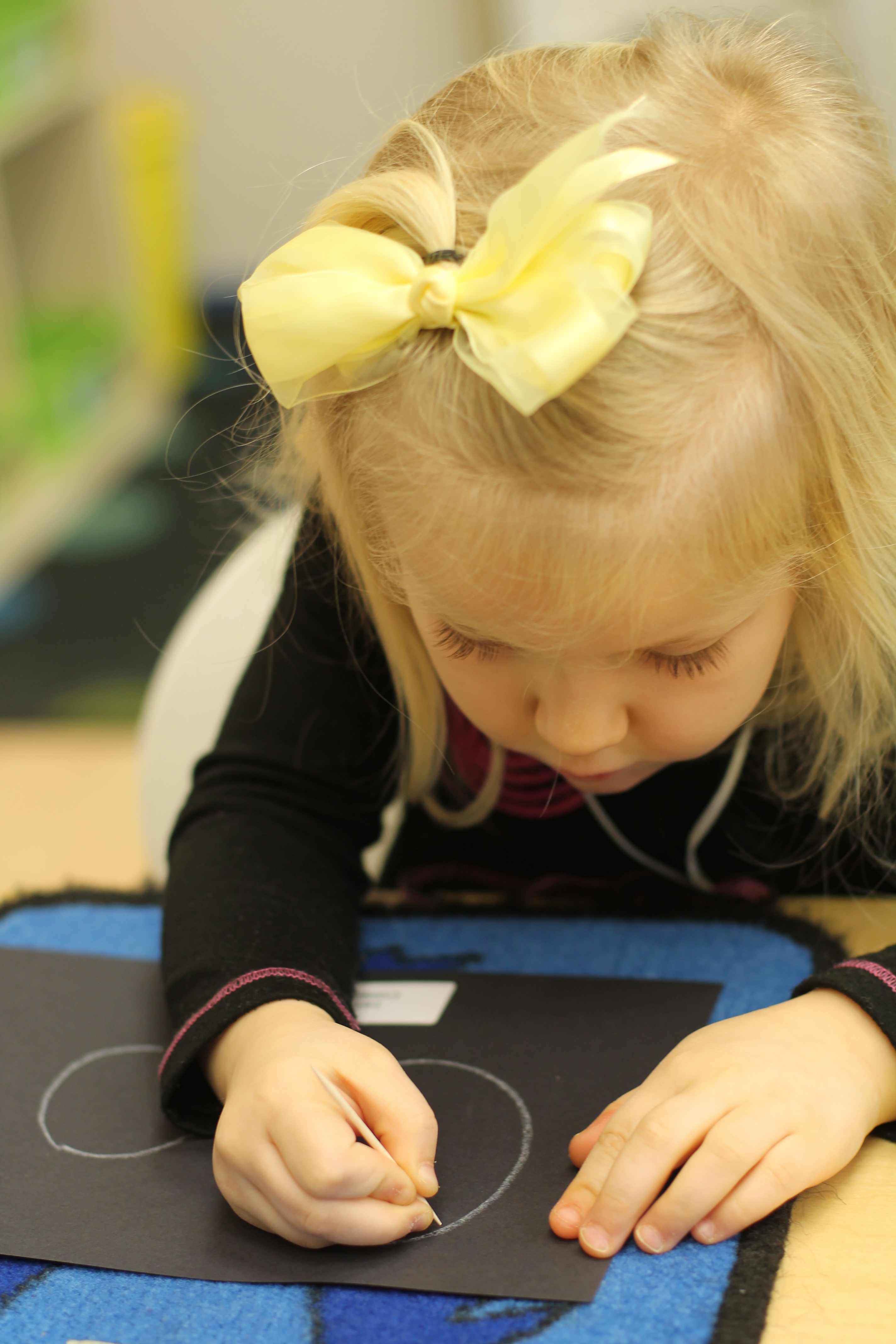 We turned our eyes to the night sky on Friday and learned about constellations. Many of the students were already familiar with the big and little dipper…we were impressed! We used our newly learned knowledge of constellations to create our own in the shape of our focus letter: Oo. Using our small motor muscles in our hands, we punched holes in black paper with a toothpick, then held it up to the light to reveal our constellations! Be sure to check out the night sky this week to see if you can spot the big dipper! Send us some pics of your little one star gazing…we’d love to add it to our blog post!