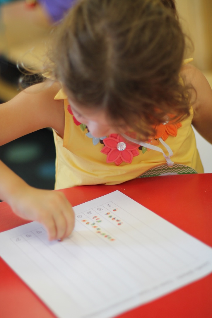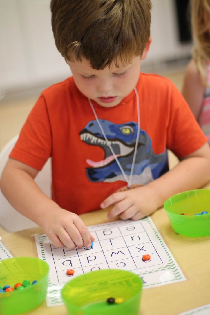 In small groups with Ms. Caroline, the boys and girls are working on letter recognition! For some of the children, they match letter magnets with letters on a sheet. Others are working on matching the letters in their name. No matter what the children are working on, this is a great way to introduce letters, sounds and their names. The boys and girls have so much fun playing and learning with these games!