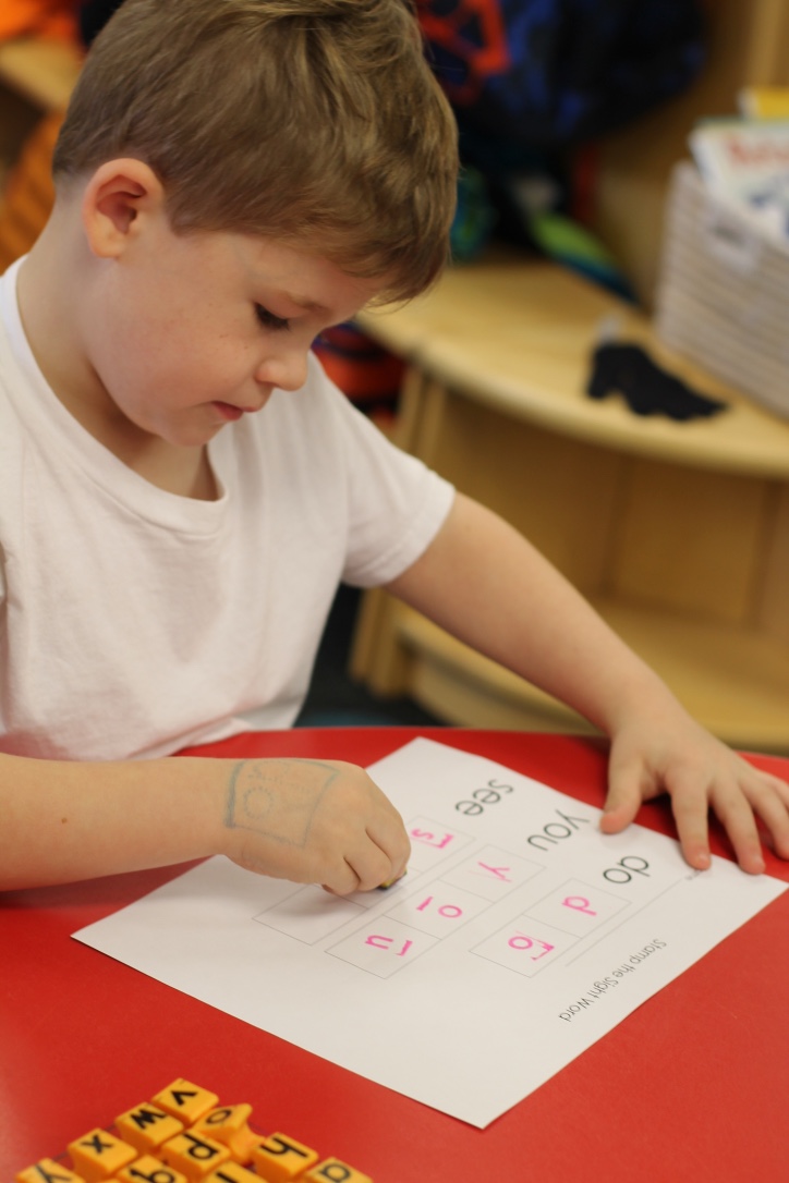 We are working hard with our letters! We are learning to recognize them, name them, give their sounds, and build them.