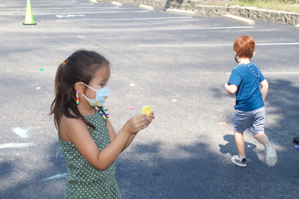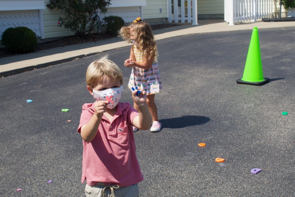 For example, we read Pete The Cat as a class and the kids were able to snack on some of the different foods Pete steps in to help retell the story (strawberries, blueberries, chocolate- in place of mud, and water). To incorporate letter recognition, we had the children feed letters to our Pete The Cat Character Box. If it was not a letter we had learned yet, the children would say “goodness no!”- just like in the story. To continue with this theme, we had a question of the day for the children: “What color would you turn your shoes? What would you need to step in to turn them this color?”