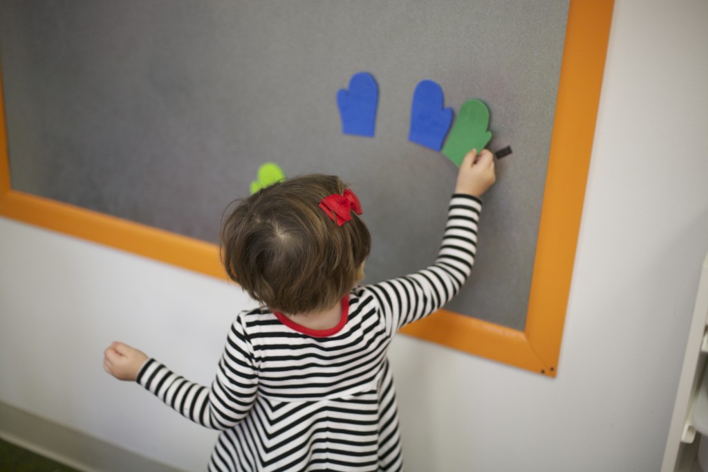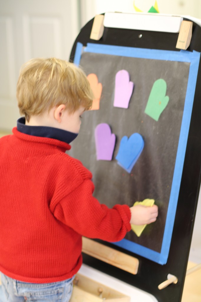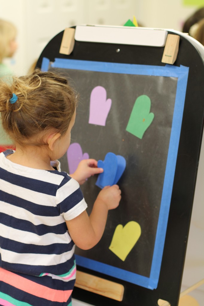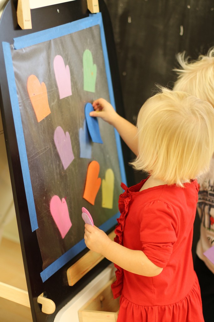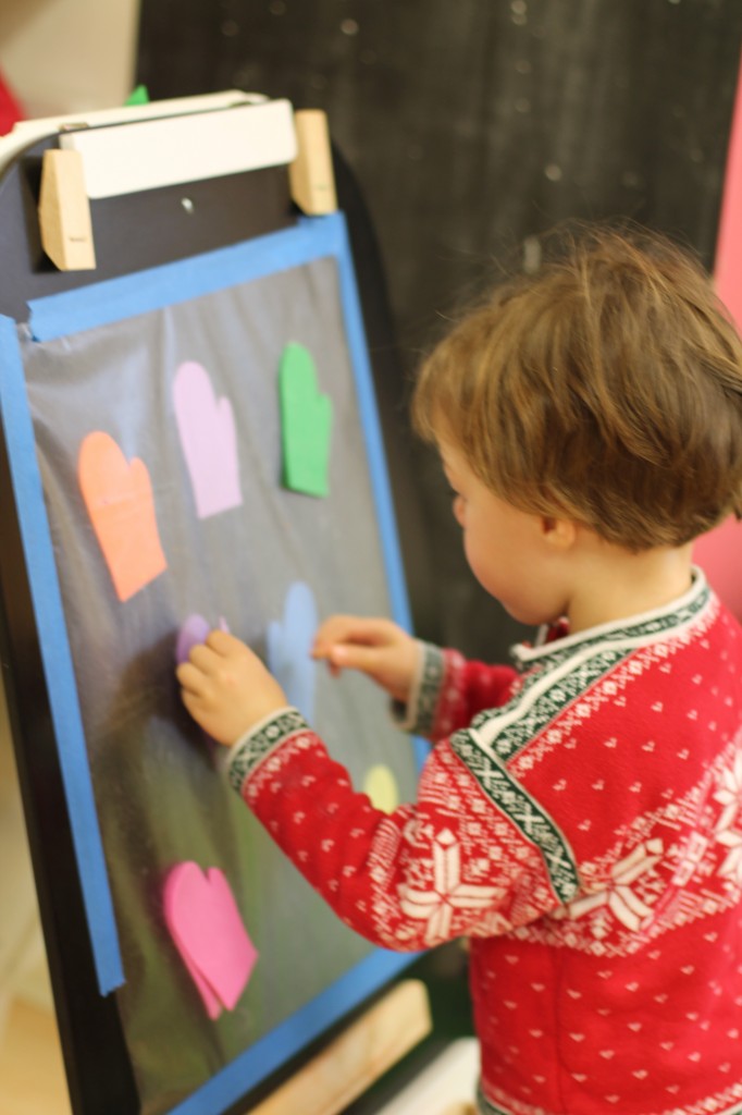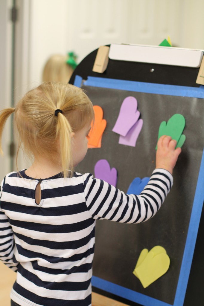 On one side of the easel, we matched colored mittens.