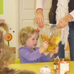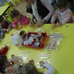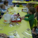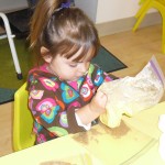 After reading the stories about all the different gingerbread friends throughout the month of December, it was time to try our hand at making our own. We measured and mixed the ingredients, stirred and stirred, rolled the dough then cut them out. We knew that the recipe said to cook them for a whole eight minutes, no more no less and NO PEEKING. We put them in the oven, but when we looked to see if they were done…our gingerbread friends were GONE! Our tray was empty. We quickly put our coats on and began searching outside incase they had slipped out while we weren’t looking. They were nowhere to be found! After searching high and low, we finally found them hiding in our classroom. Thank goodness the fox didn’t find them before we did!