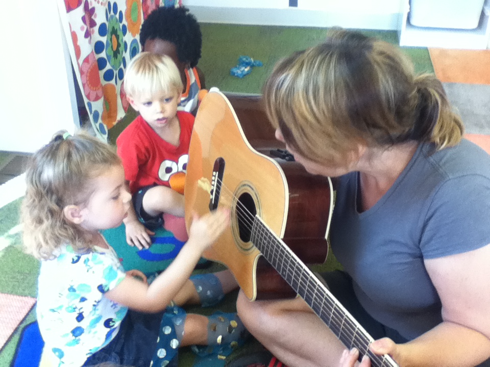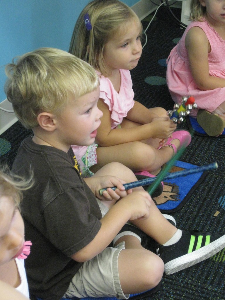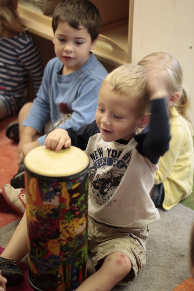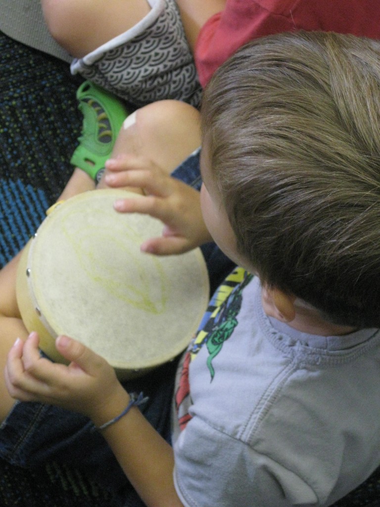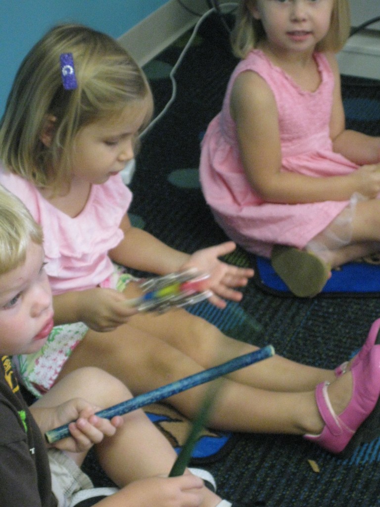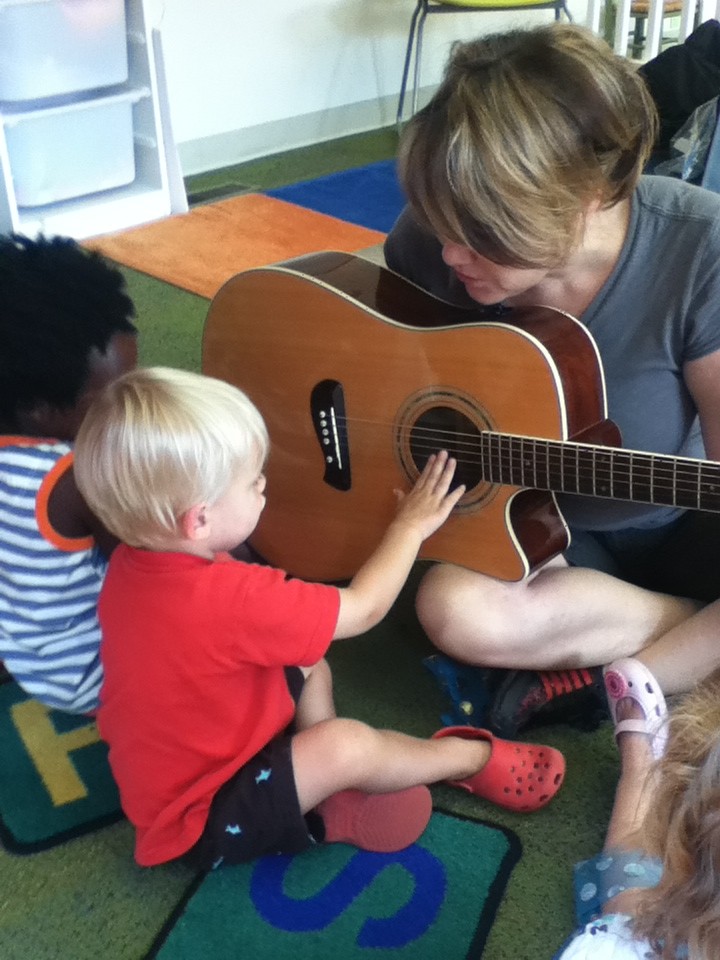 Today we had a guest appearance from Ms. Joanie! She let us play with her instruments and play the “hug game” (when the music stops you have to find someone to give a hug). We enjoyed dancing and singing with Ms. Joanie.