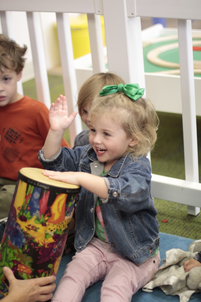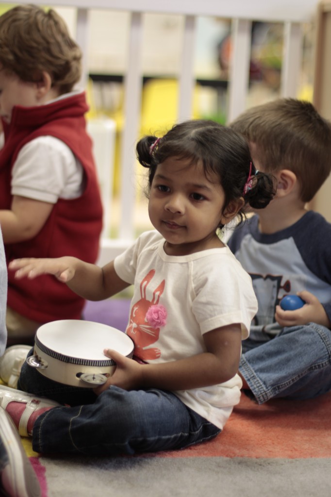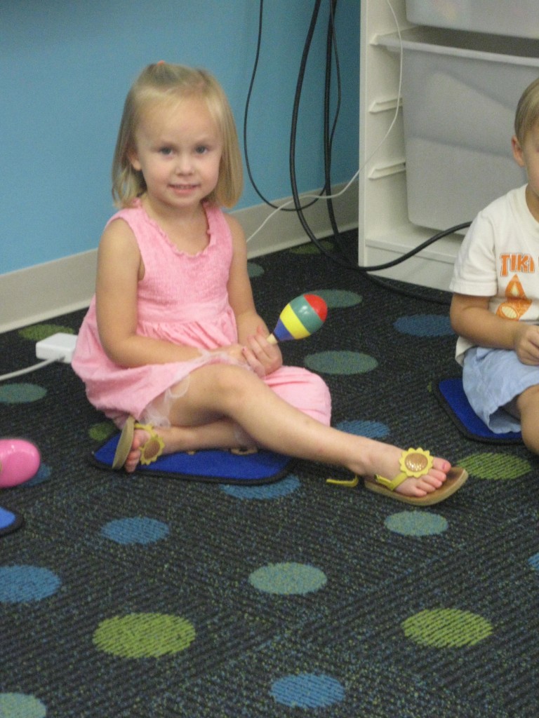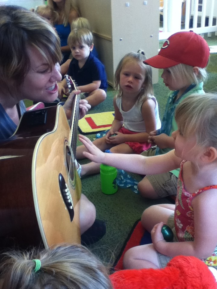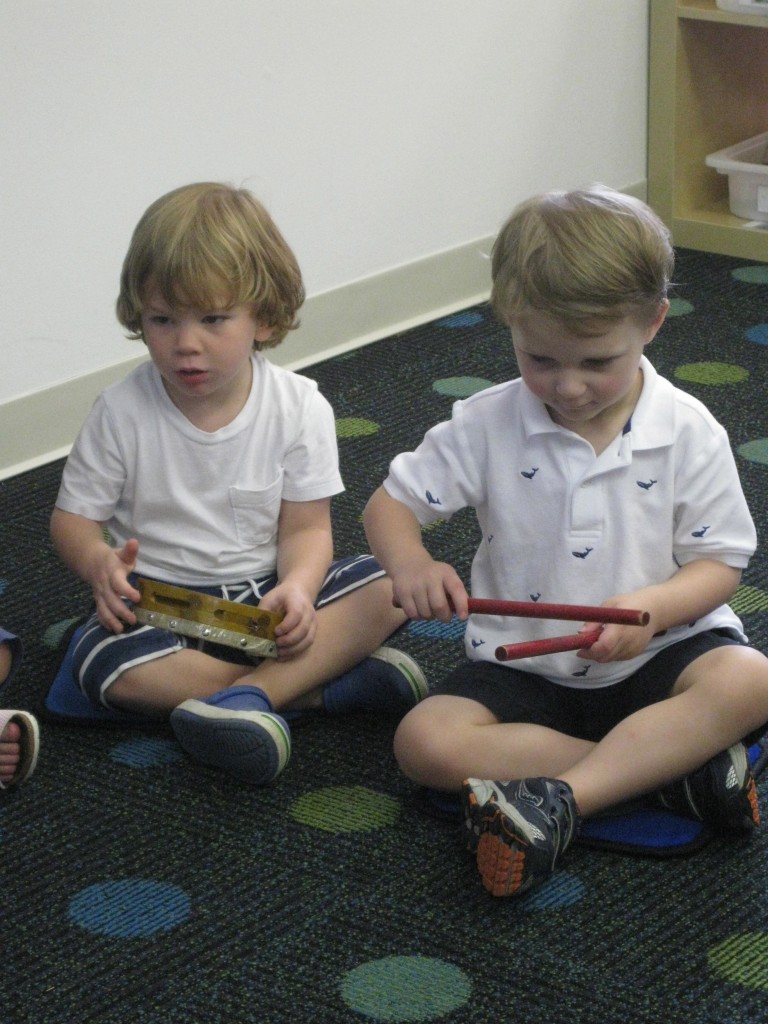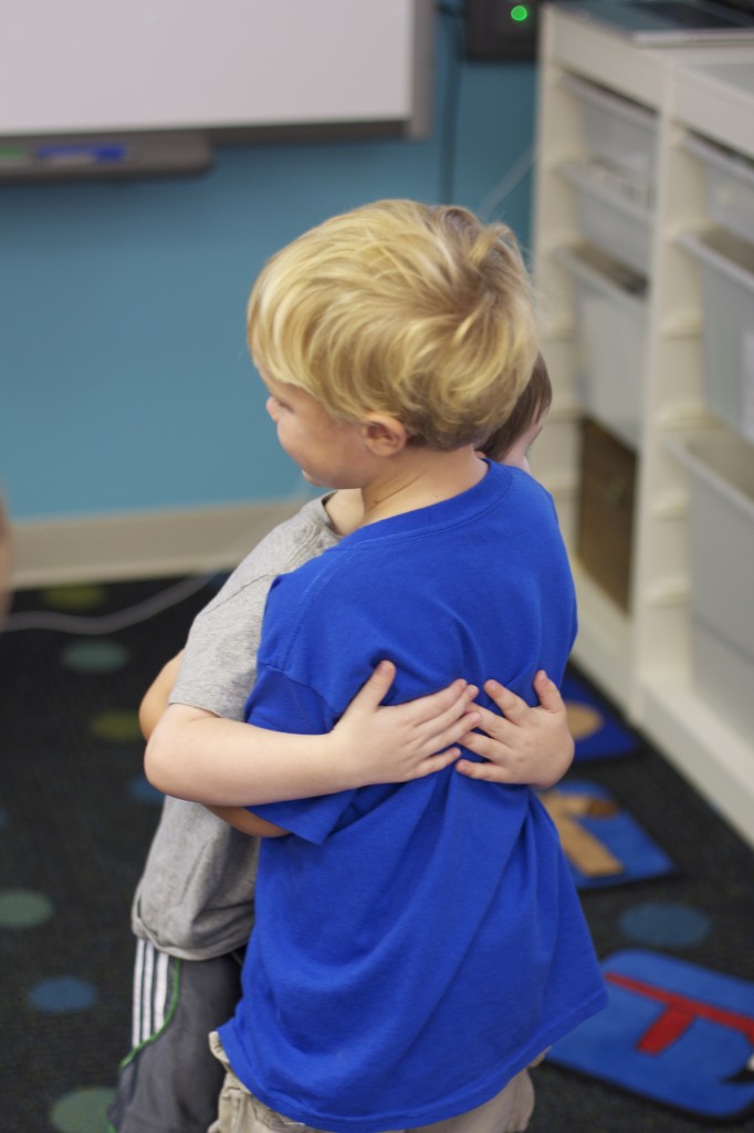Today we had a guest appearance from Ms. Joanie! She let us play with her instruments and play the “hug game” (when the music stops you have to find someone to give a hug). We enjoyed dancing and singing with Ms. Joanie.