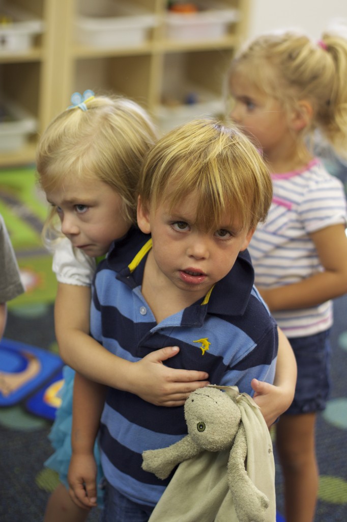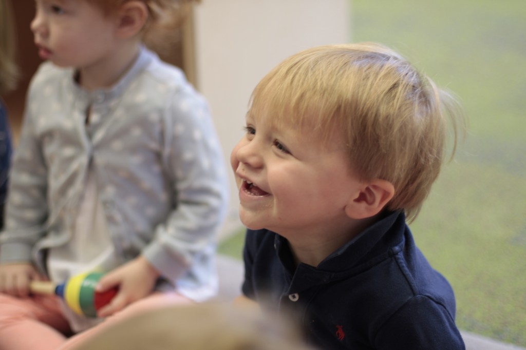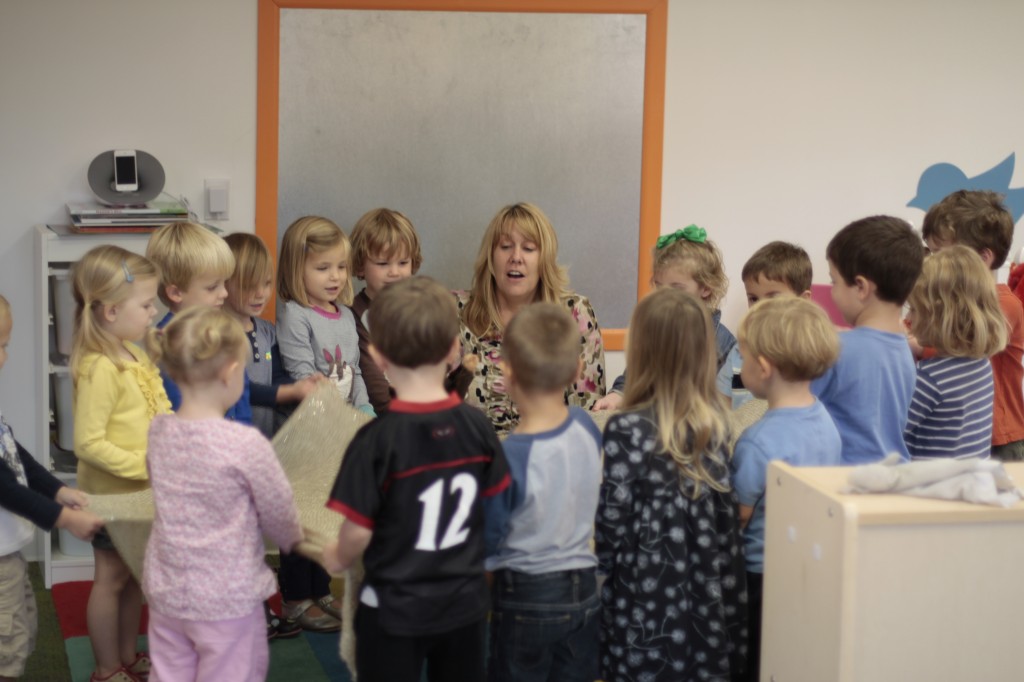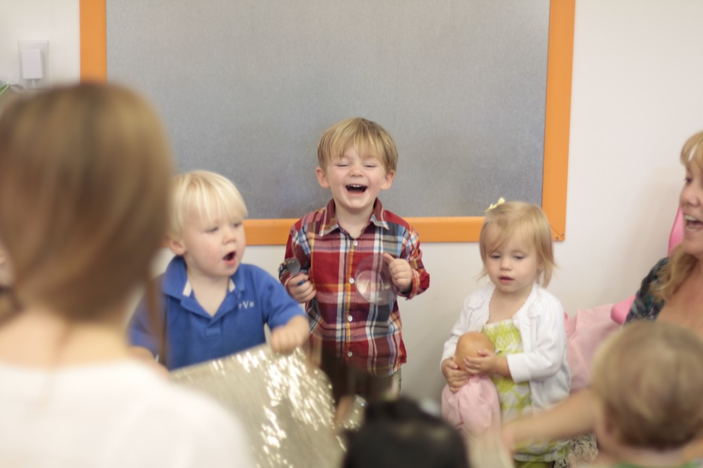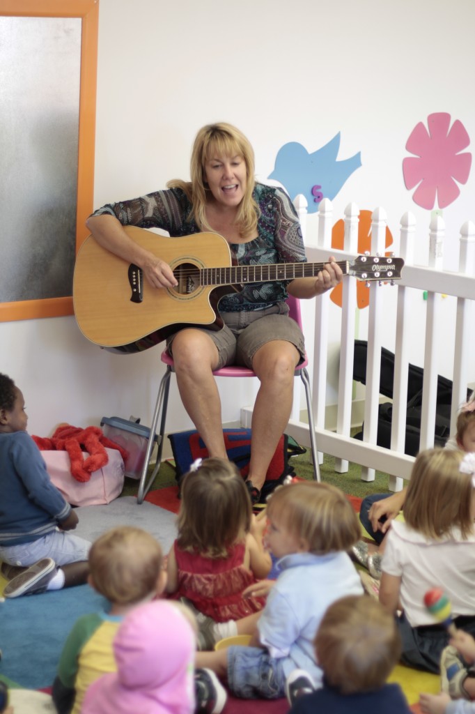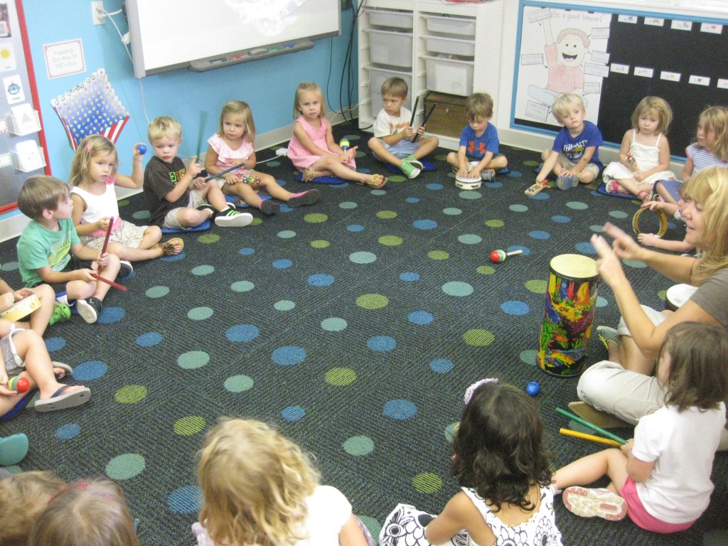 Today we had a guest appearance from Ms. Joanie! She let us play with her instruments and play the “hug game” (when the music stops you have to find someone to give a hug). We enjoyed dancing and singing with Ms. Joanie.