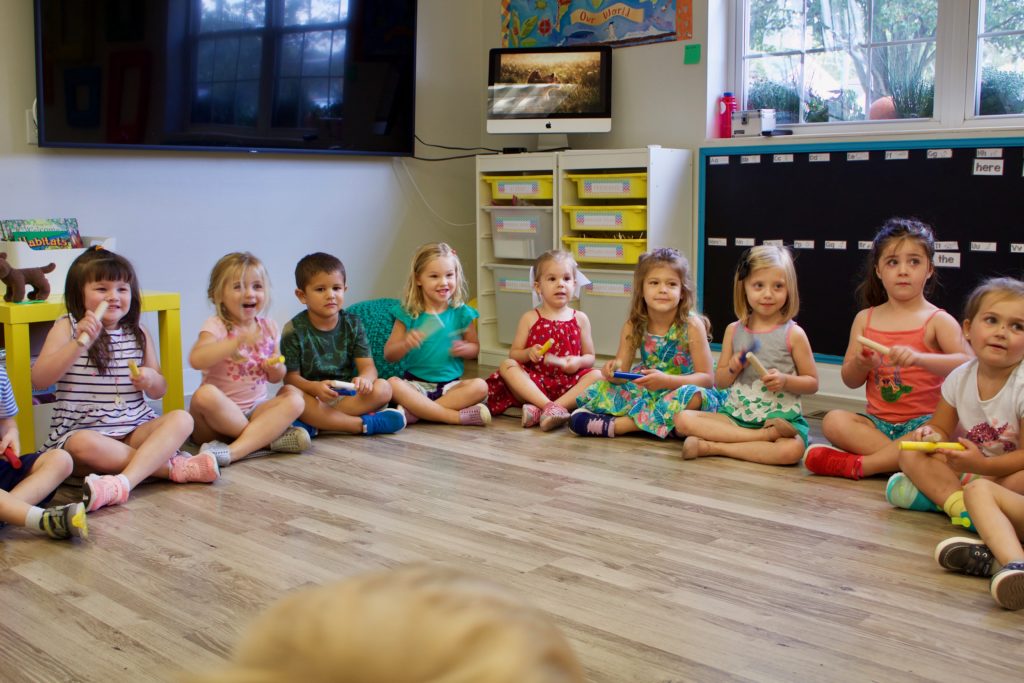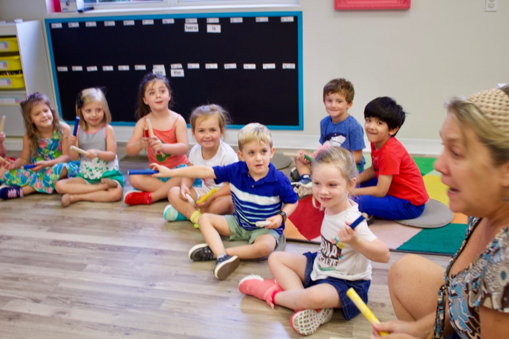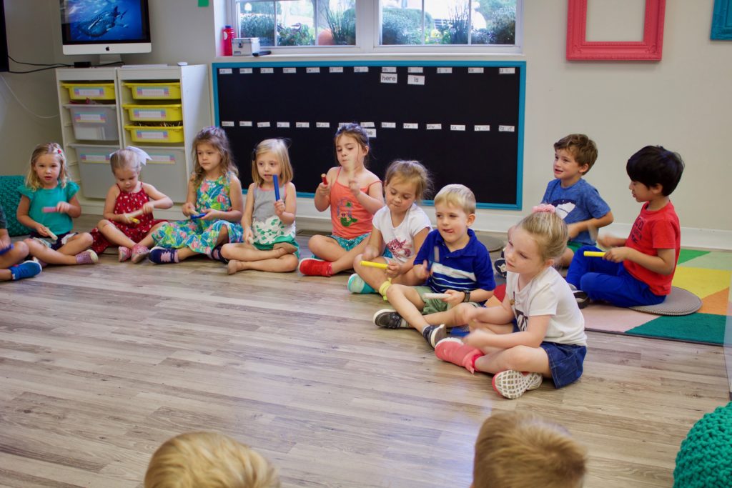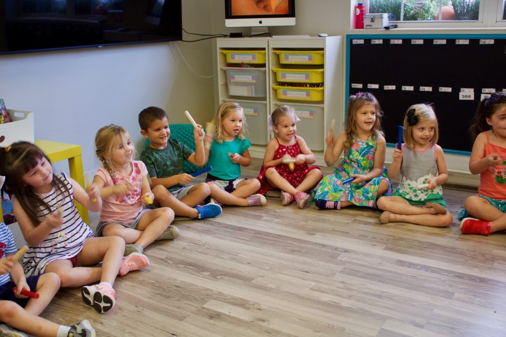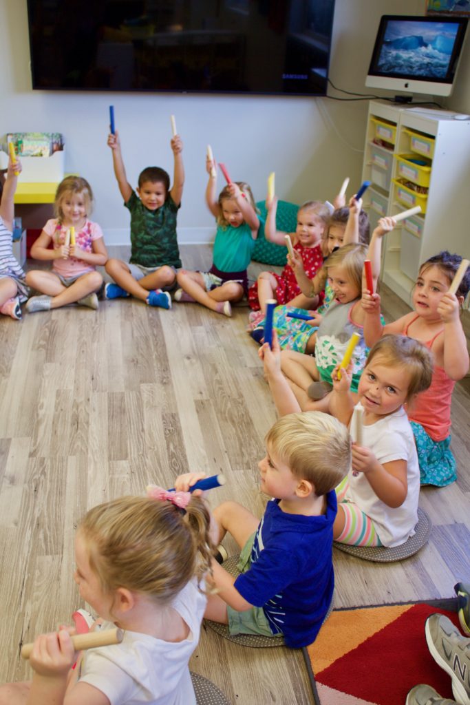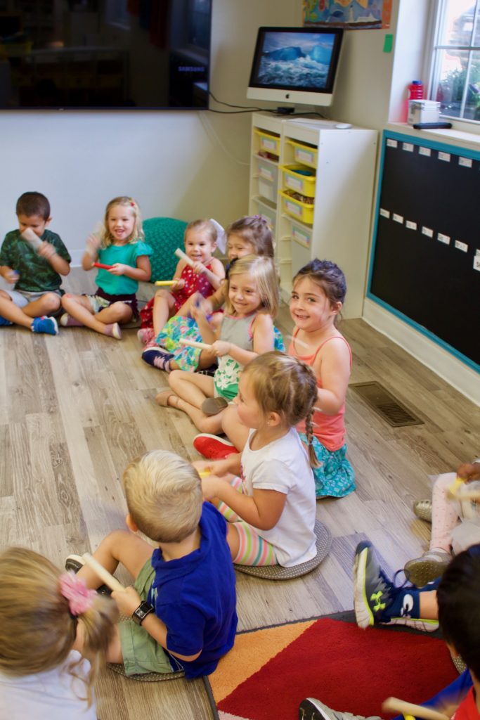 Ms. Joanie joined our K Prep classroom today for a special Music Enrichment class! She brought her rhythm sticks and the children used them to create spooky halloween sounds! Incorporating music into the Early Childhood classroom has a variety of benefits: