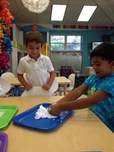 Squishing, squeezing, stretching and molding play dough helps to build muscle strength in the fingers and hands. This in turn makes it easier to complete fine motor activities like holding a pencil and cutting with scissors later on.