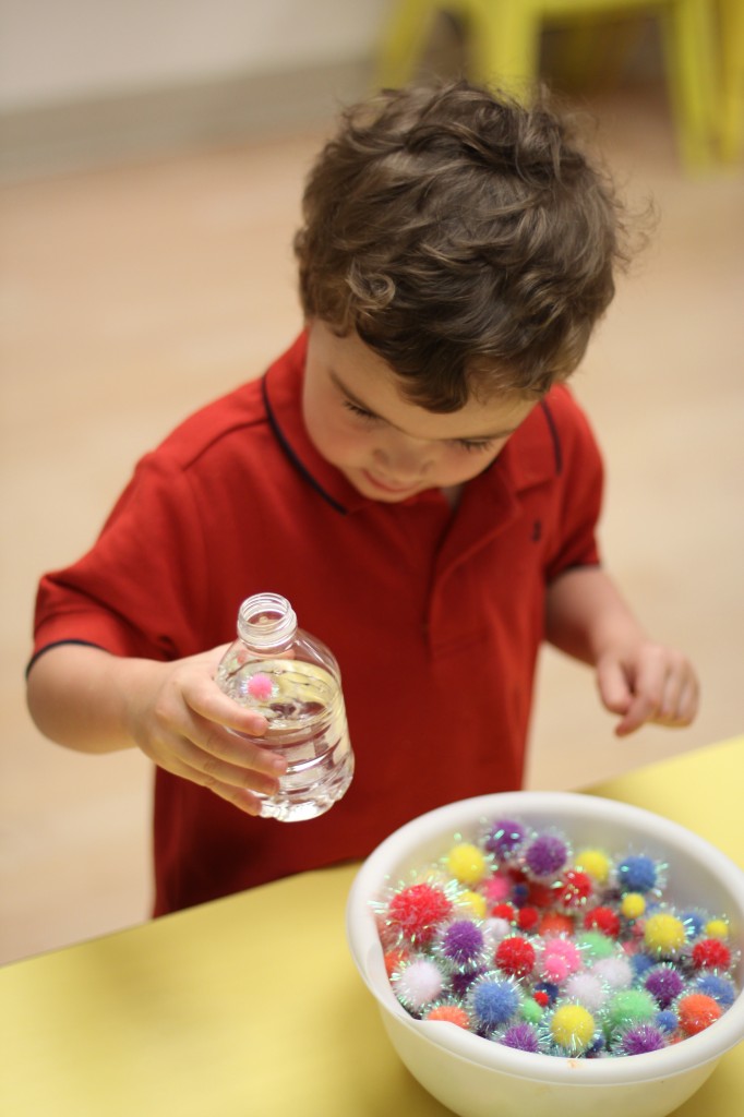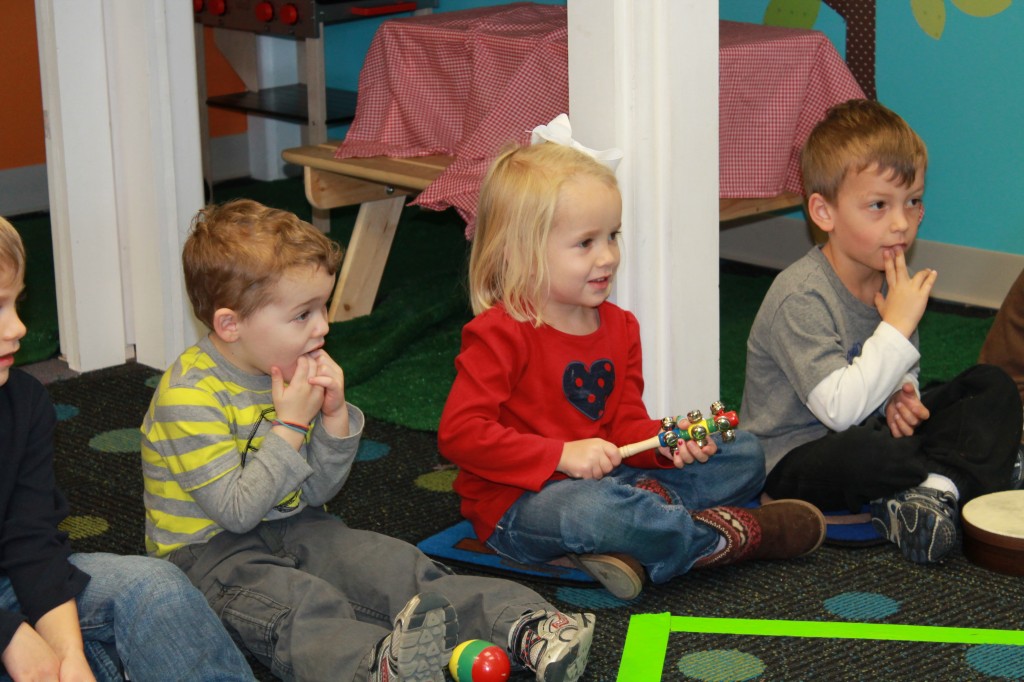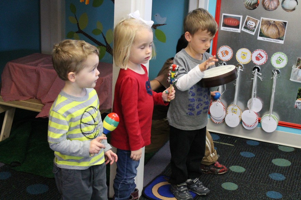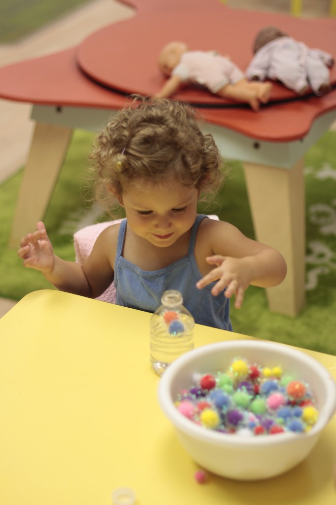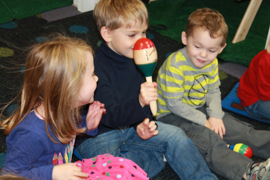 Today Ms. Joanie came to our class to sing and play instruments with us! We always love having her in our class! She even brought her special gold sheet for “5 Little Monkeys Jumping on the Bed.” Today we practiced holding a large crayon to draw and build our pre-writing skills. In small groups today we had fun with an “I Spy Alphabet Bag” –hair gel in a ziplock bag with foam letters. The children had to look for the first letter of their name, as well as the letter of the week (“Z”). We worked on our one-to-one correspondence by taking turns passing out sparkly pom-poms for each friend to put in their bowls. We are continuing to practice recognizing our names and the letters in our names. Today we molded play dough into the letters in our name. Hope you have a fantastic weekend! See you Monday!!