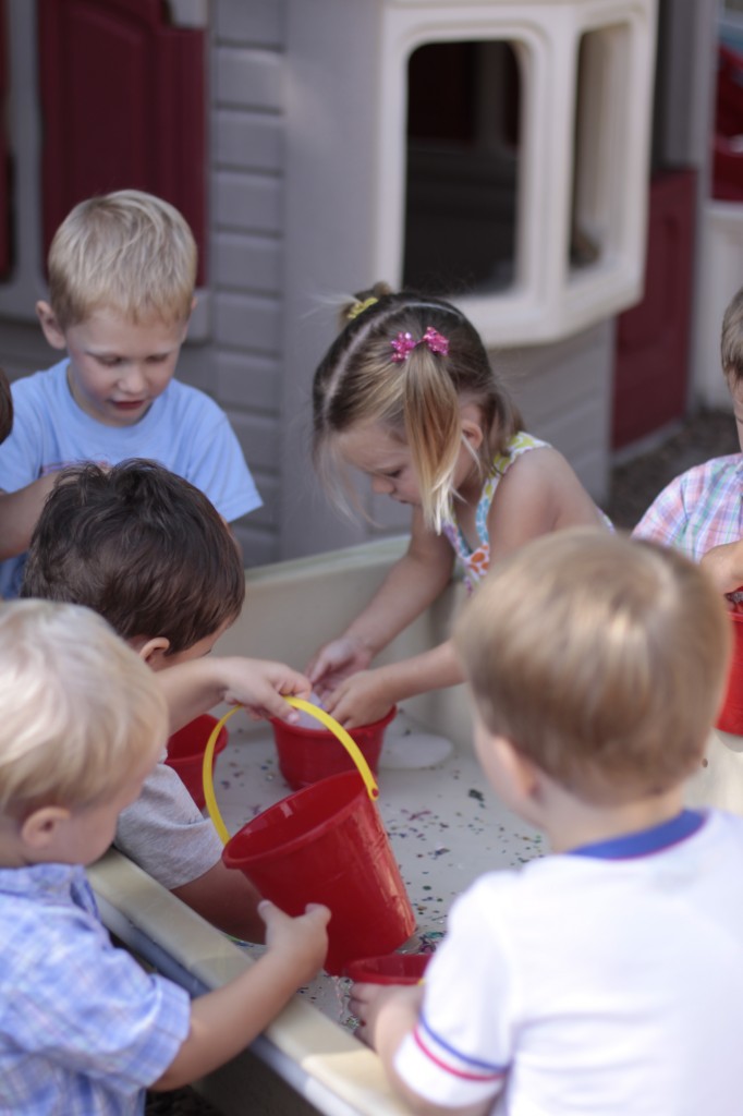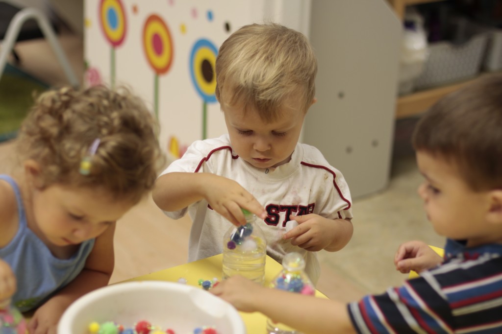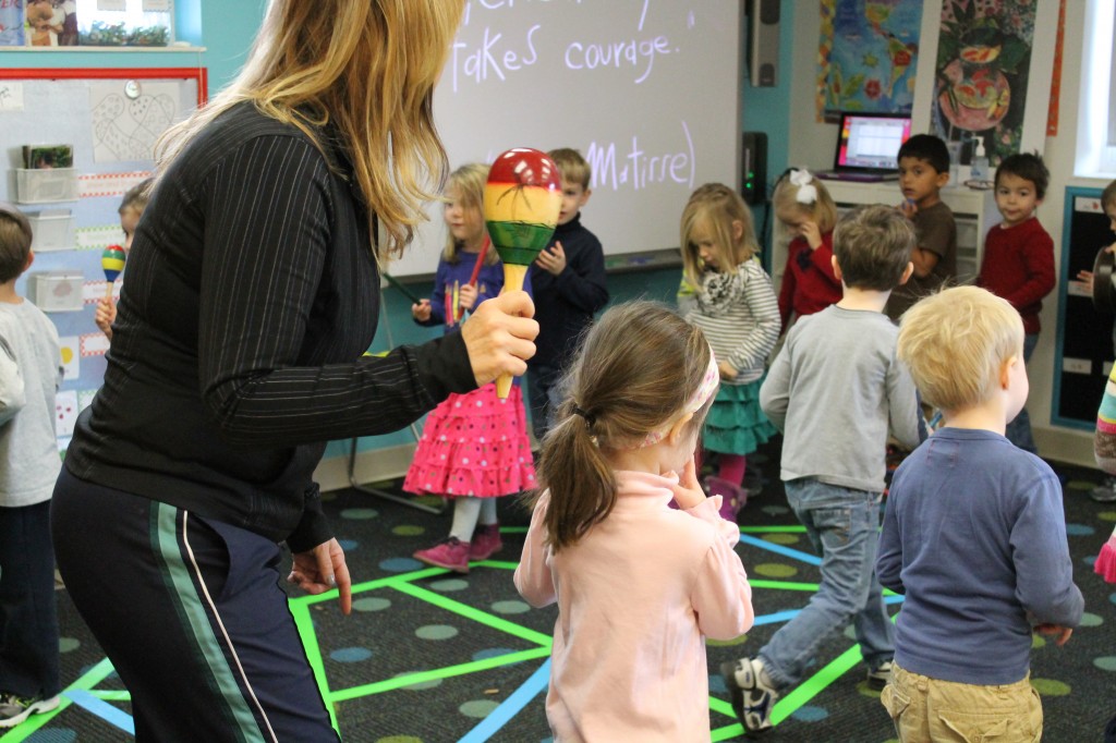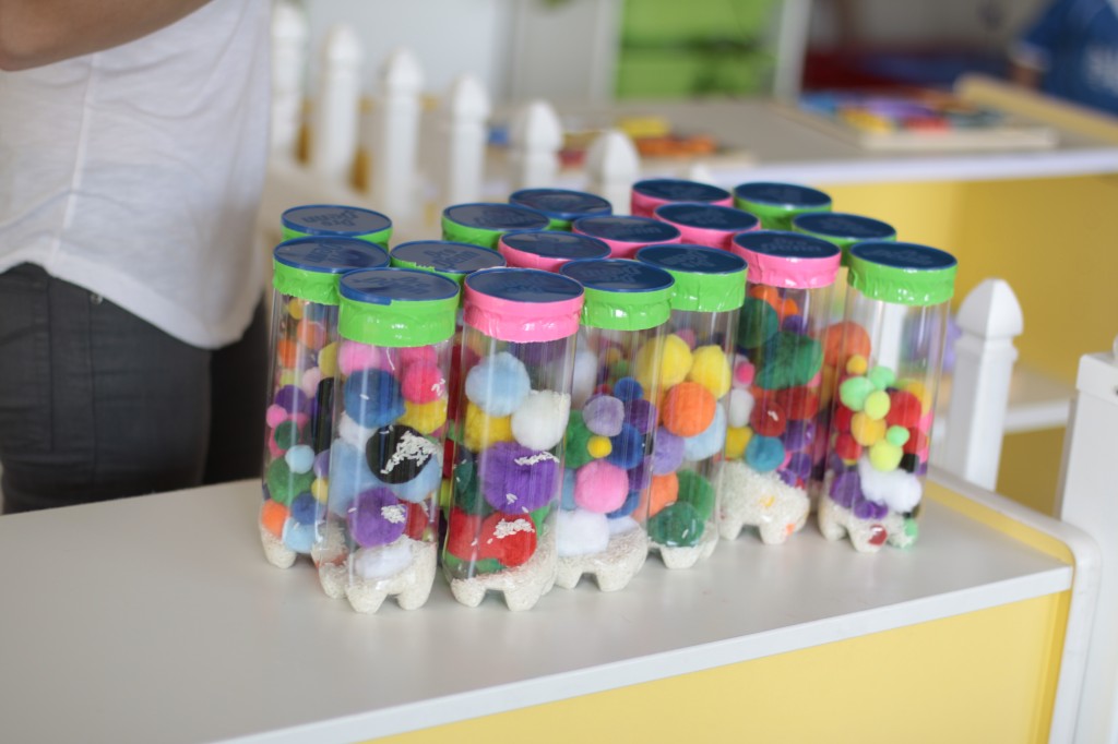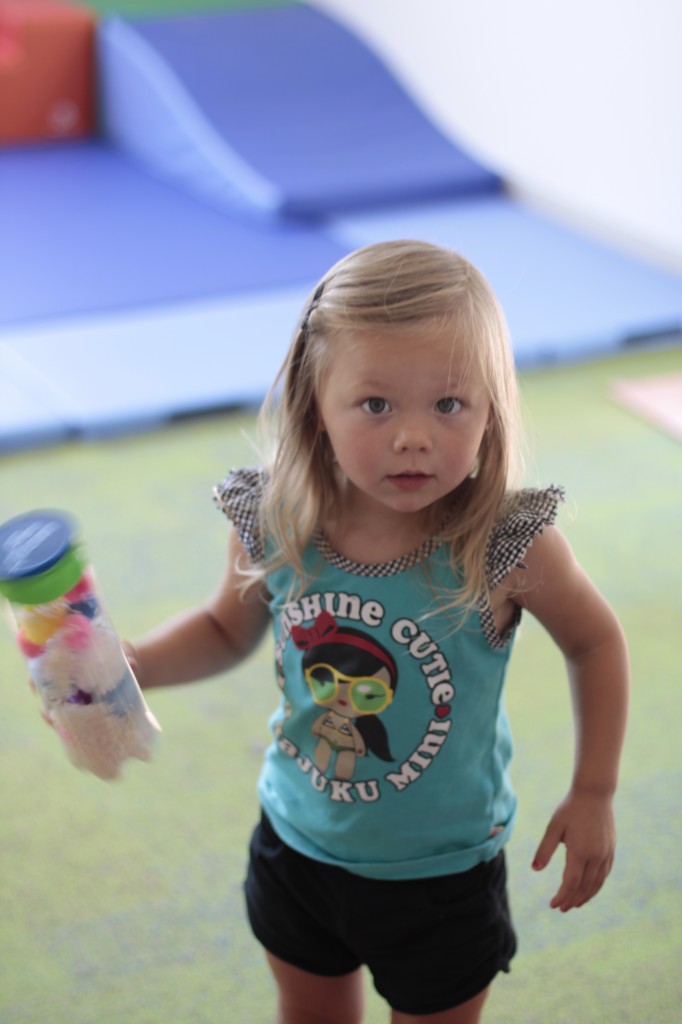 Today Ms. Joanie came to our class to sing and play instruments with us! We always love having her in our class! She even brought her special gold sheet for “5 Little Monkeys Jumping on the Bed.” Today we practiced holding a large crayon to draw and build our pre-writing skills. In small groups today we had fun with an “I Spy Alphabet Bag” –hair gel in a ziplock bag with foam letters. The children had to look for the first letter of their name, as well as the letter of the week (“Z”). We worked on our one-to-one correspondence by taking turns passing out sparkly pom-poms for each friend to put in their bowls. We are continuing to practice recognizing our names and the letters in our names. Today we molded play dough into the letters in our name. Hope you have a fantastic weekend! See you Monday!!