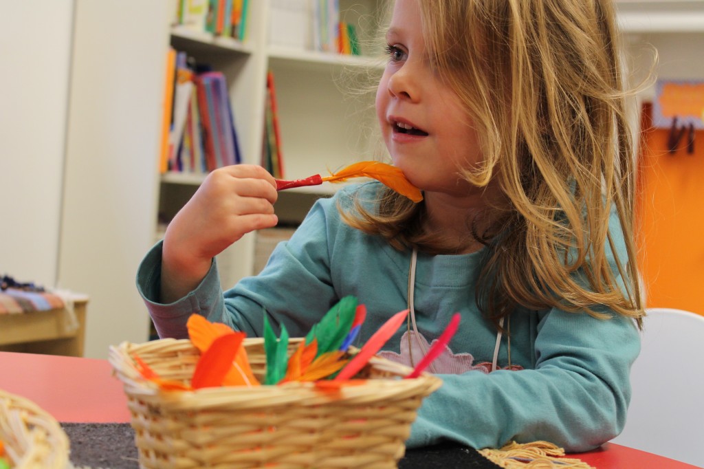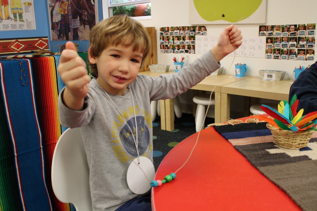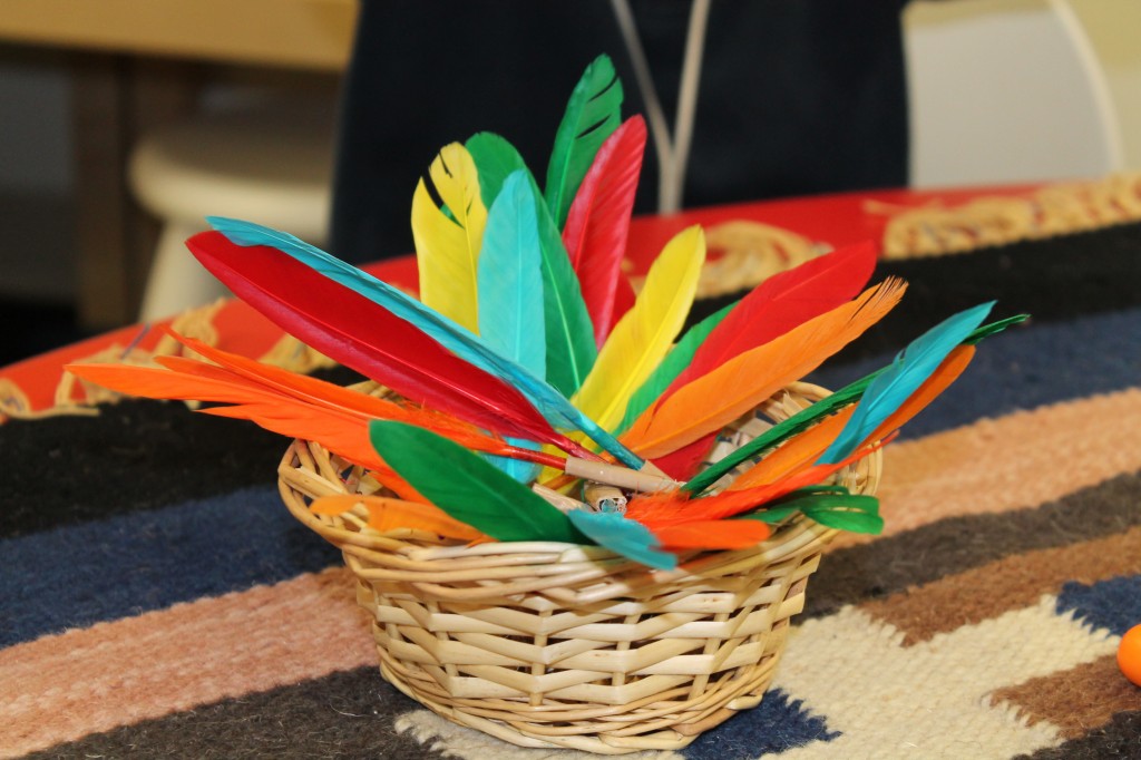 Some Native American Tribes used to use a decorated feather during meetings and discussions to allow everyone a chance to speak their mind without being interrupted. The children had a chance to try it out during small groups and take their own feather home.