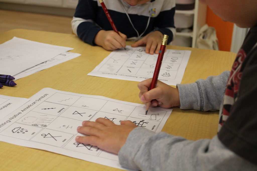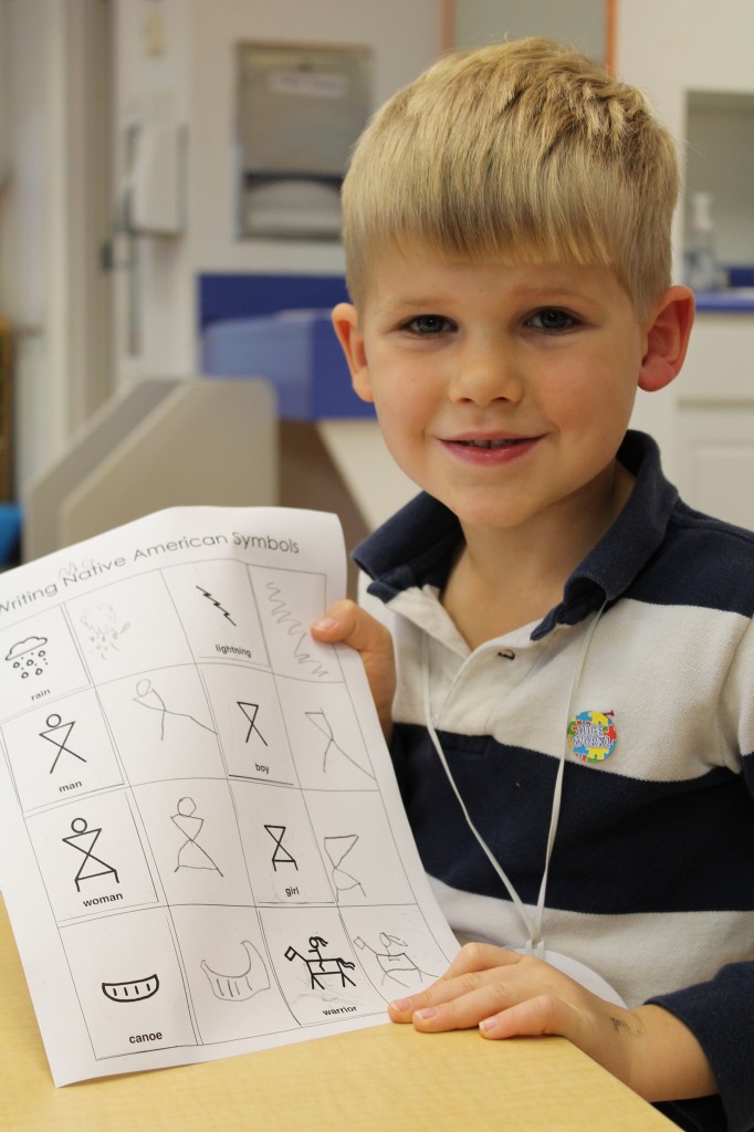 We’ve been learning about Native Americans this month and how they helped the pilgrims survive when they started their lives in their new world! Today we discovered how some Native Americans told stories without letters or words and tried our hand at our own symbols.