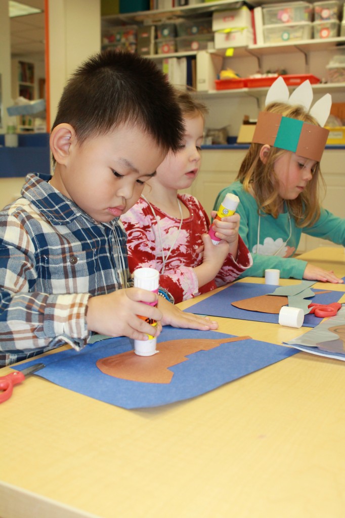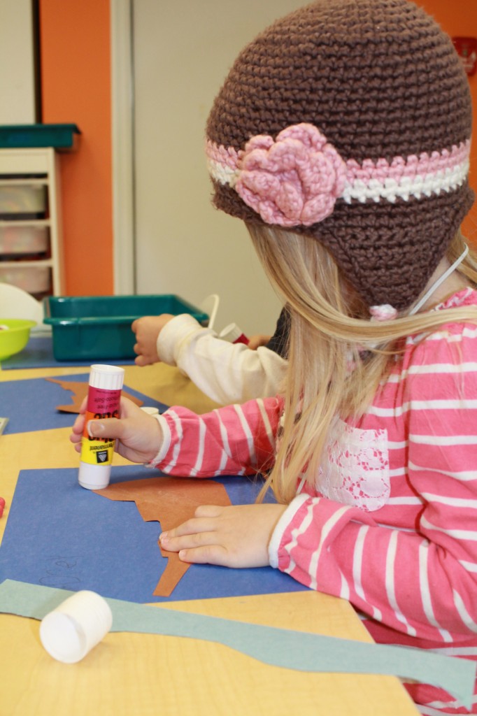 We practiced fine motor skills by coloring, stickers, and fall themed playdough cookie cutters.