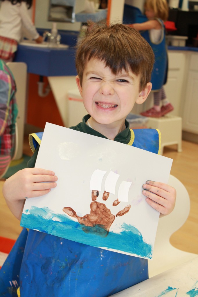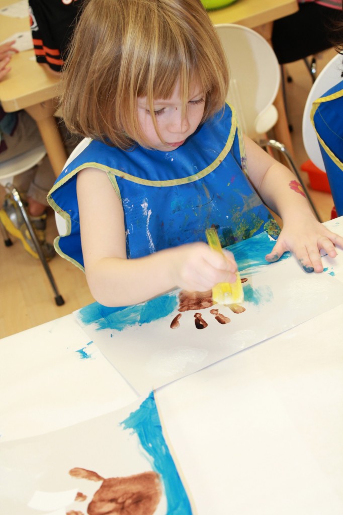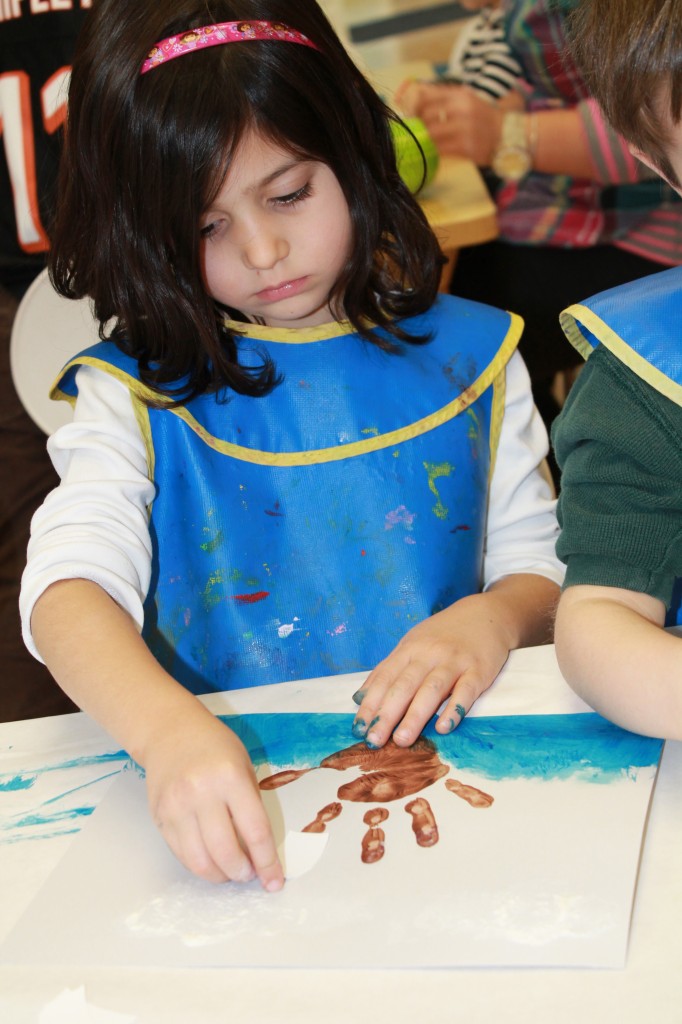 We used fall colored fingerprints to make turkey feathers for a Thanksgiving craft!