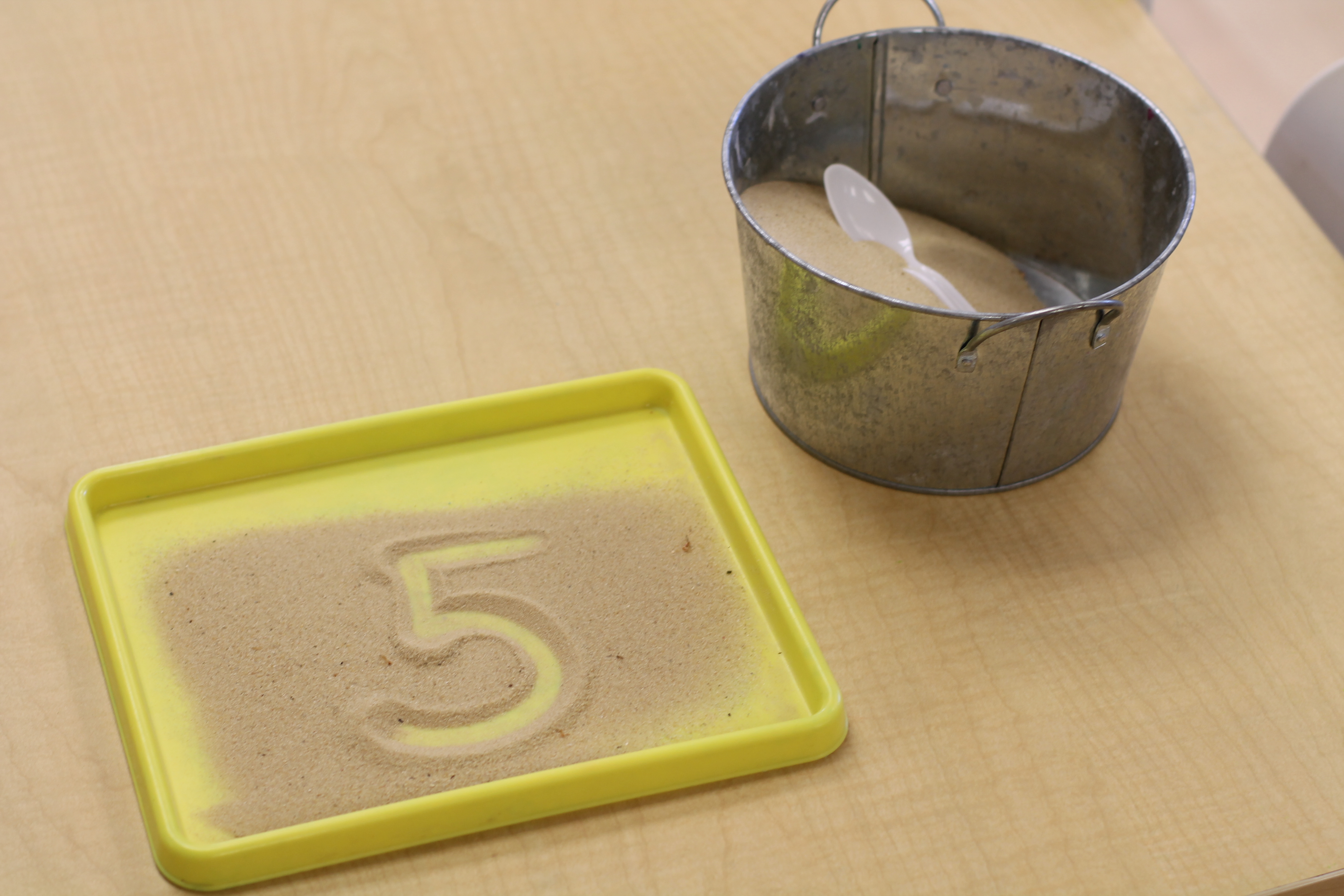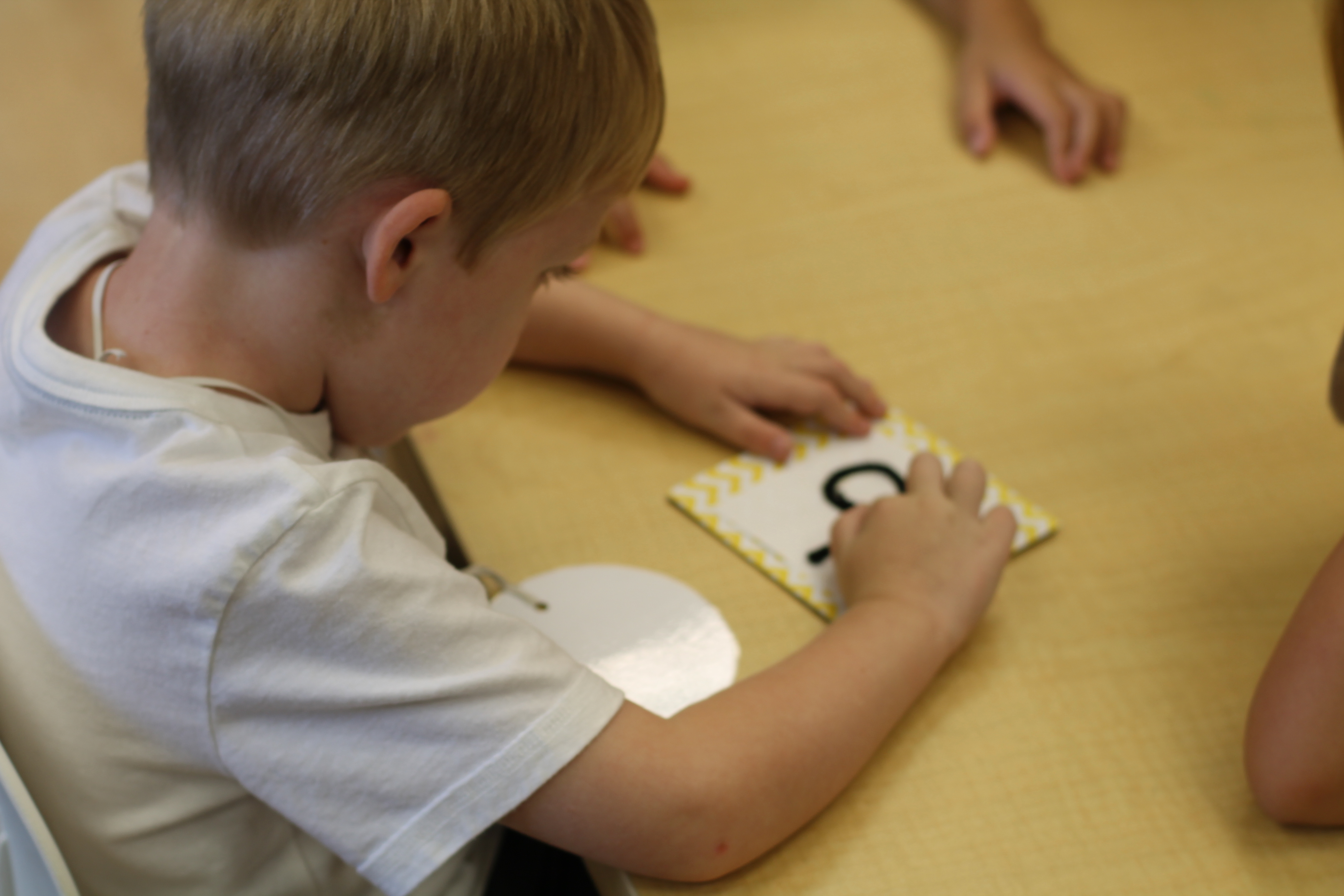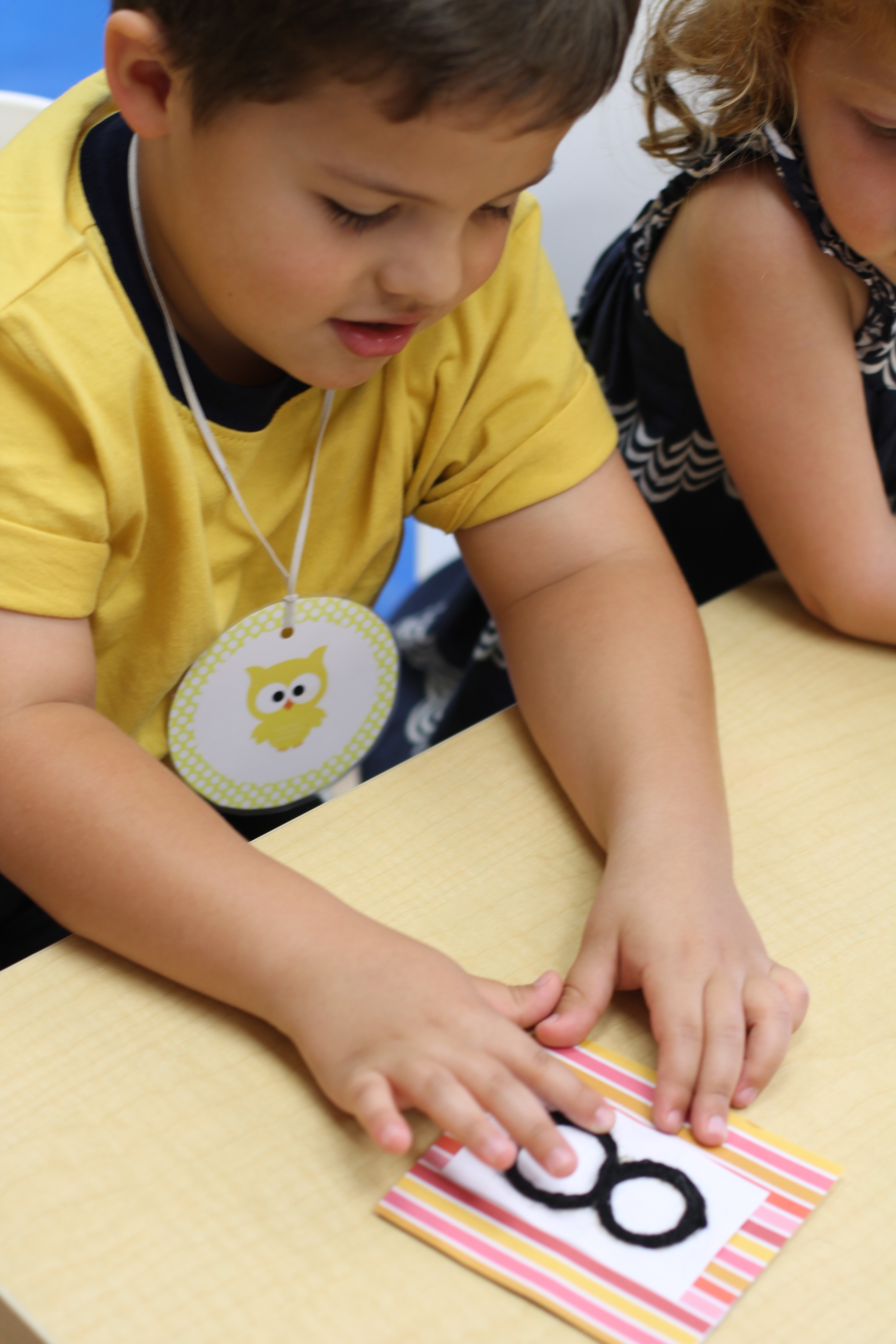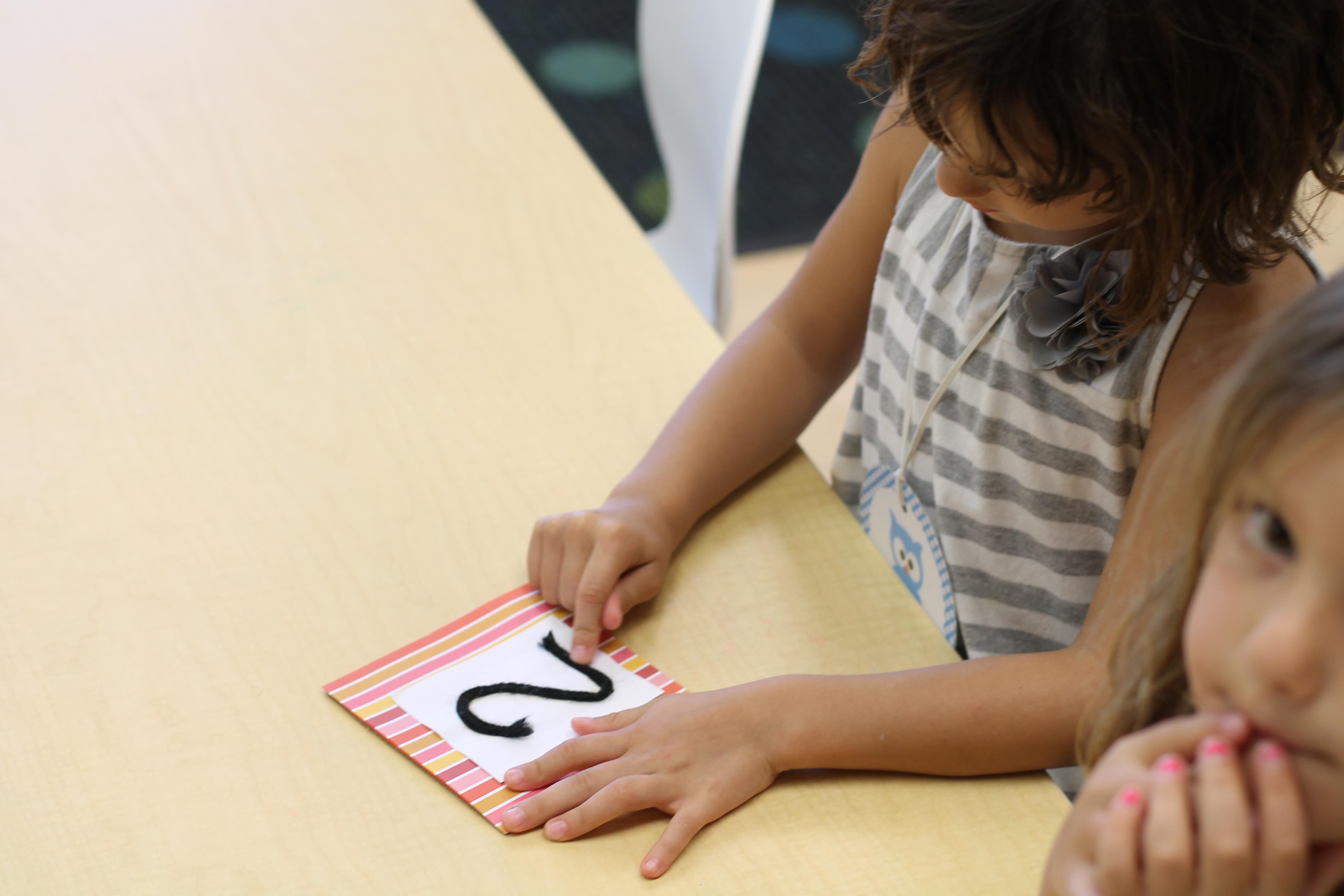 The students traced tactile yarn numbers with their fingers, drew numbers in sand trays, and traced dotted numbers using dry and erase markers! A dry and erase writing activity is also found in the homework binder. You can never get too much practice!