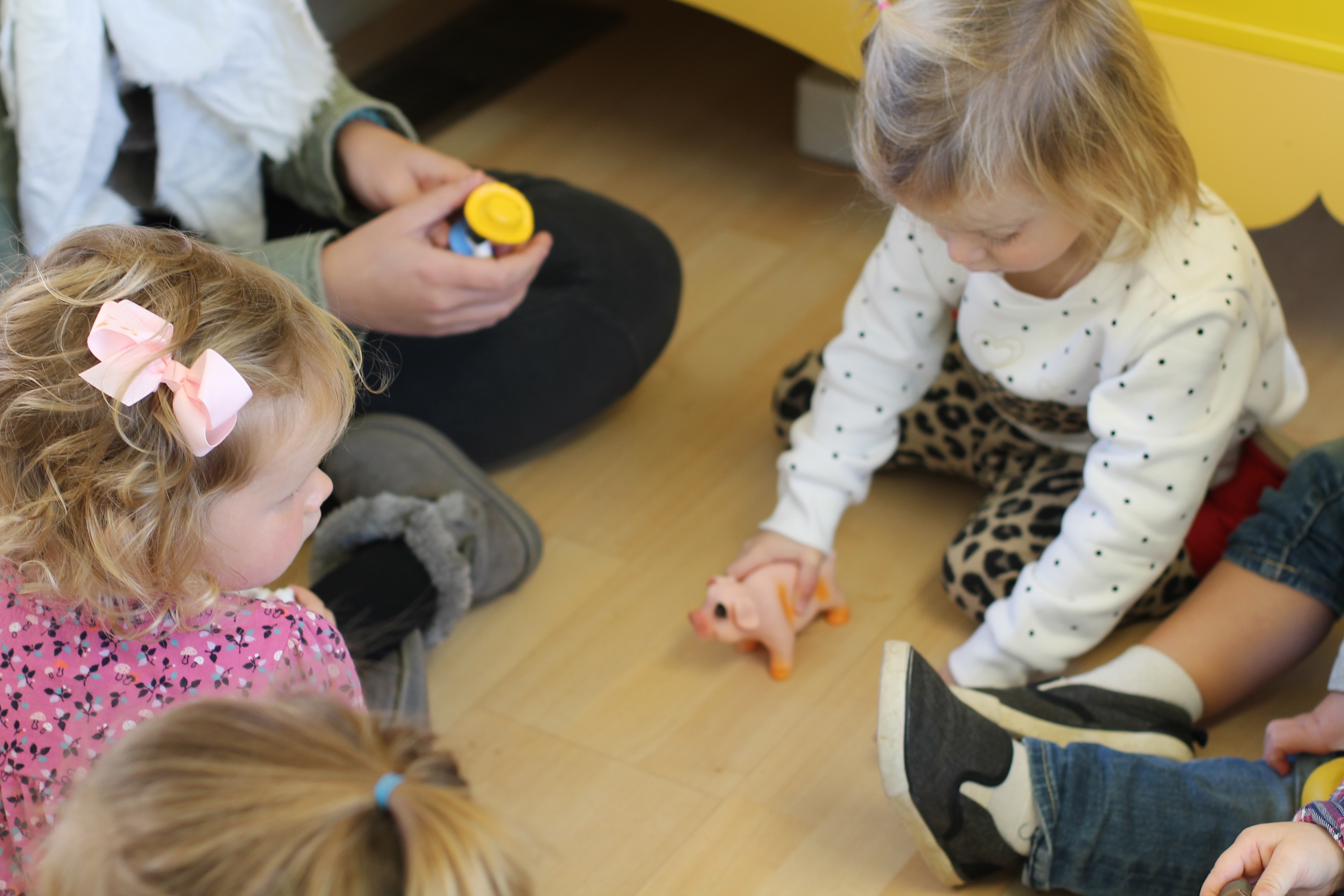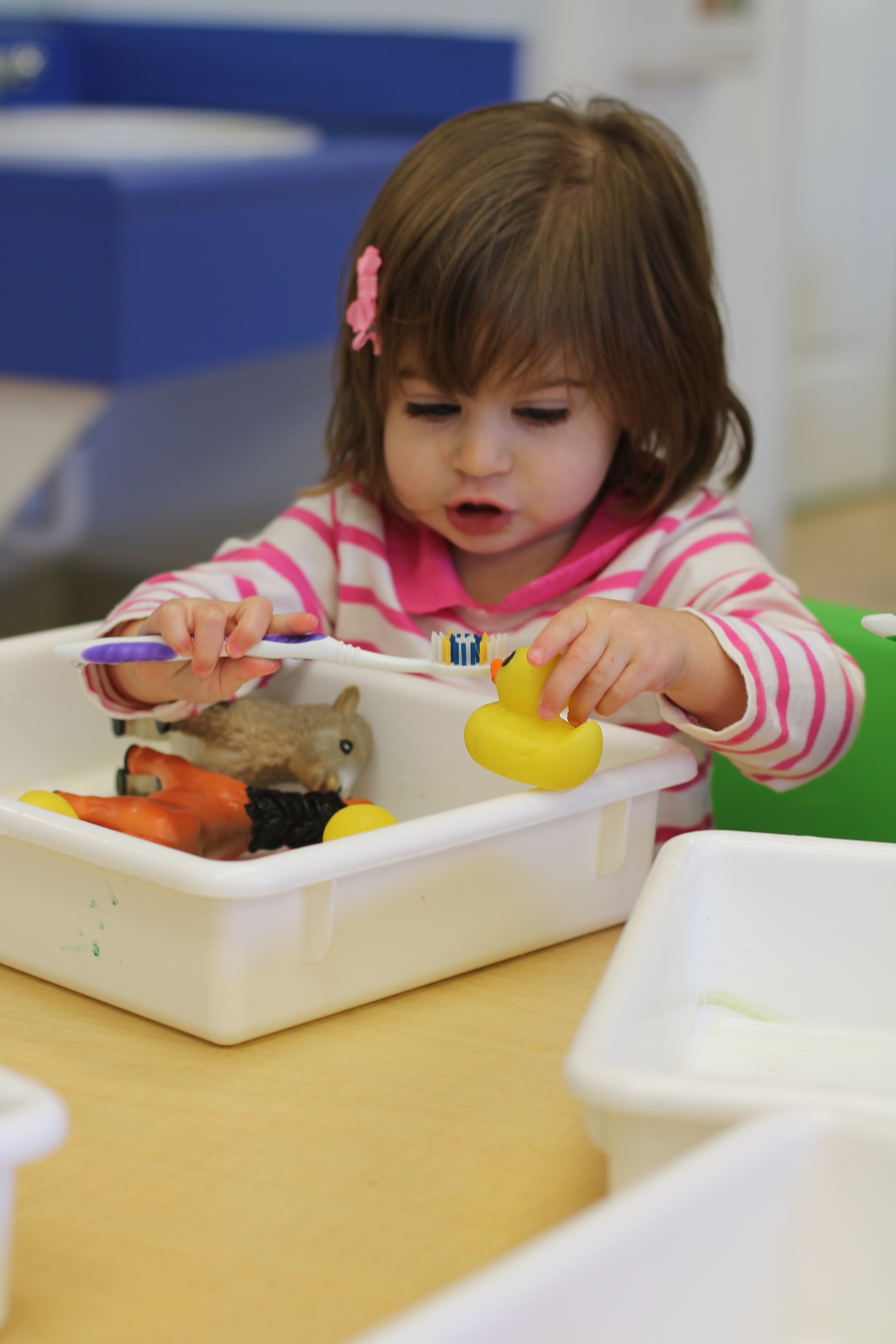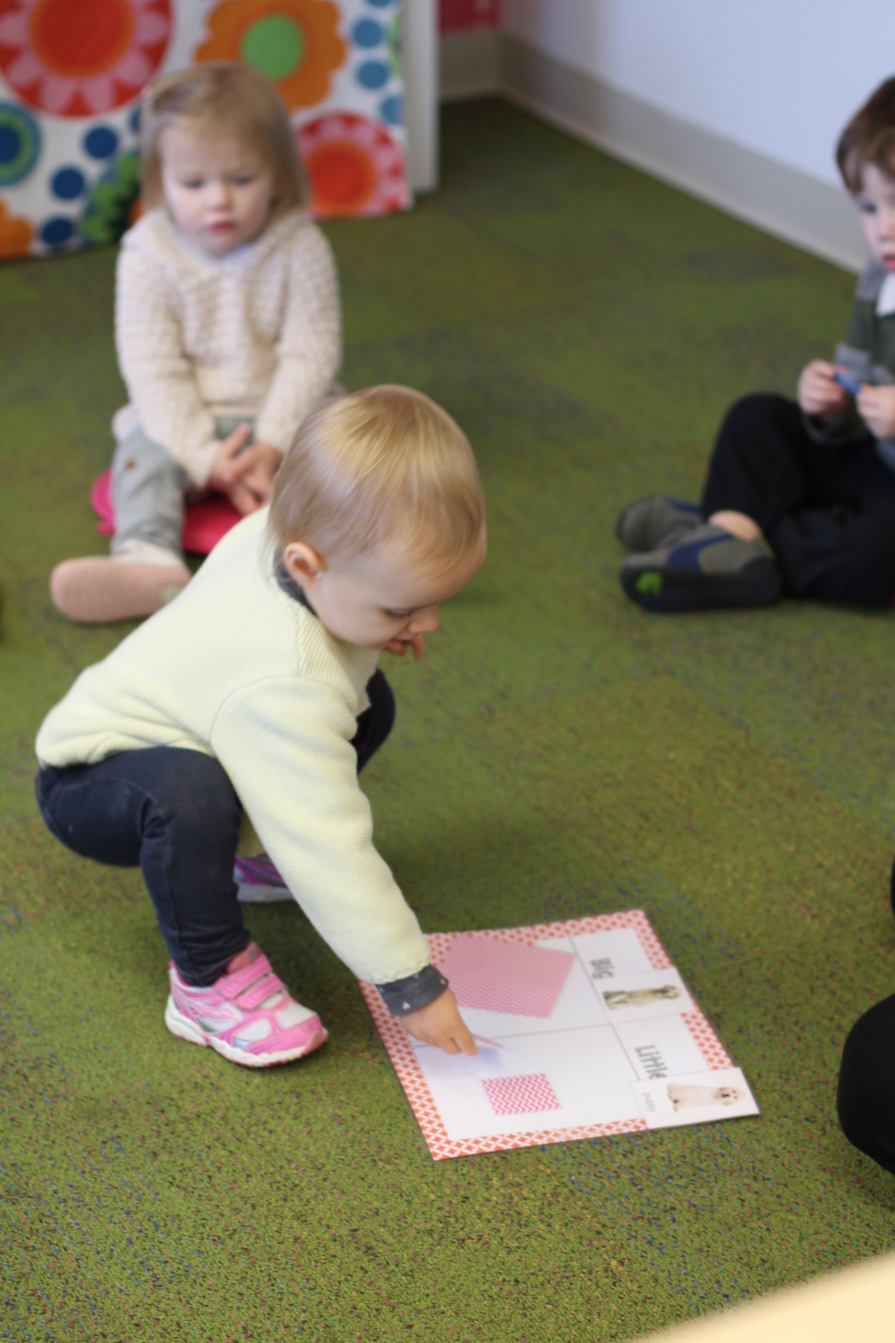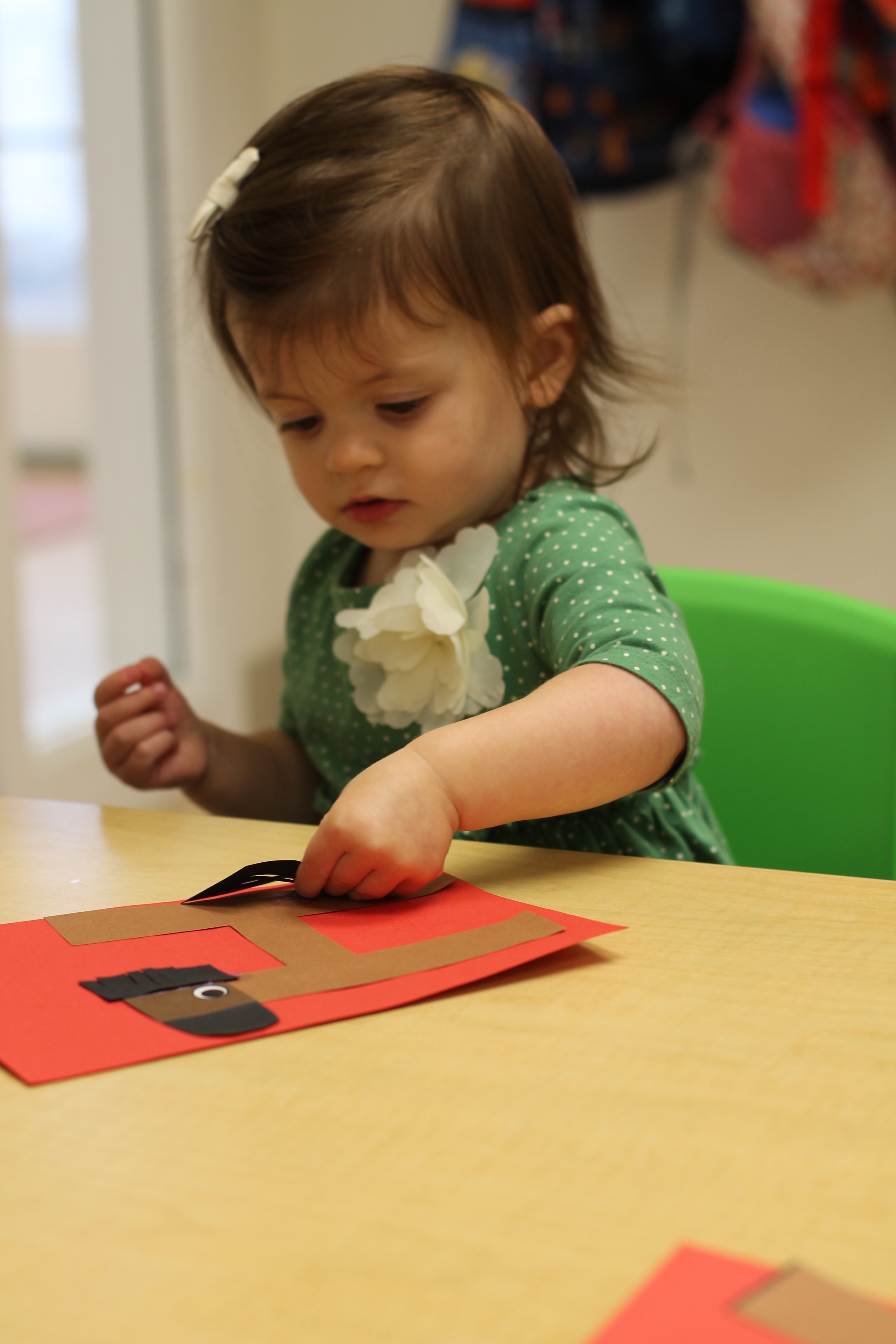 The toddlers utilized the farm theme to reinforce shape, color, counting, fine motor, and vocabulary skills.  We sang Old McDonald and read The Big Red Barn.  Our learning environment this month includes farm puzzles, toys, animals, and even a farmer’s market for pretend play.
