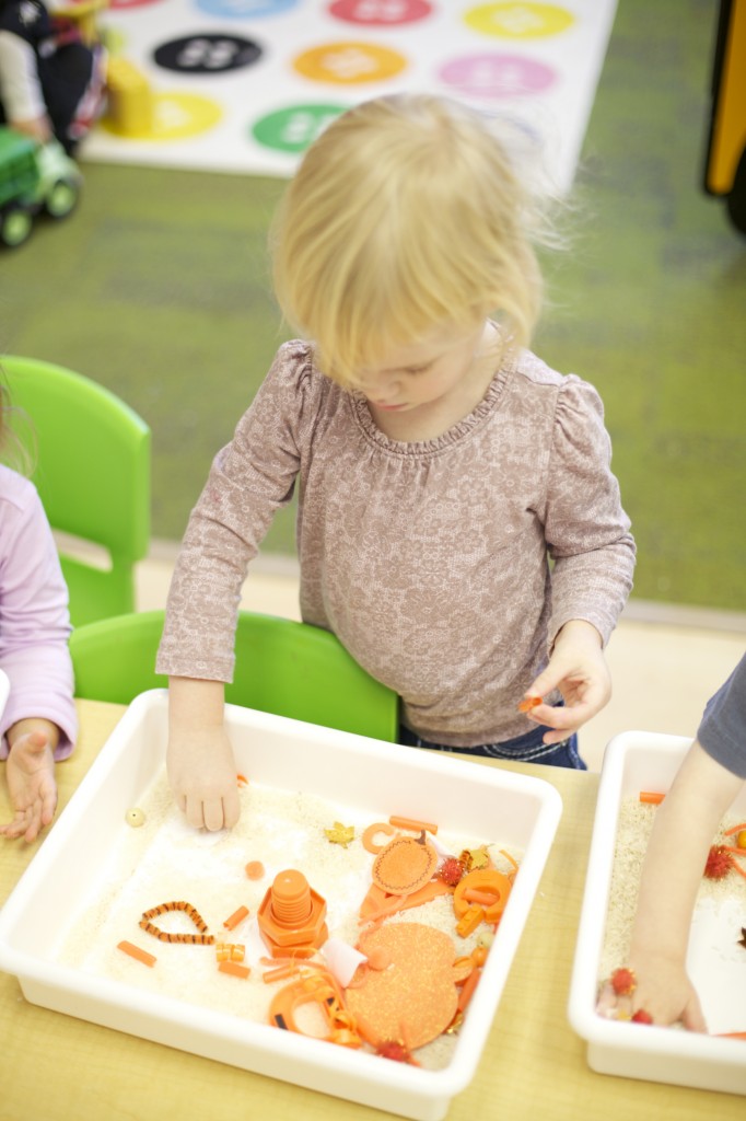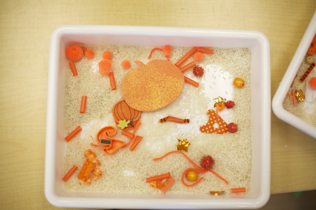 Later we explored the color orange in our discovery tubs.